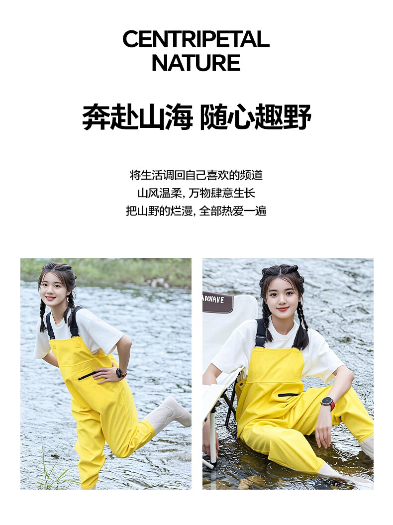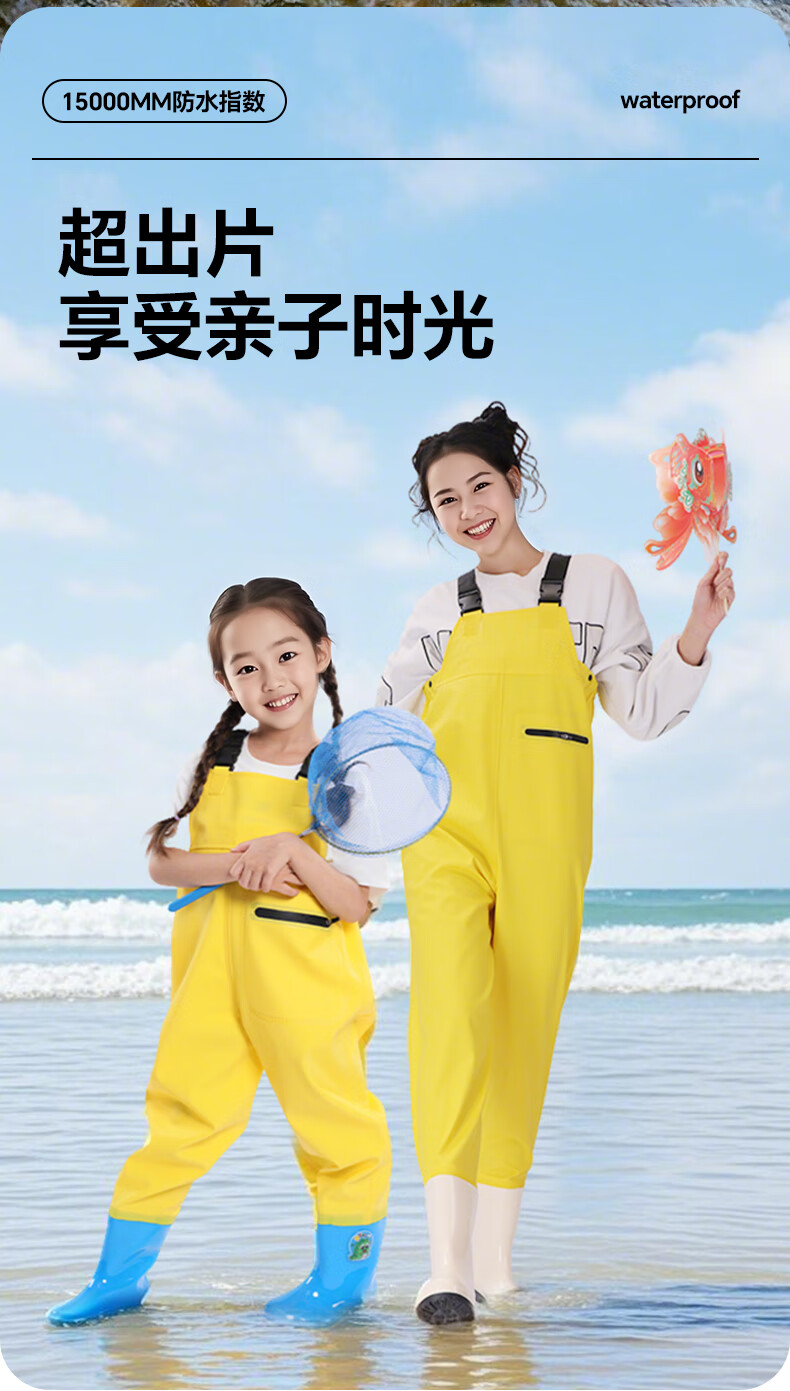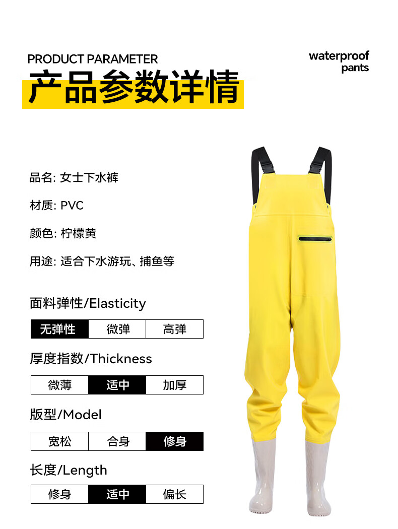 Mengduofu waders for women, waders for adults, wading suits for adults, lower body wading suits, full-body waterproof jumpsuits, lemon yellow parent-child style, 100 silk three-piece set, size 37, 3D slim fit, Jingcang straight hair