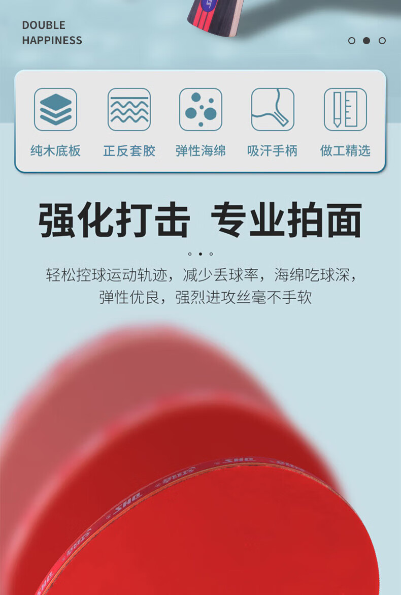 Red Double Happiness Table Tennis Racket Level Horizontal Shot Primary School Beginner Children's Table Tennis Racket Finished Black Handle Beginner Double Shot Horizontal Shot + Pencil Shot