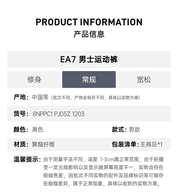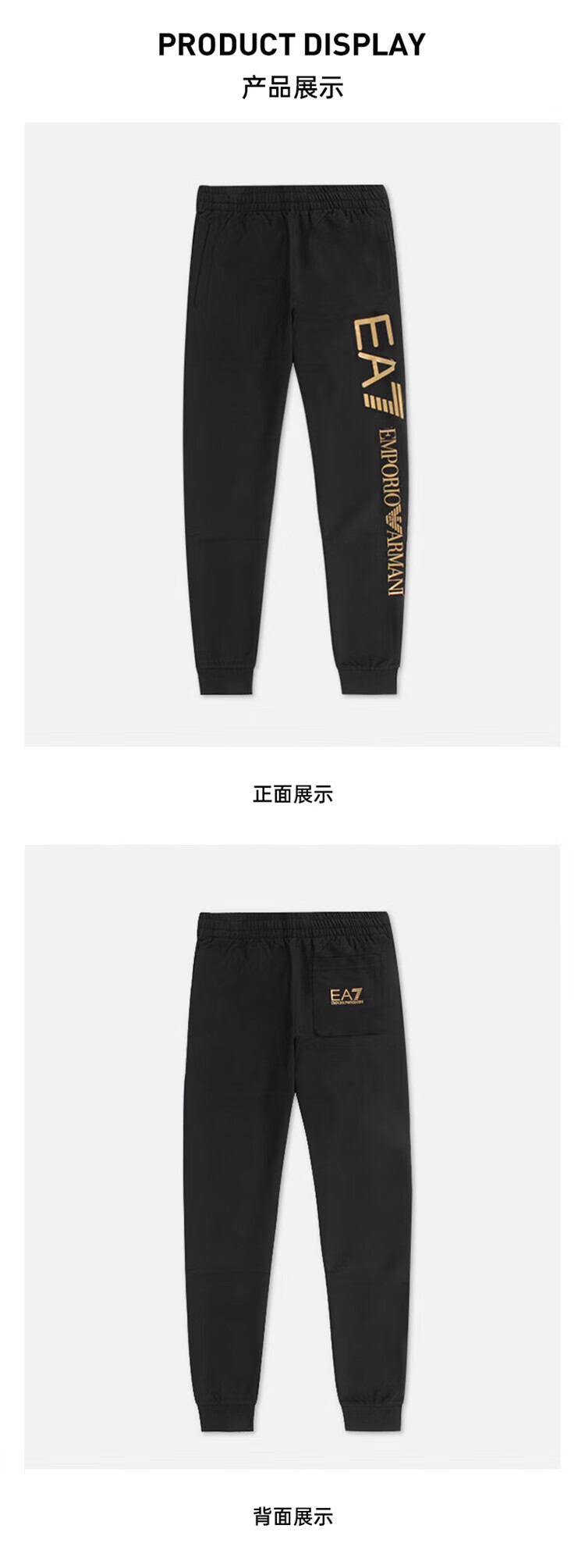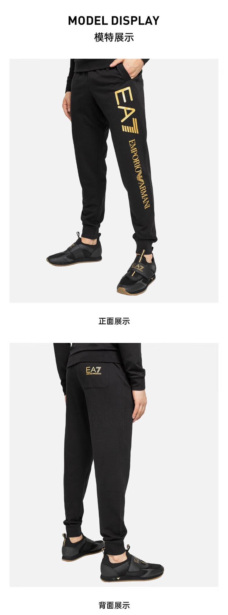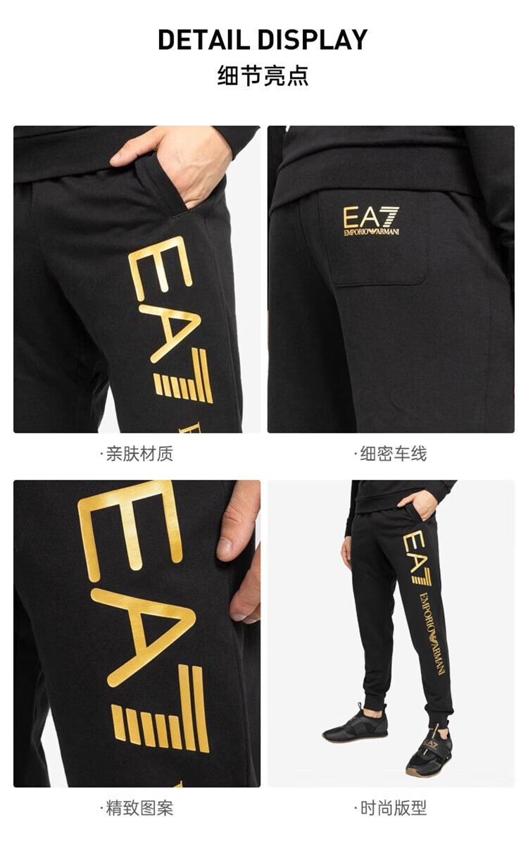 Armani (Emporio Armani) EA7 men's pants 2025 new classic micro-label casual print lightweight breathable comfortable sports pants leggings black gold S
