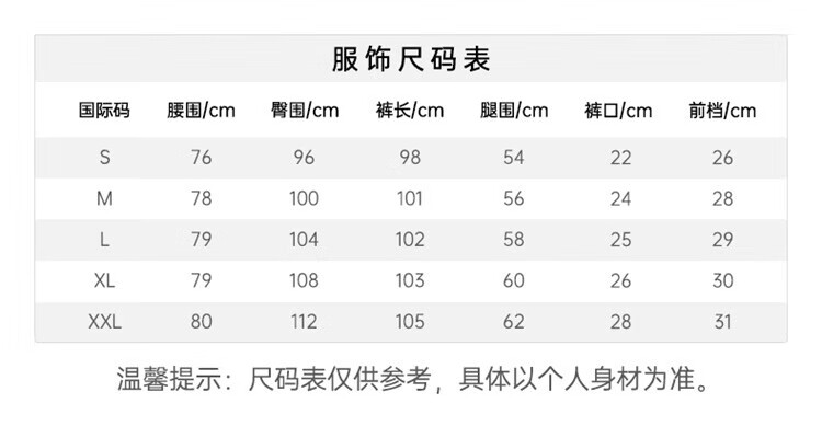 Outseam (cm) 99 cm 101.5 cm 104 cm 106.5 cm 109 cm
