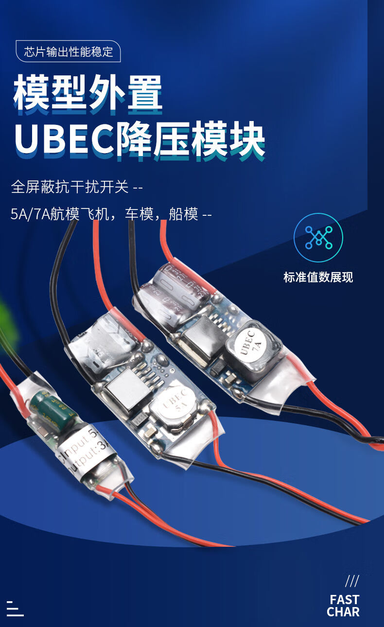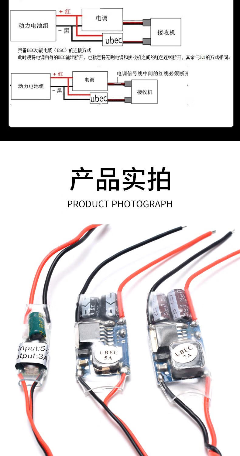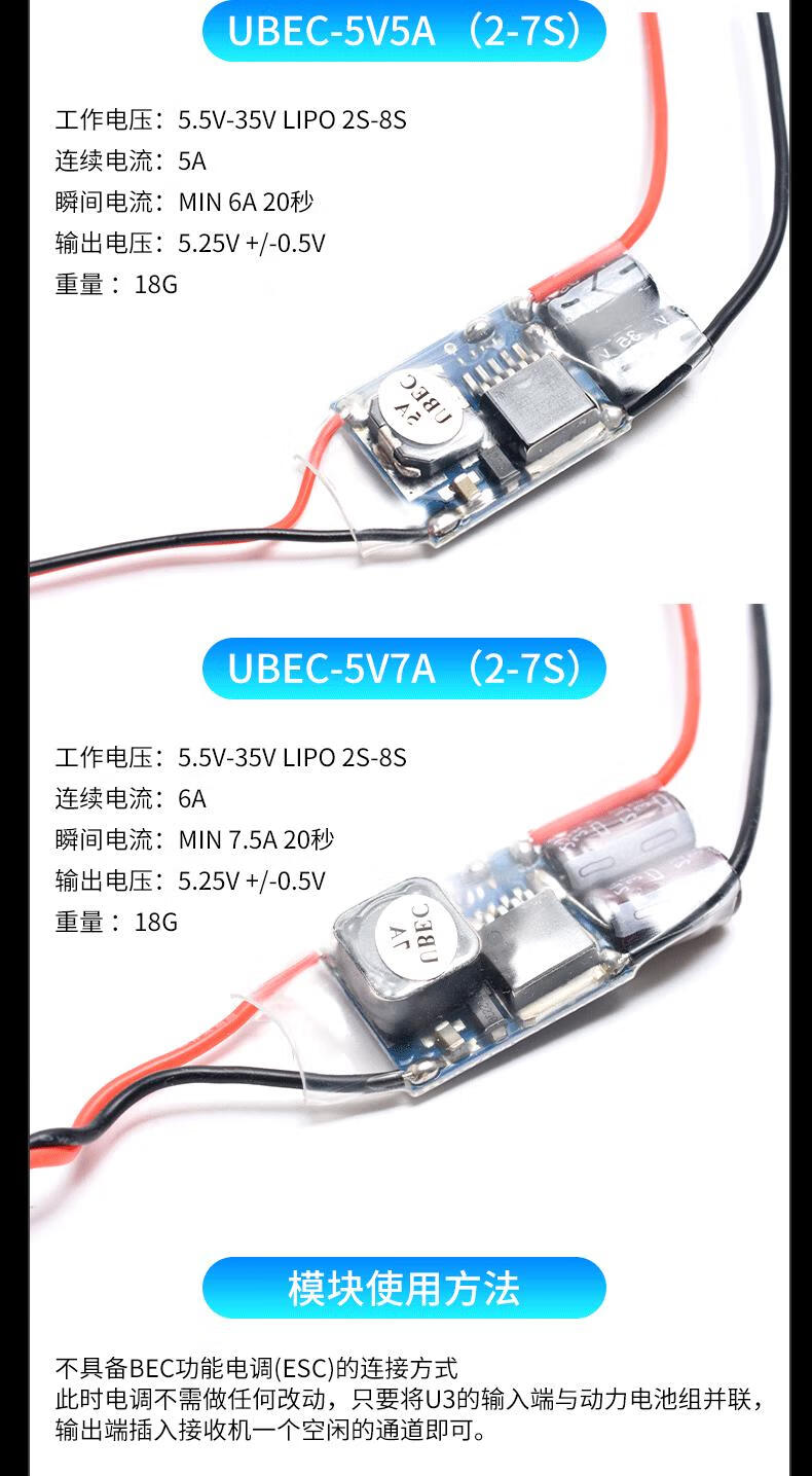 UBEC aircraft model car power supply step-down voltage stabilizing module fully shielded anti-interference switching regulator external receiver UBEC-5V5A (2-7S)
