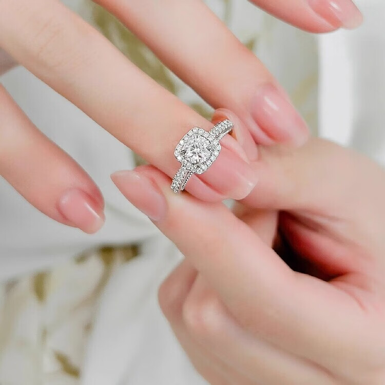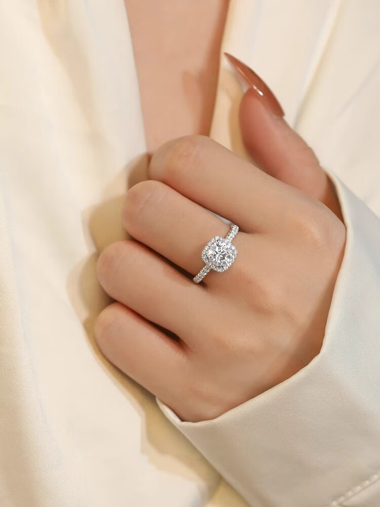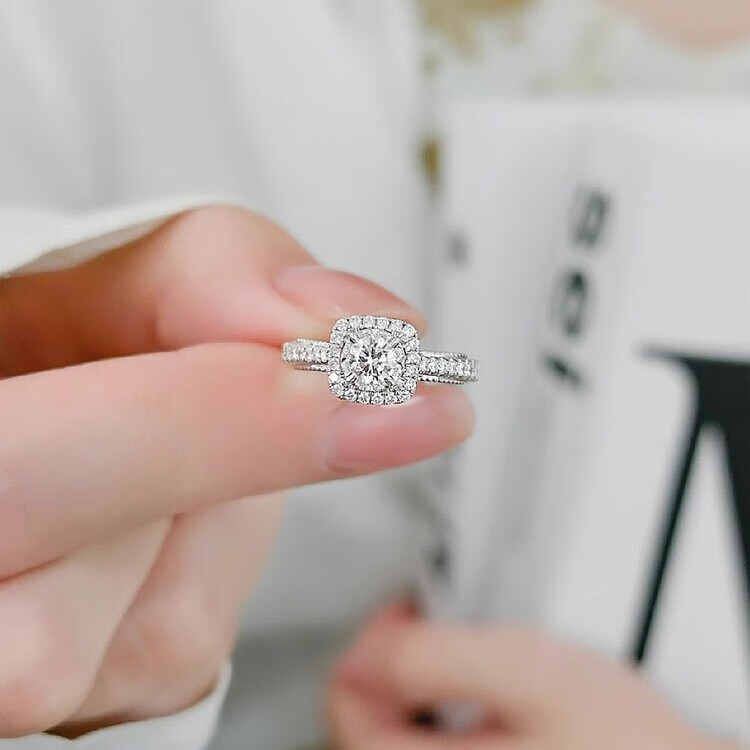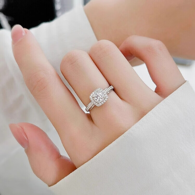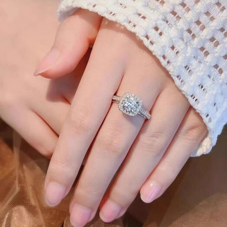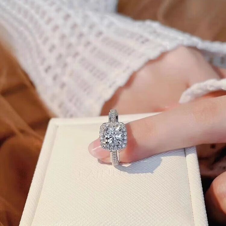 Pt950 platinum moissanite diamond ring women's new square bag one carat diamond ring platinum ring wedding proposal light luxury bouquet main stone 1 carat default opening mouth can be adjusted in size