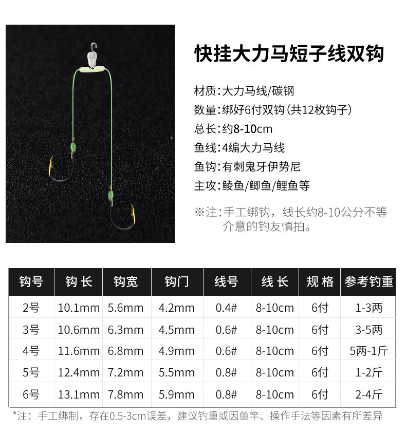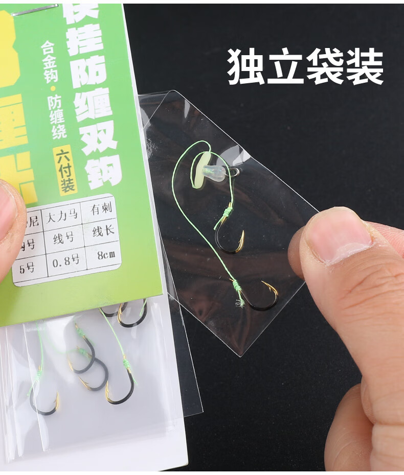 Huliqiang quick-hook ultra-short sub-line double hook Dalima 8cm finished anti-winding mud carp Meizhou fishing method Iseni fish hook quick-hook short sub-line double hook Iseni 5#/6 pay