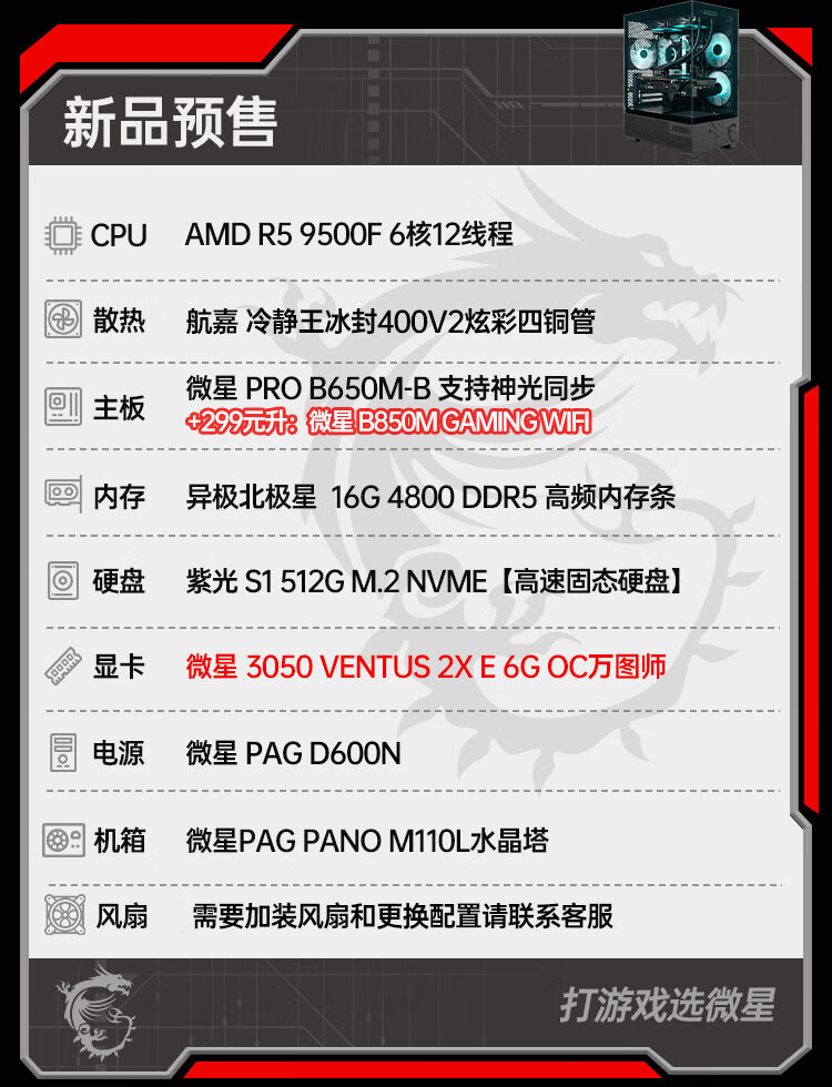MSI AMD Ryzen R5 9500F 9600X 5060Ti graphics card desktop computer console game design modeling rendering complete machine DIY assembly machine delta tile with three R5 9600X + MSI 5060