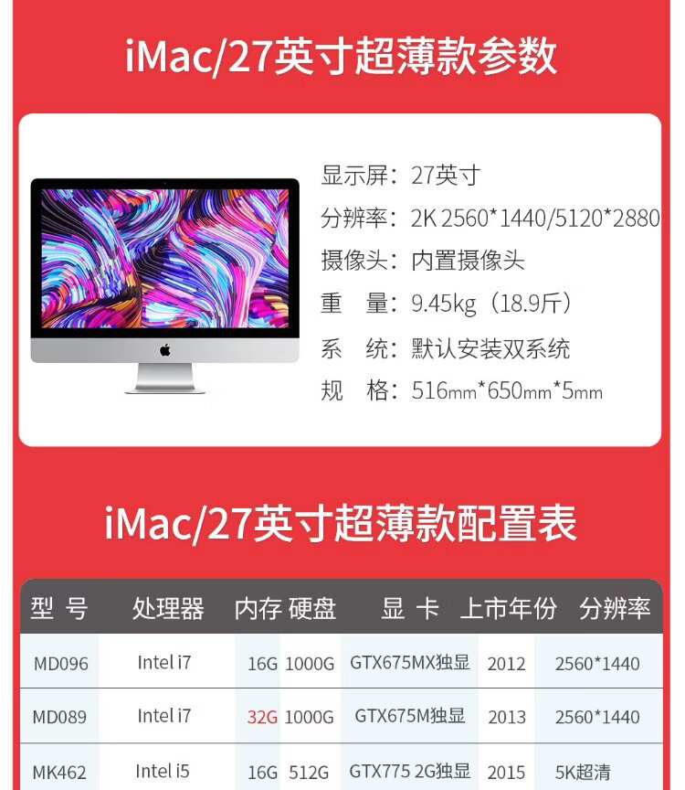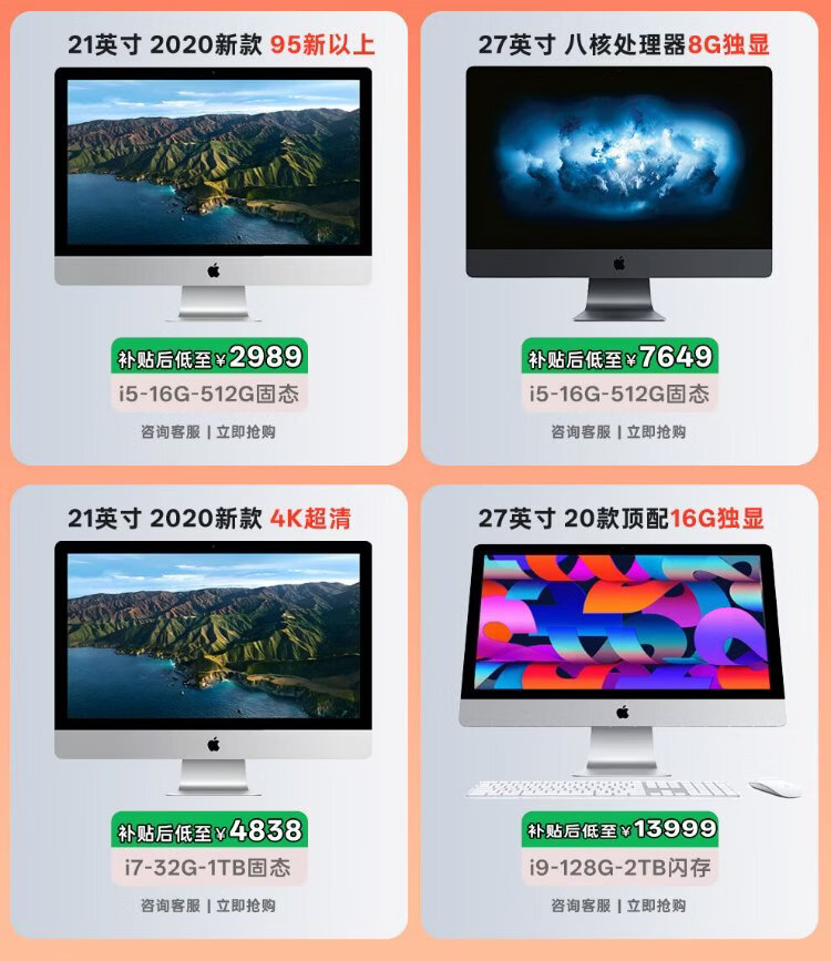 Apple imac second-hand Apple all-in-one computer desktop 21.5/27-inch 4K/5K design editing computer Jingpin Selection 27-inch Flash Gold List 089-i7-32G-1TB Solid State