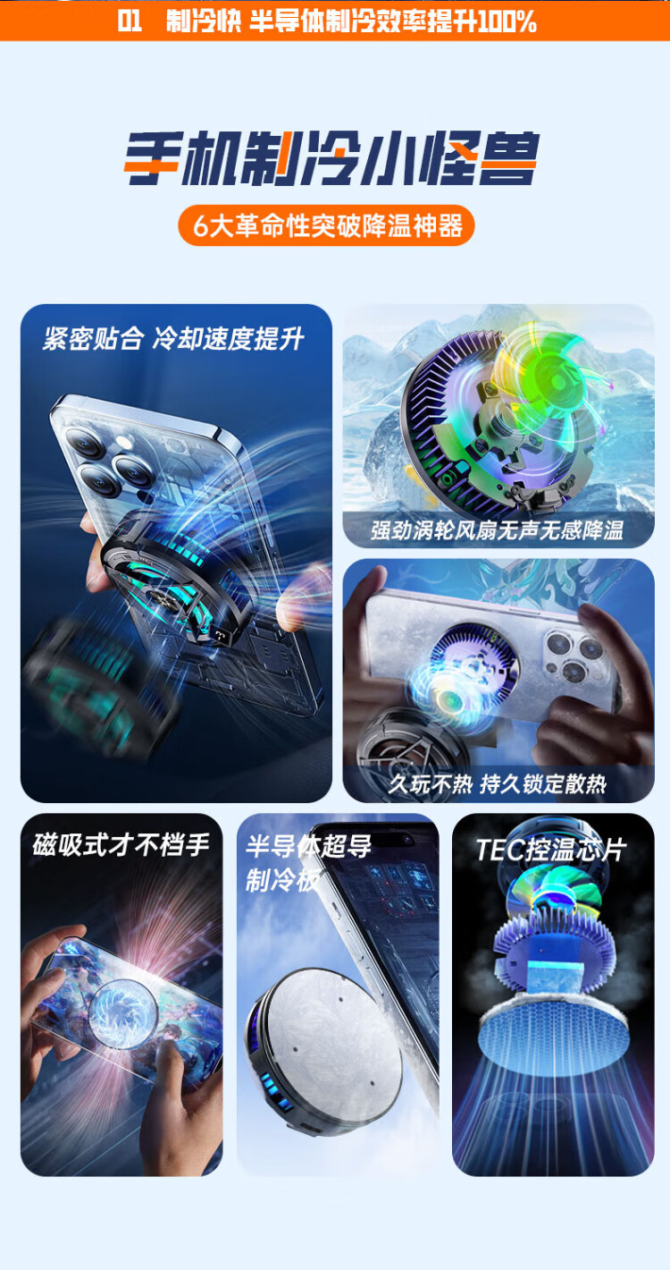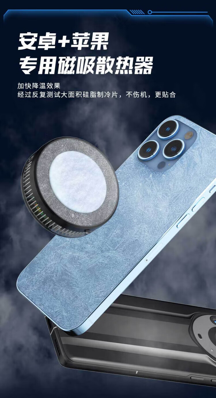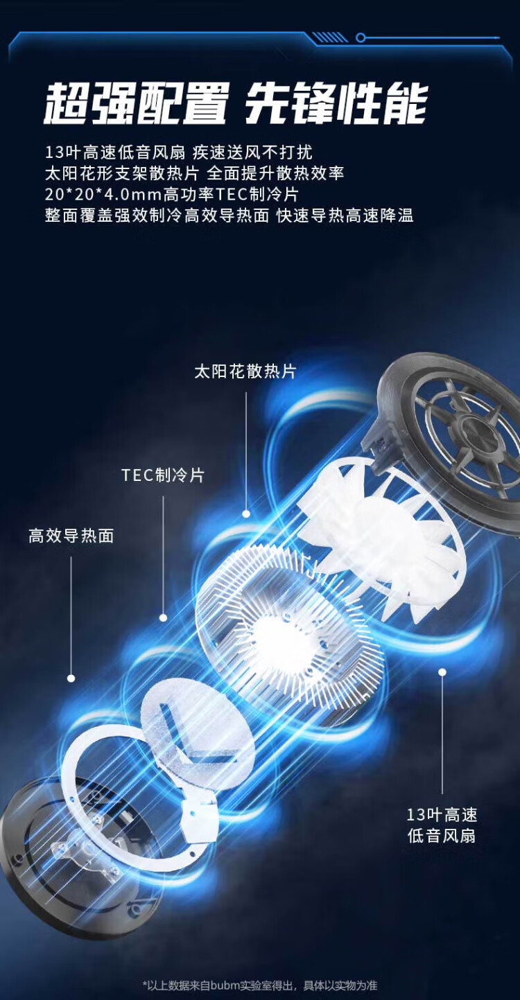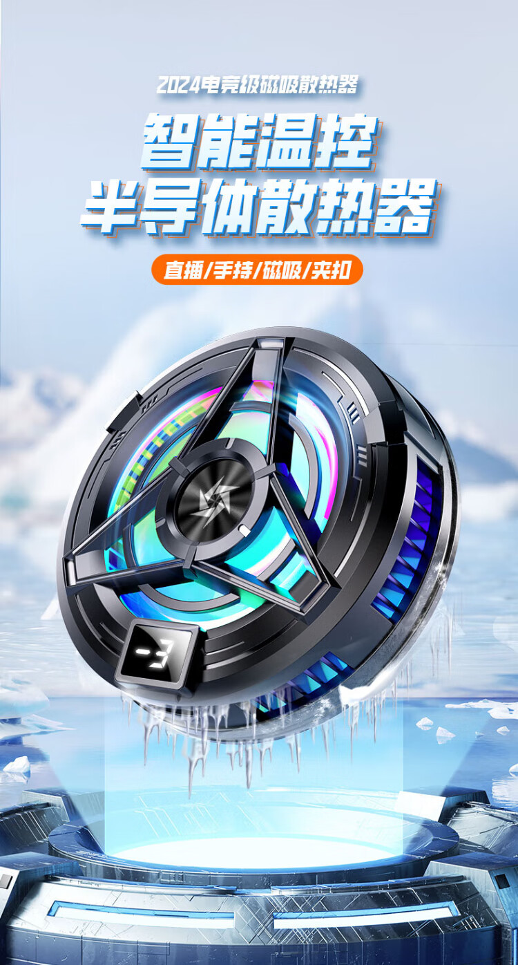 Biyoumei 2025 flagship new product true freezing gaming cooling mobile phone radiator tablet magnetic semiconductor cooling Apple 17/16 Android Chicken King Genshin Impact mobile game peripherals magnetic back clip digital display upgraded true freezing model three-speed adjustment obsidian black
