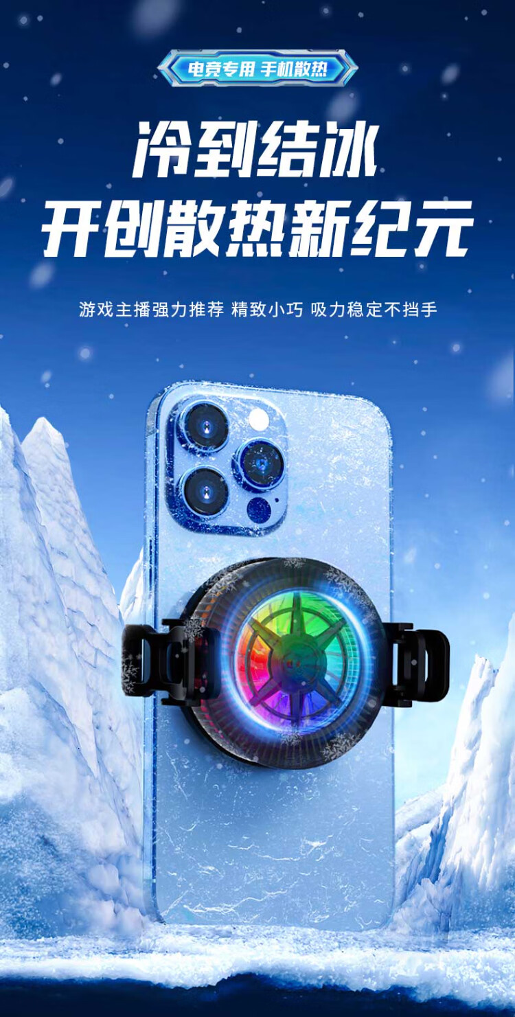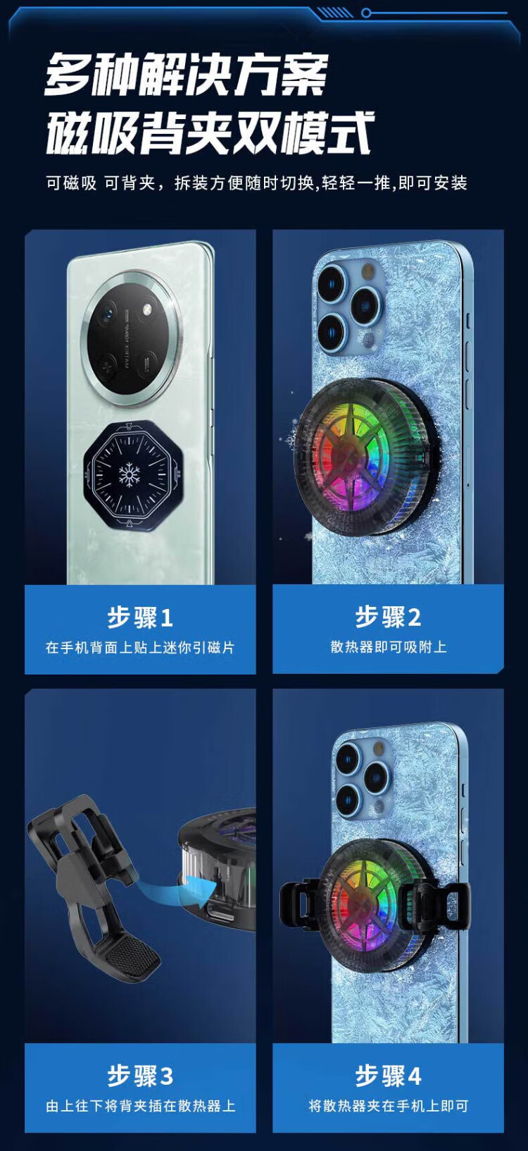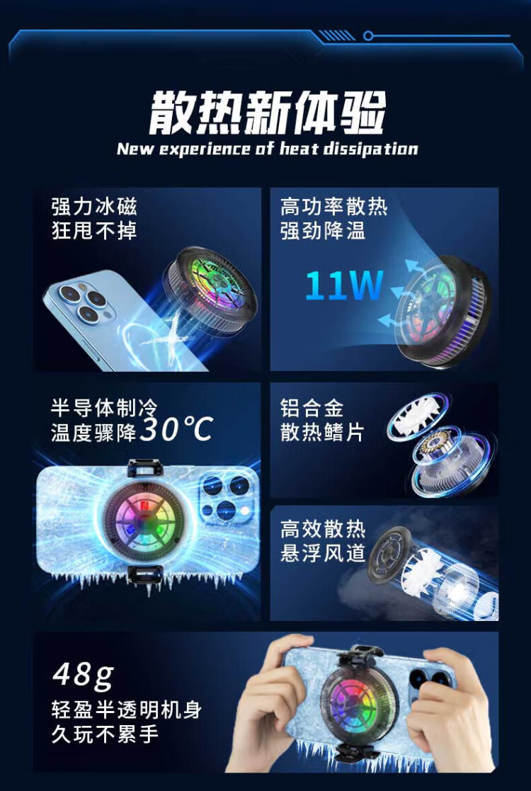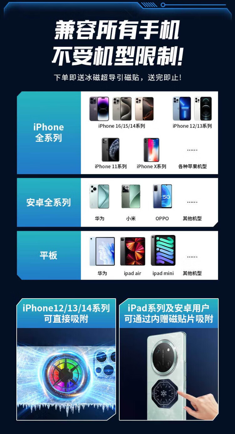 Biyoumei 2025 flagship new product true freezing gaming cooling mobile phone radiator tablet magnetic semiconductor cooling Apple 17/16 Android Chicken King Genshin Impact mobile game peripherals magnetic back clip digital display upgraded true freezing model three-speed adjustment obsidian black