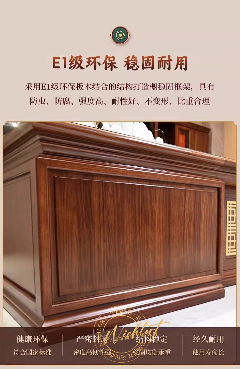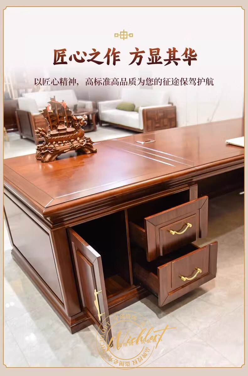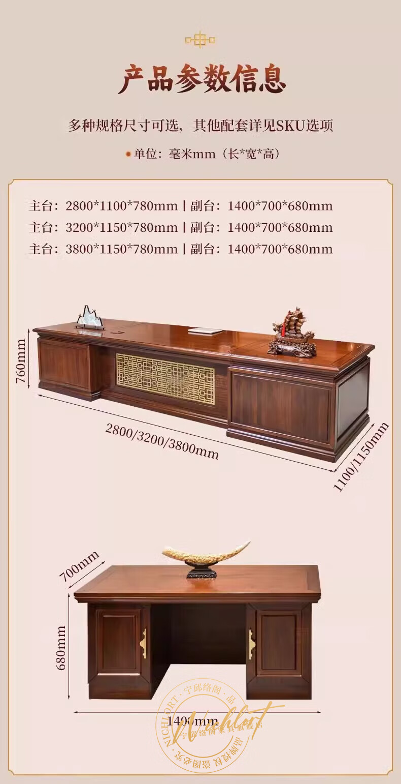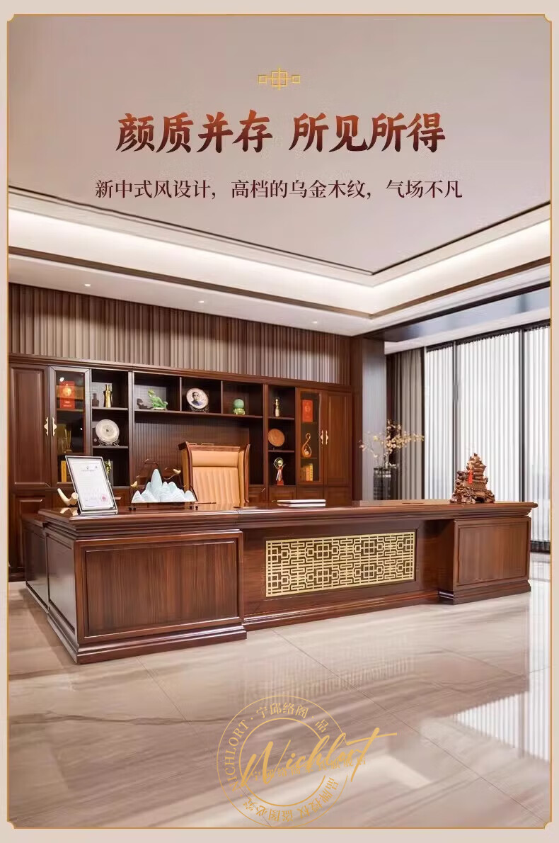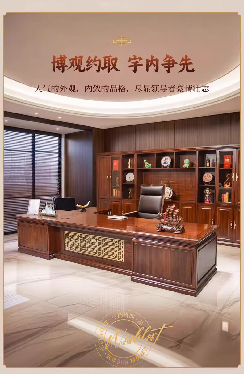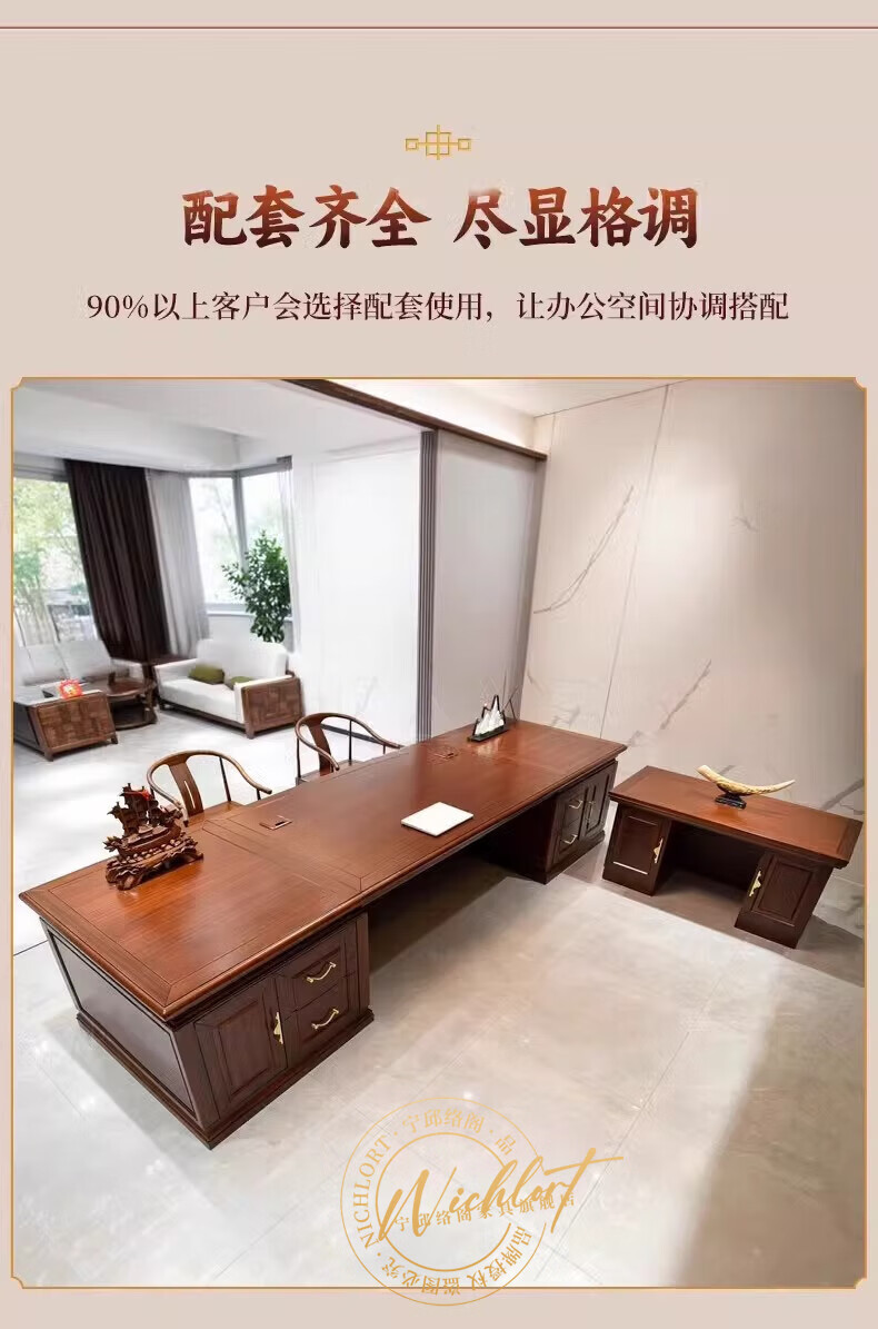 Ningqiu Luoge (NICHLORT) new Chinese style office desk and chair combination ebony wood all solid wood CEO boss table high-end atmospheric chairman executive desk 3.8 meters executive desk ebony wood