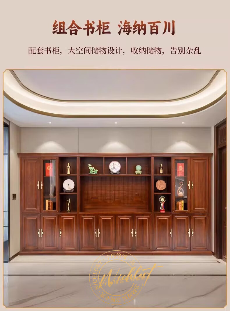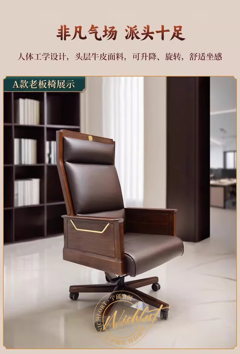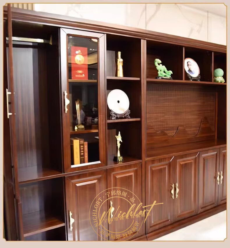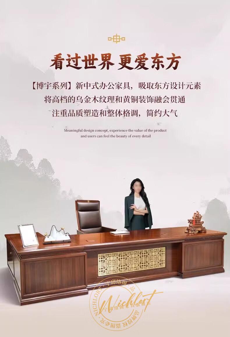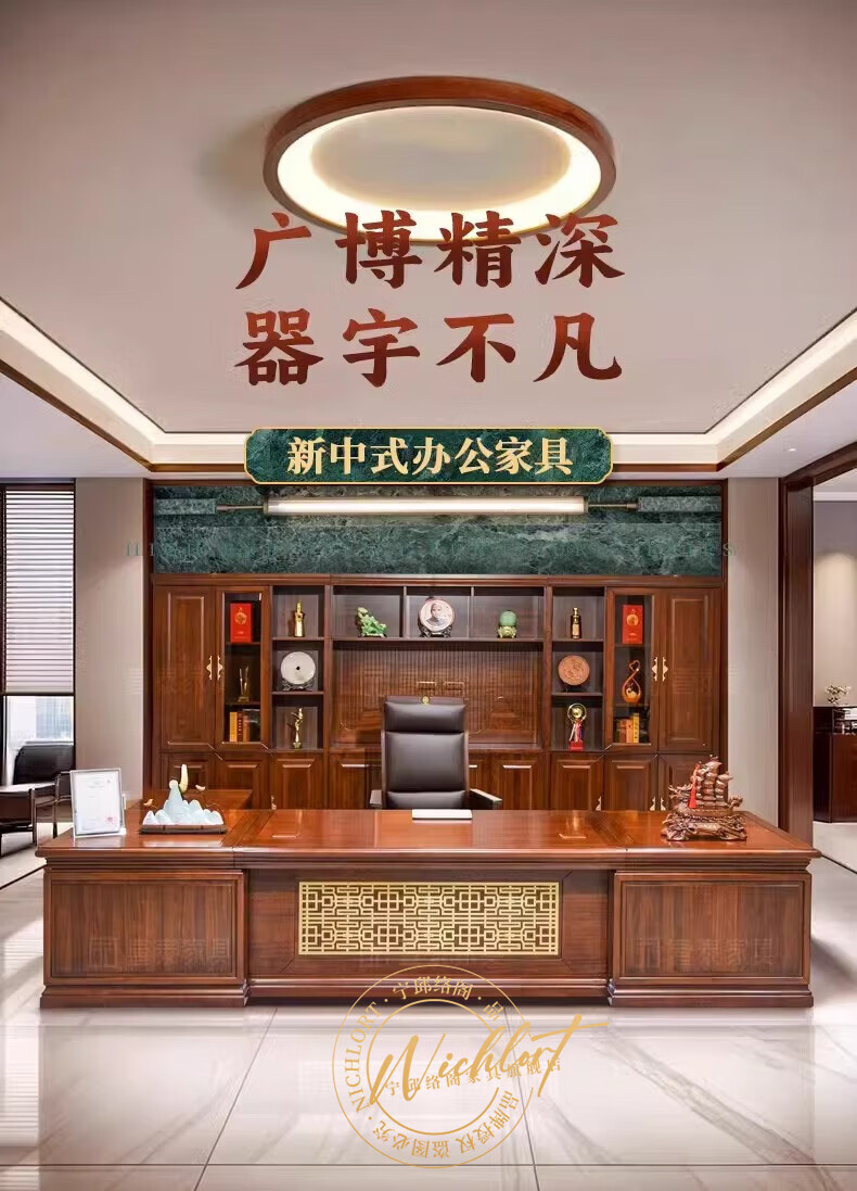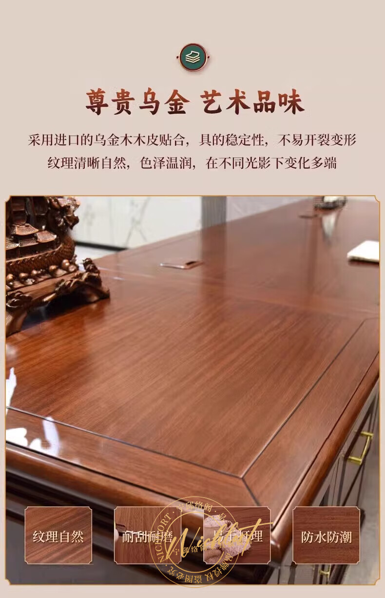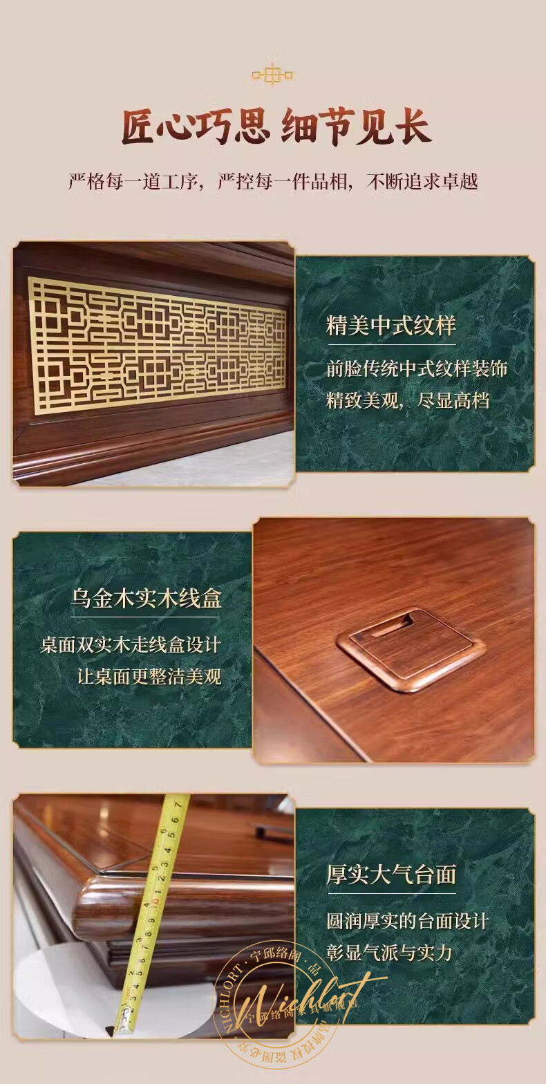 Ningqiu Luoge (NICHLORT) new Chinese style office desk and chair combination ebony wood all solid wood CEO boss table high-end atmospheric chairman executive desk 3.8 meters executive desk ebony wood