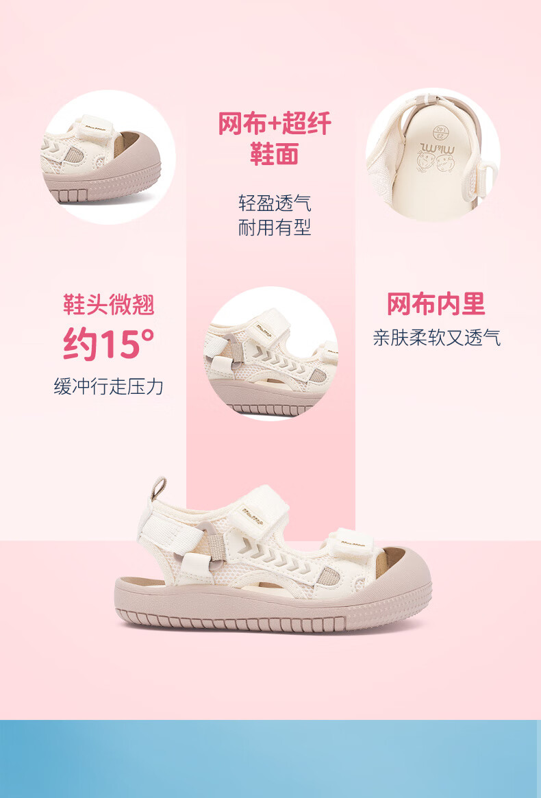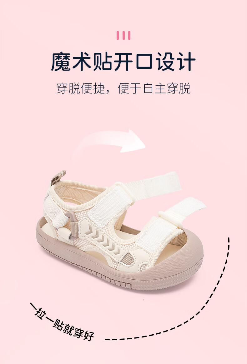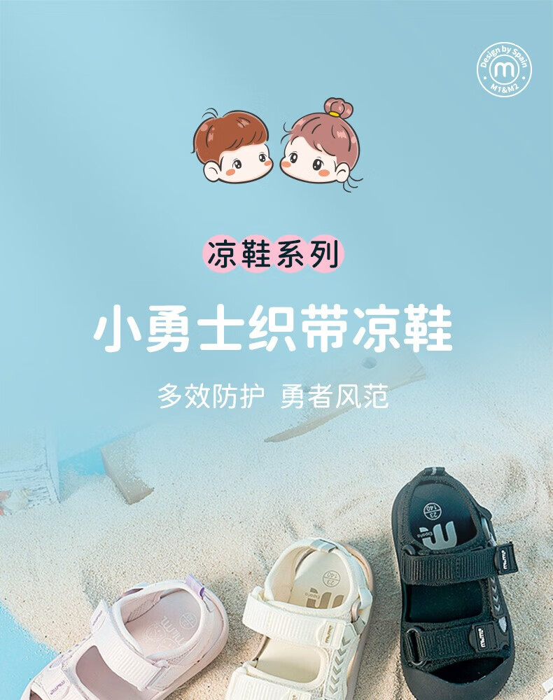 M1&M2 Spanish children's shoes children's sandals summer boys and girls toe-toe beach shoes Velcro wear-resistant comfortable functional shoes beige size 28 suitable for feet 16.5~17cm long