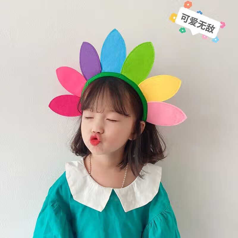 SNQP New Children's Kindergarten Creative Performance Dance Sunflower Decoration Photo Props Face Wash Headband Headwear Colorful Flower Headband 1 Pack