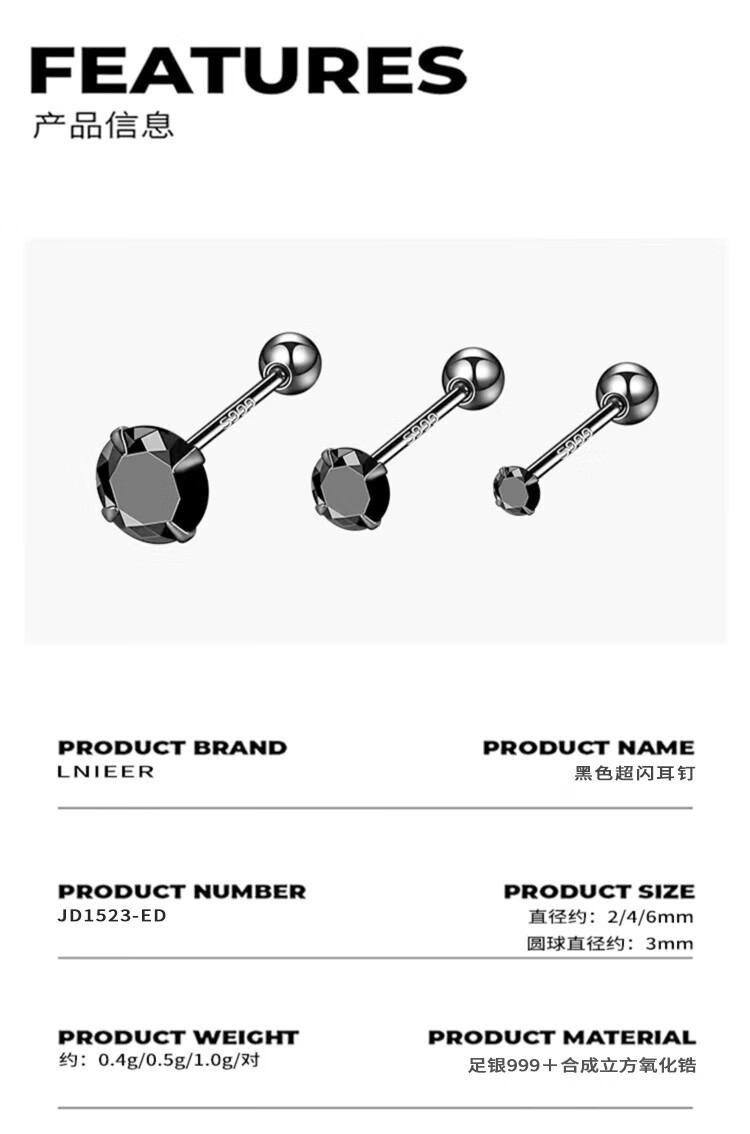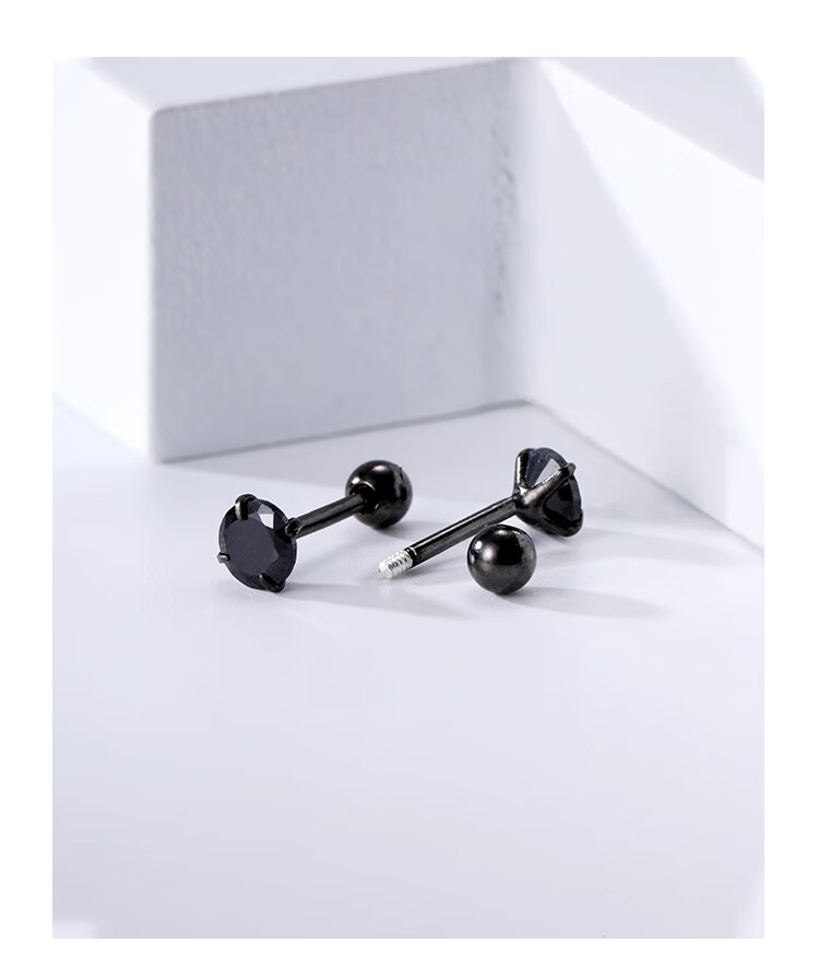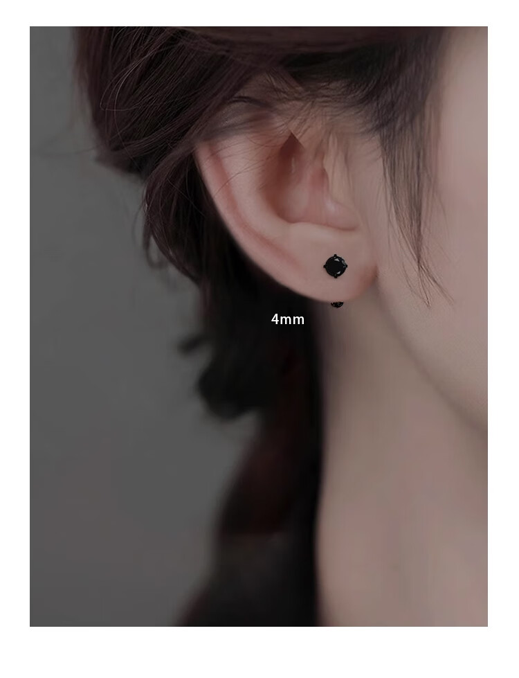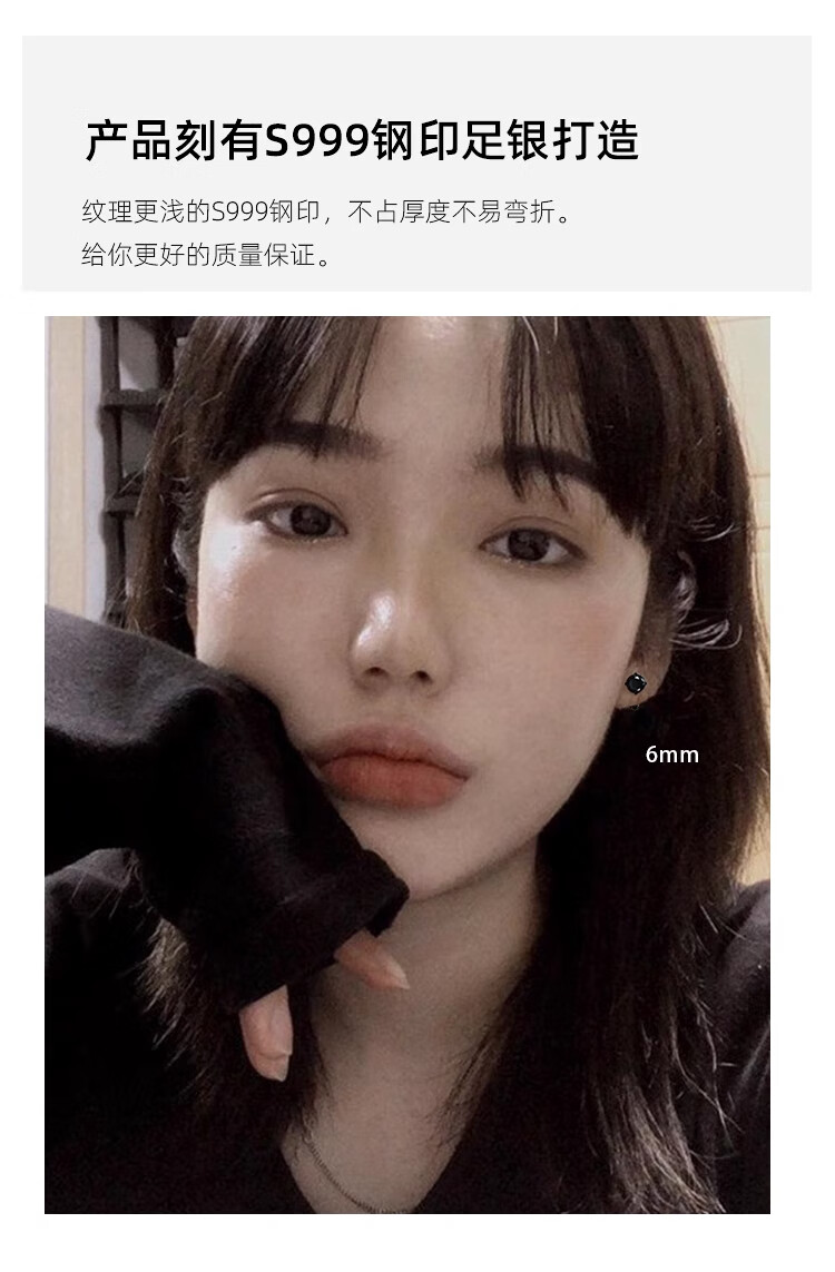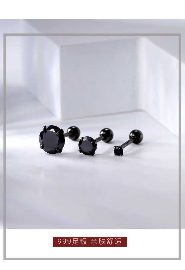 Lnieer 999 Pure Silver Black Super Flash Earrings for Women with Ear Holes for Sleeping No-Removal Earrings Screw Button Ear Bone Nails Earrings Jewelry Pair of 6mm Black Earrings 999 Pure Silver
