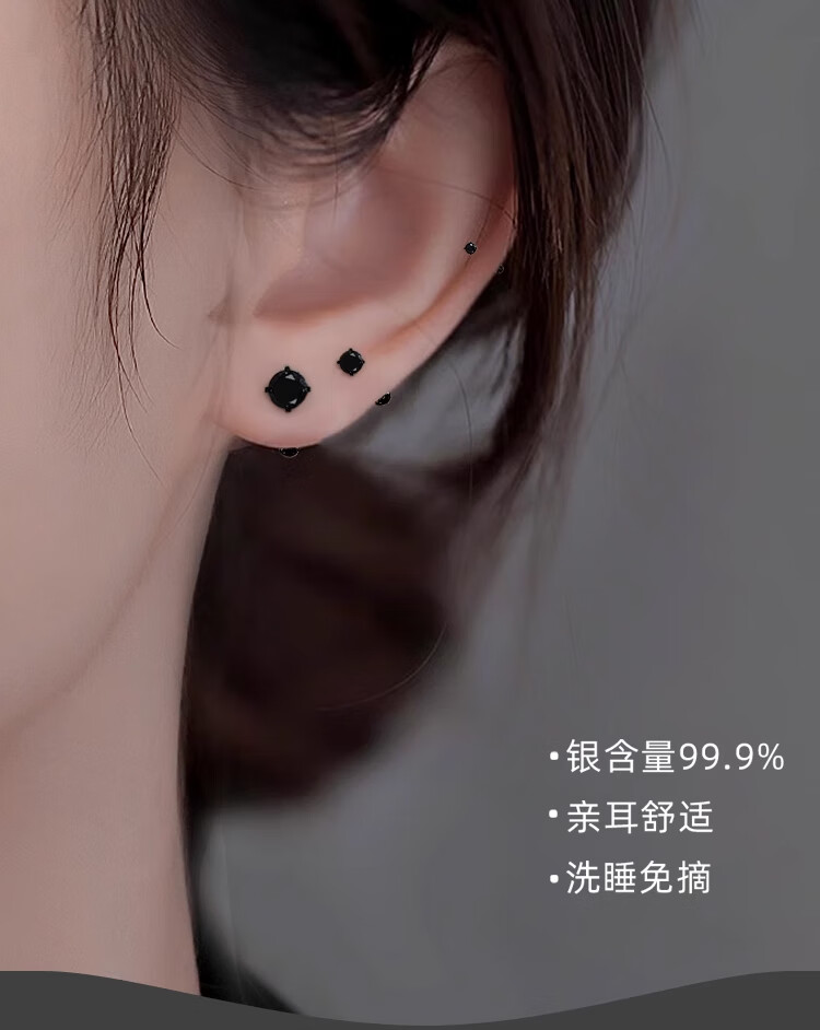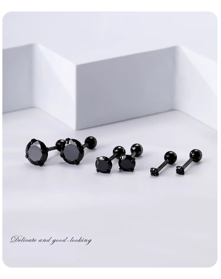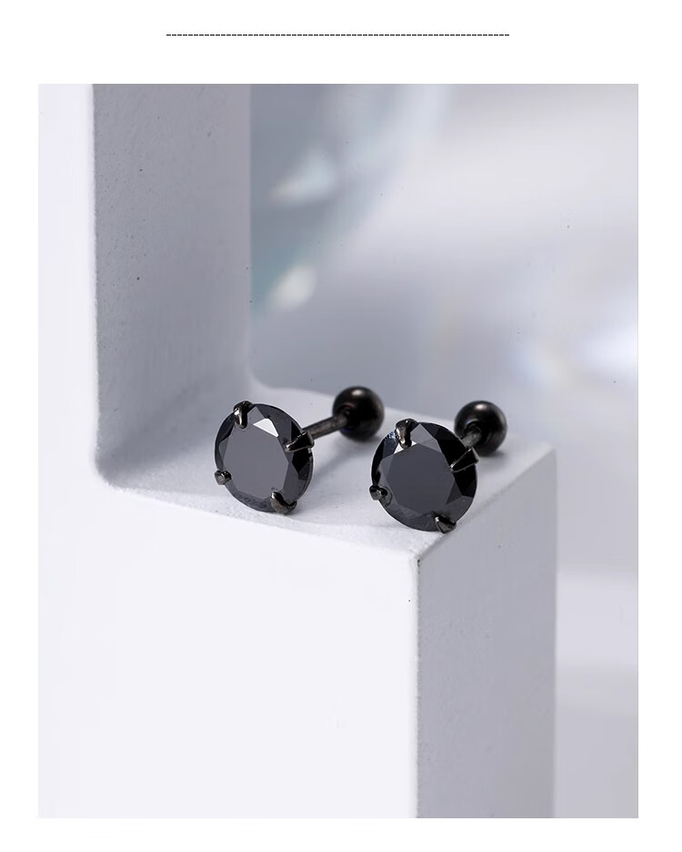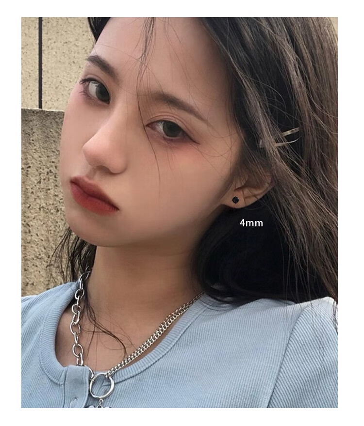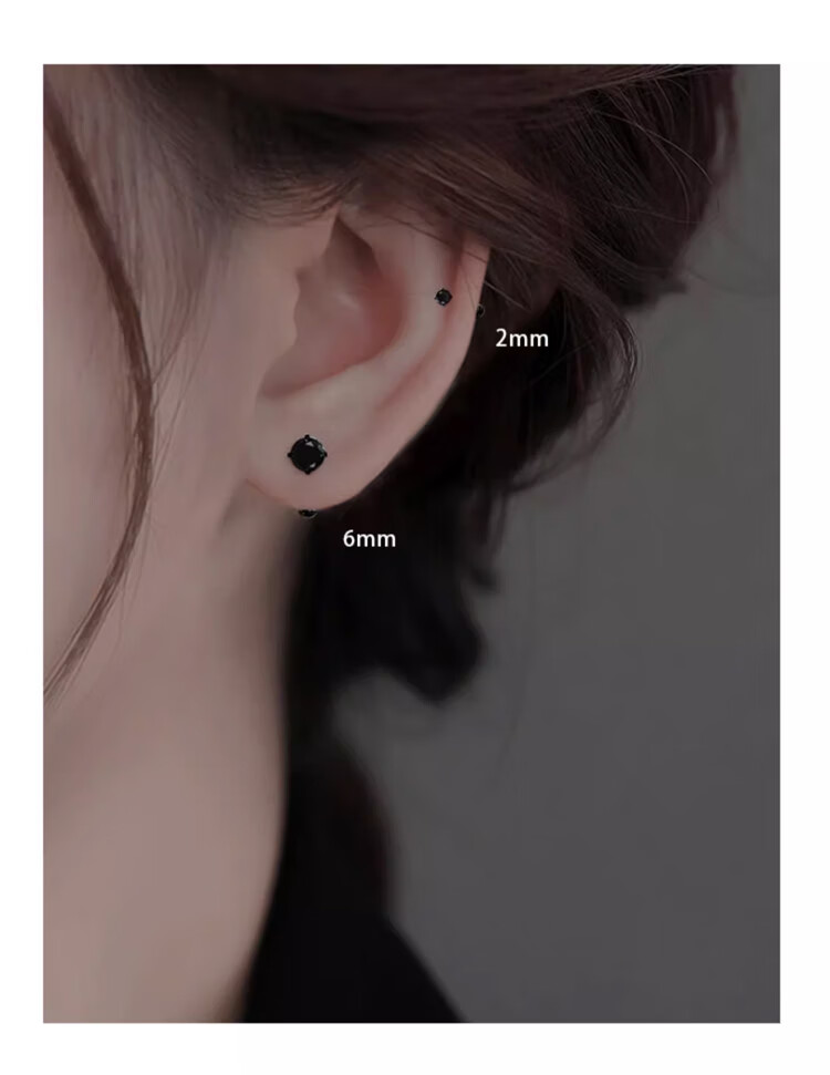 Lnieer 999 Pure Silver Black Super Flash Earrings for Women with Ear Holes for Sleeping No-Removal Earrings Screw Button Ear Bone Nails Earrings Jewelry Pair of 6mm Black Earrings 999 Pure Silver