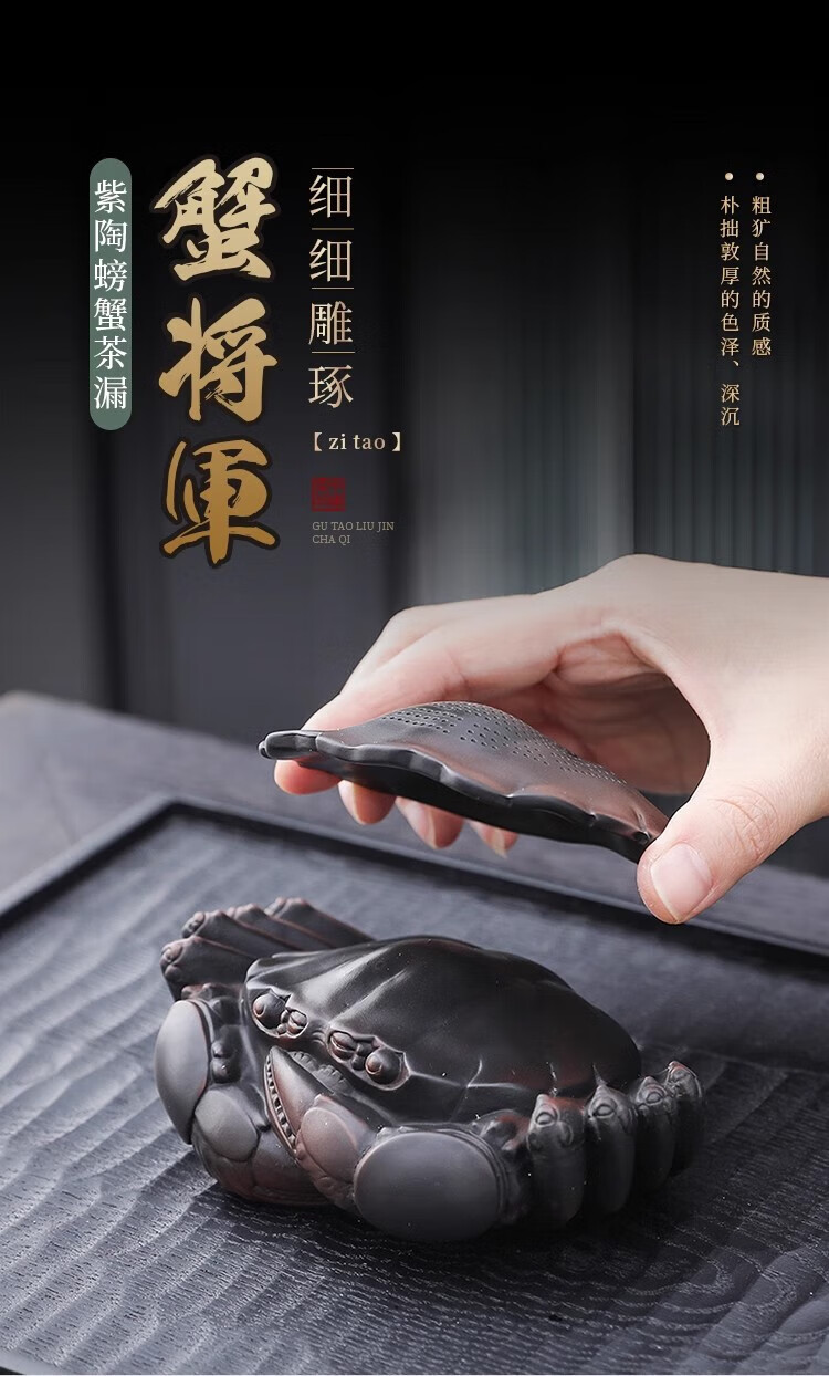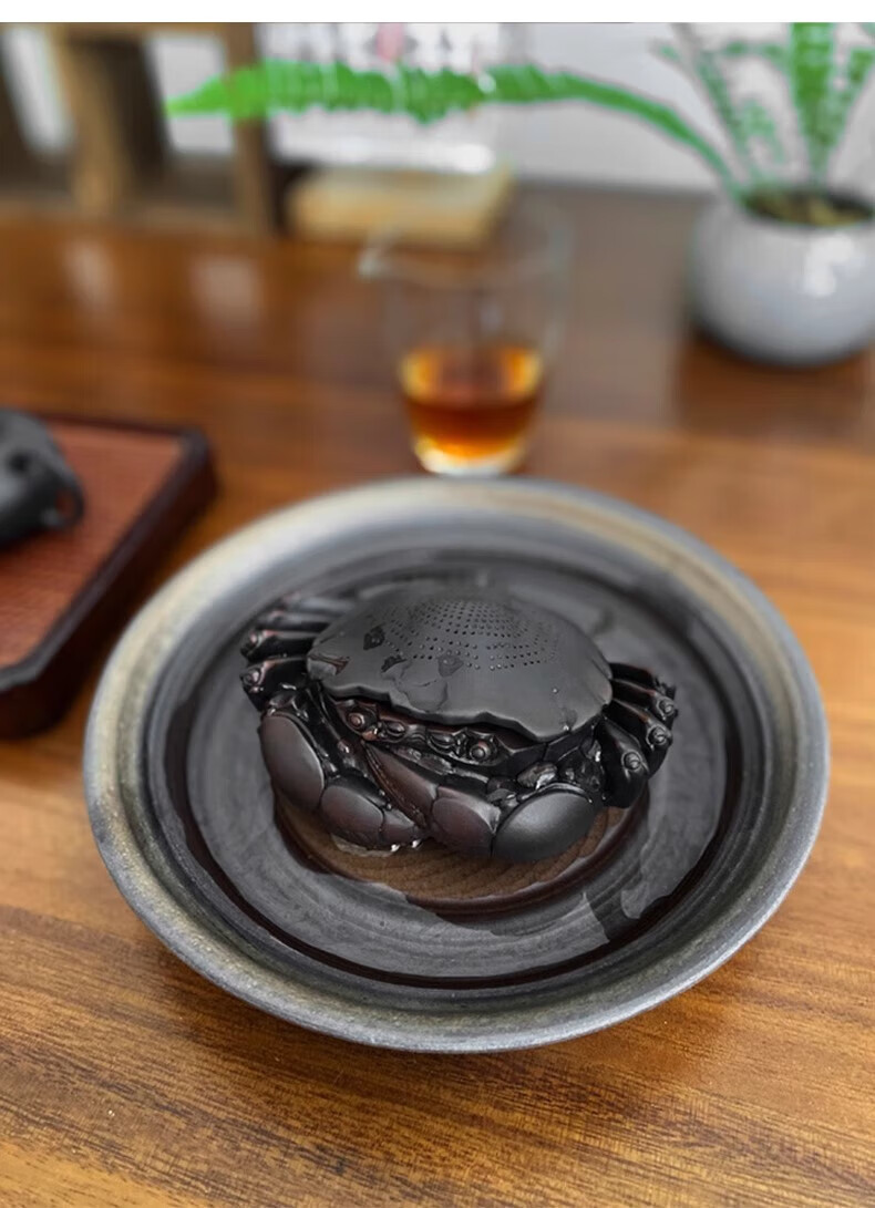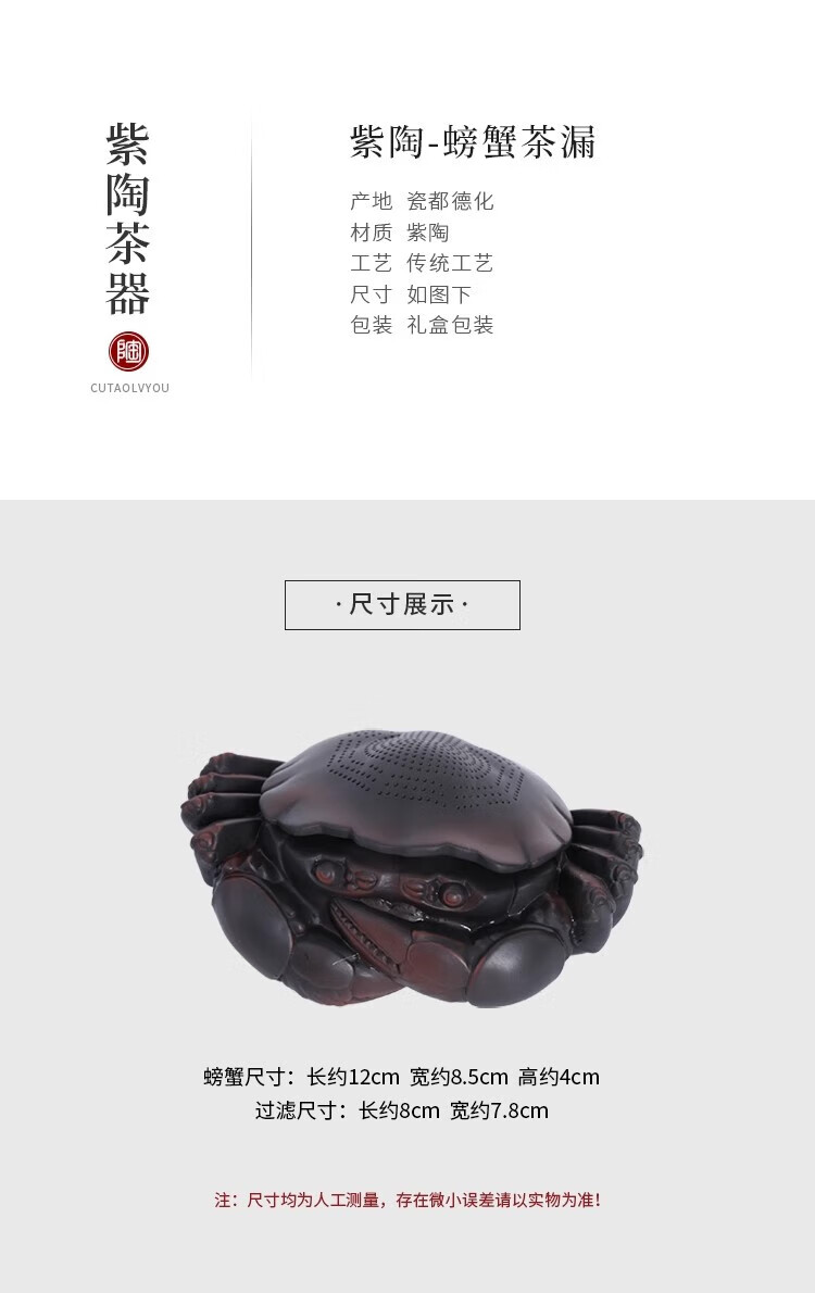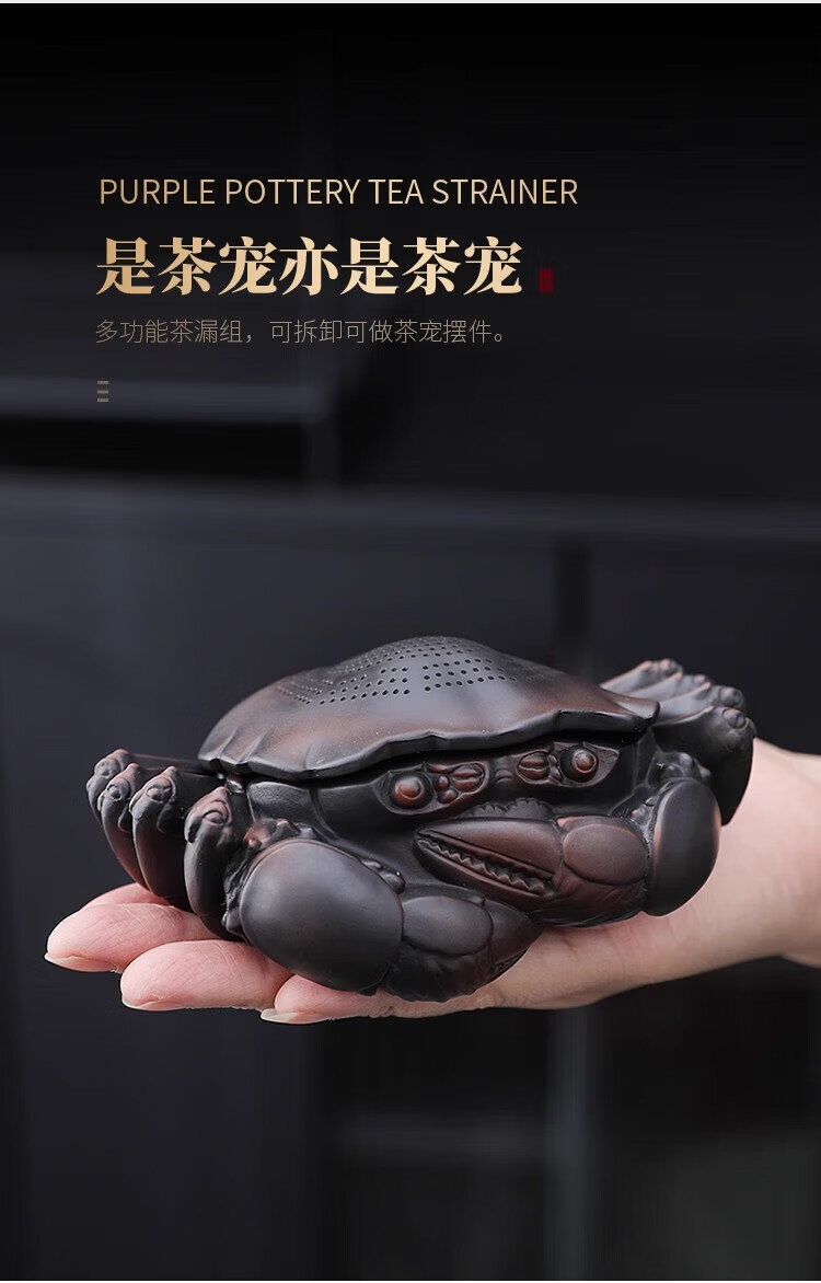 Purple pottery crab tea drain all-ceramic integrated filter set can raise tea pets ornaments household tea filter tea partition crab filter tea pet