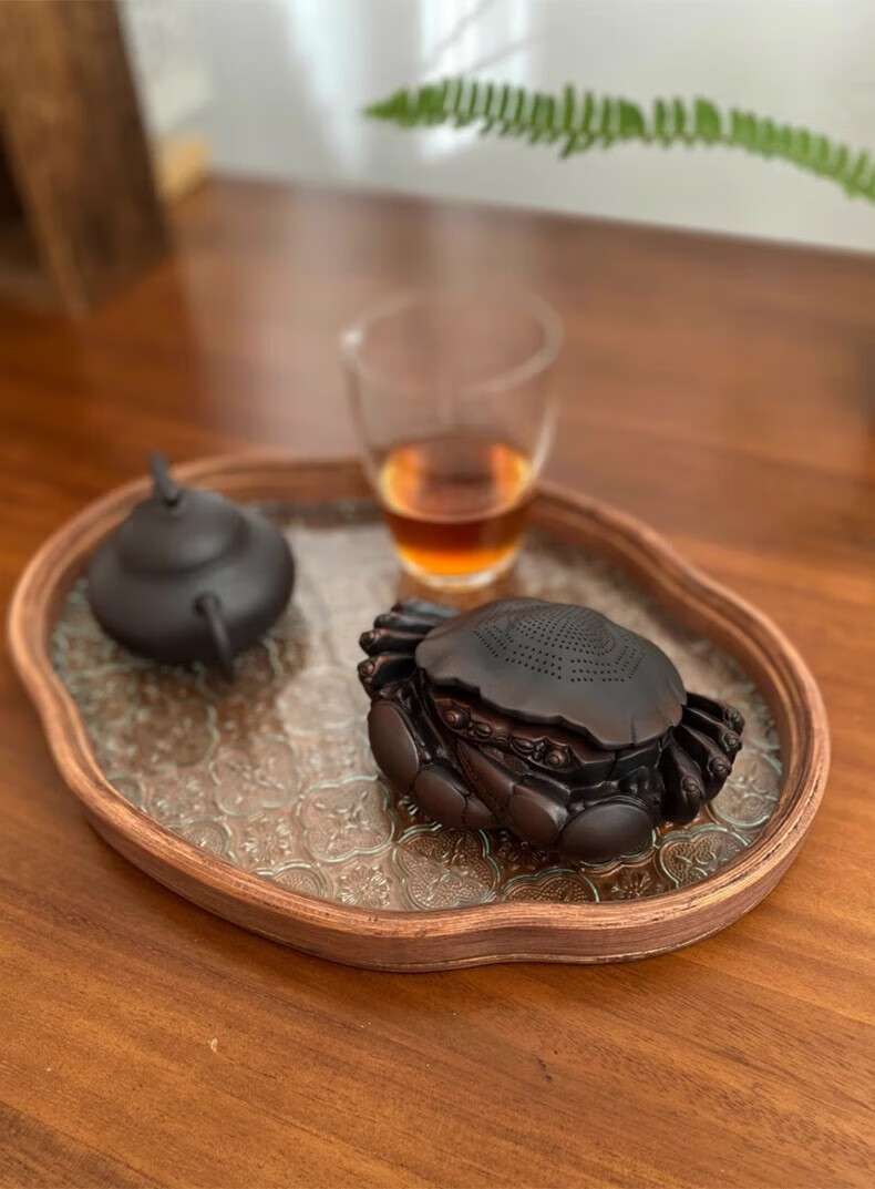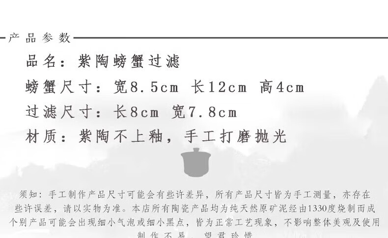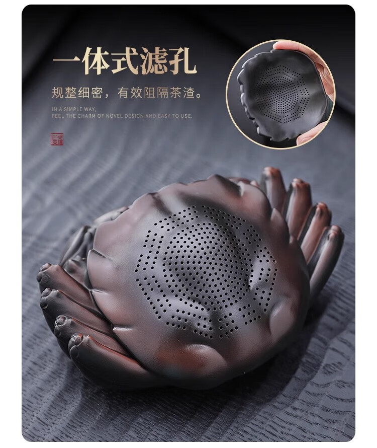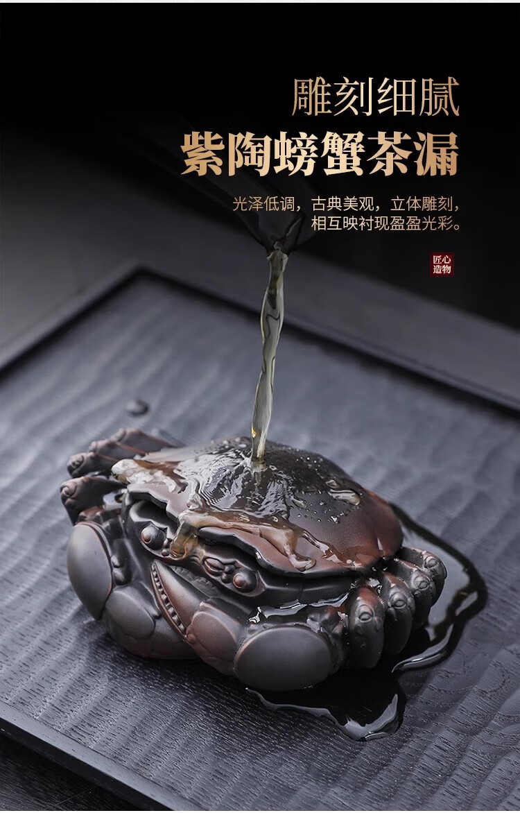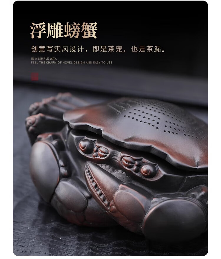 Purple pottery crab tea drain all-ceramic integrated filter set can raise tea pets ornaments household tea filter tea partition crab filter tea pet