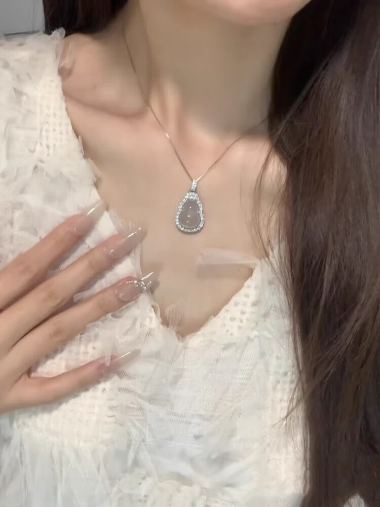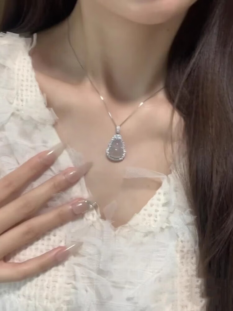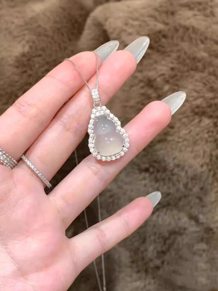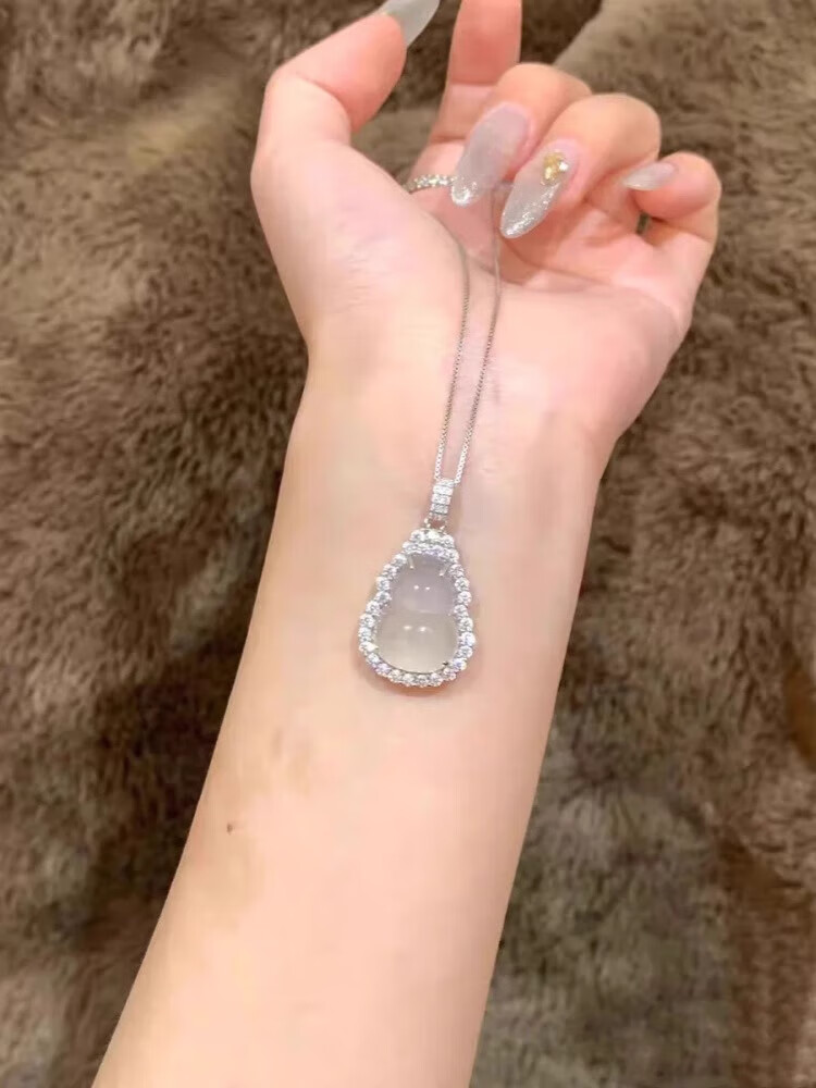 Idel's Fulu Chalcedony Gourd Necklace sterling silver pendant silver clavicle chain neck chain practical birthday gift for wife and girlfriend 925 silver Fulu Chalcedony Necklace L2563