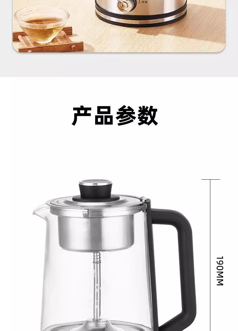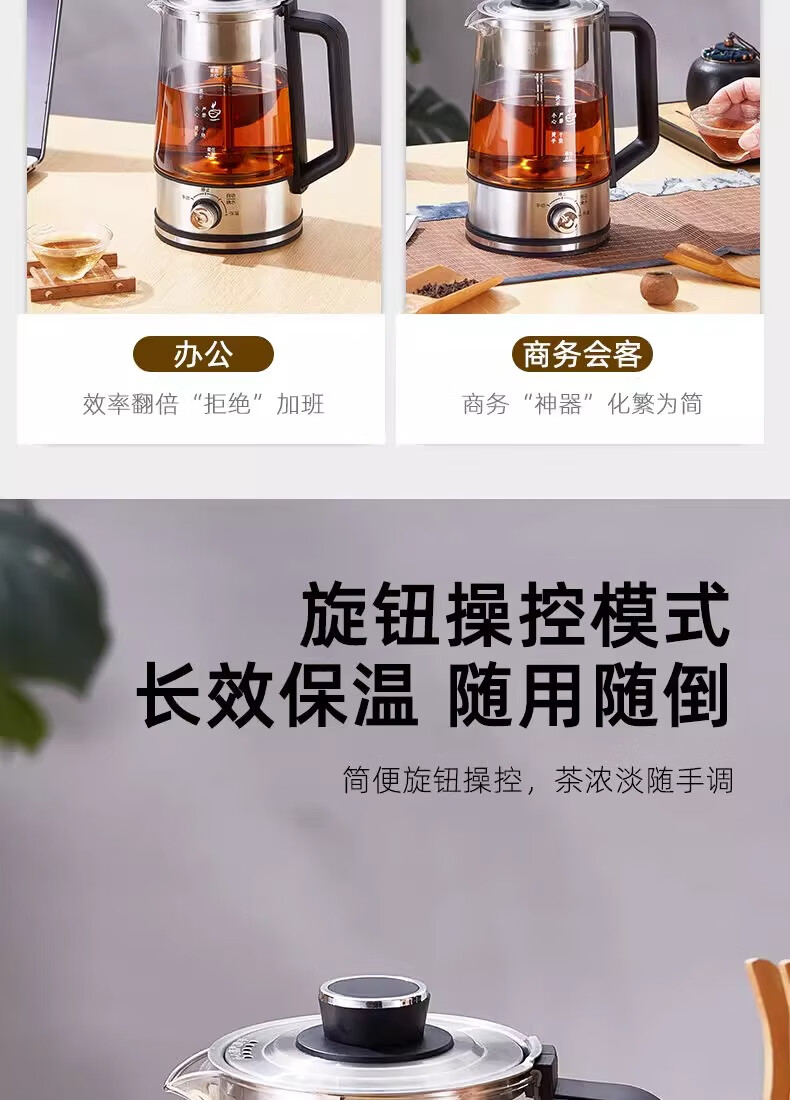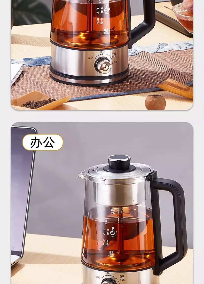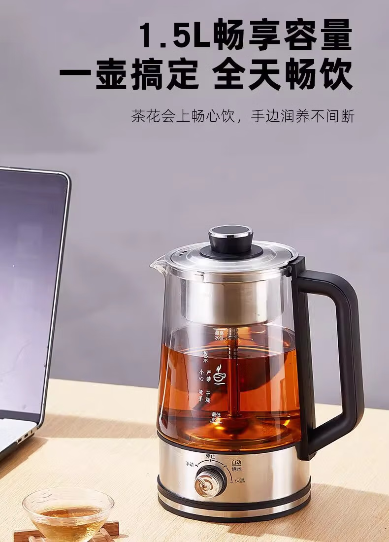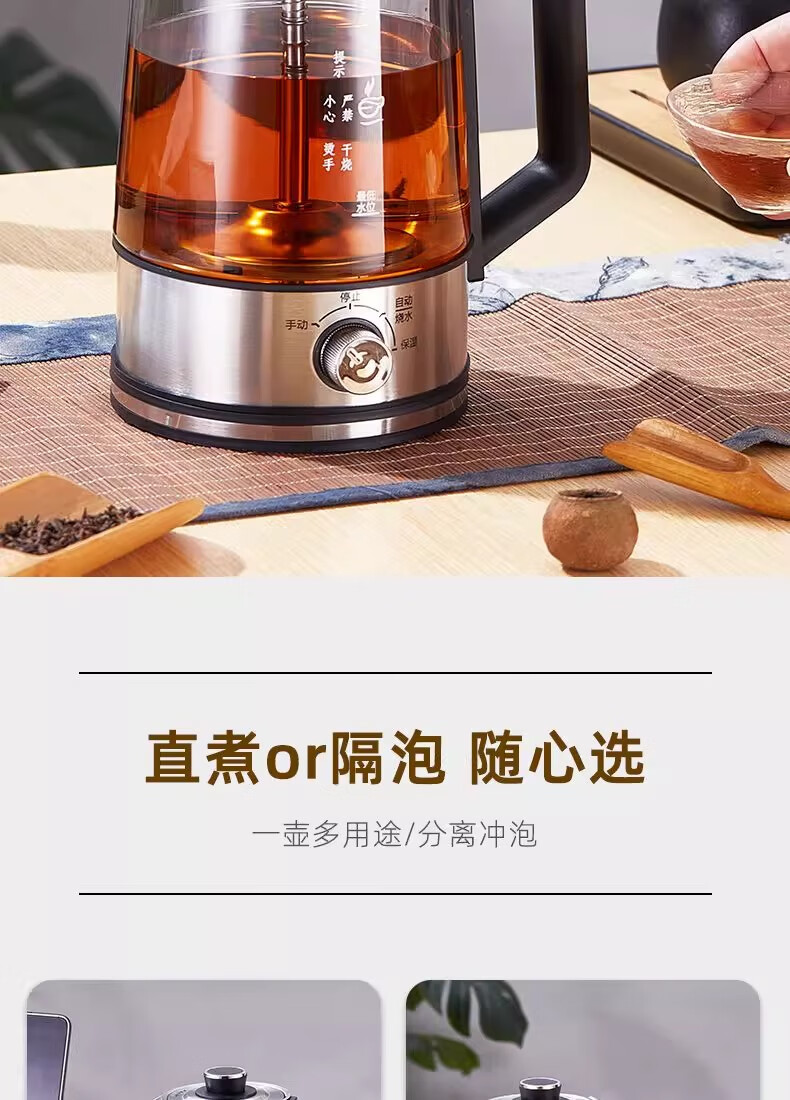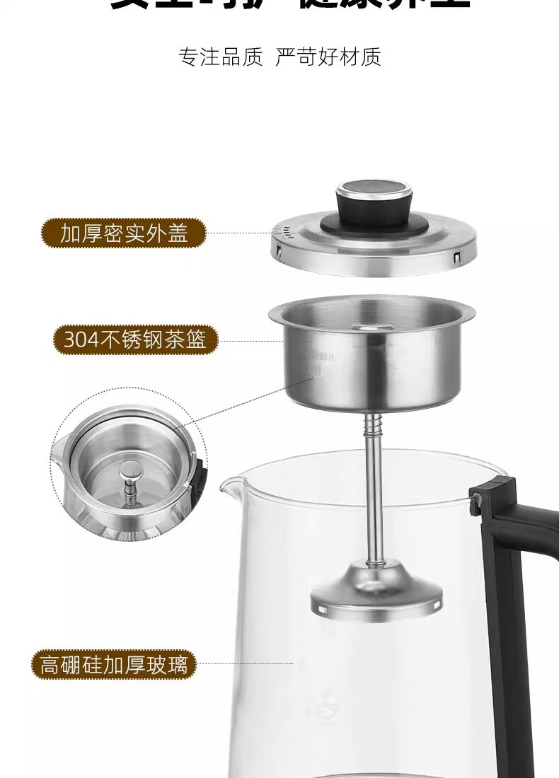 Aoteyou tea kettle, electric tea kettle, kettle, fully automatic all-in-one spray steam tea kettle, health kettle, special for making black tea, silver 1.5L double filter, 304 tea warehouse + thickened high borosilicate kettle, spray extraction + tea soup separation + four-speed rotary control + automatic heat preservation
