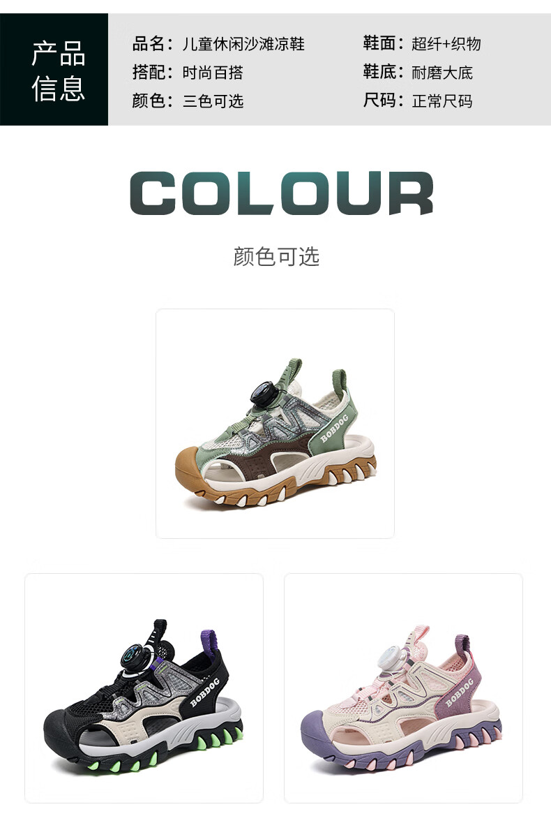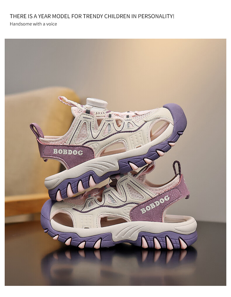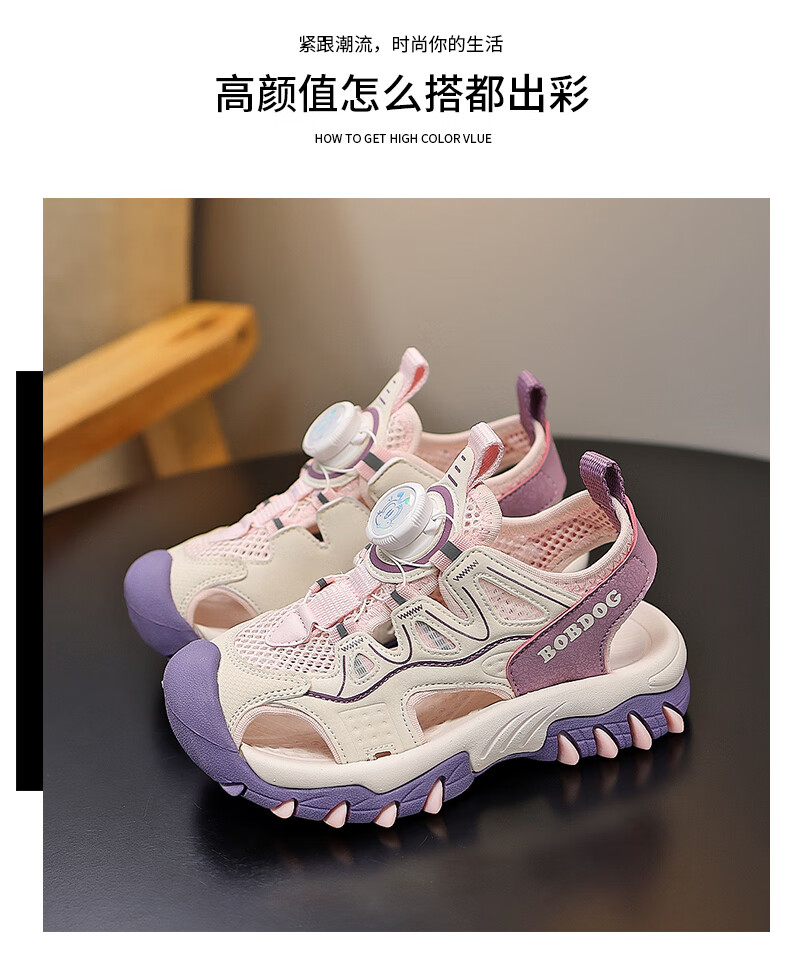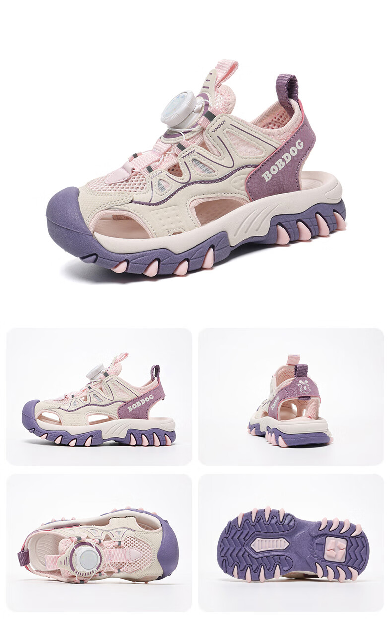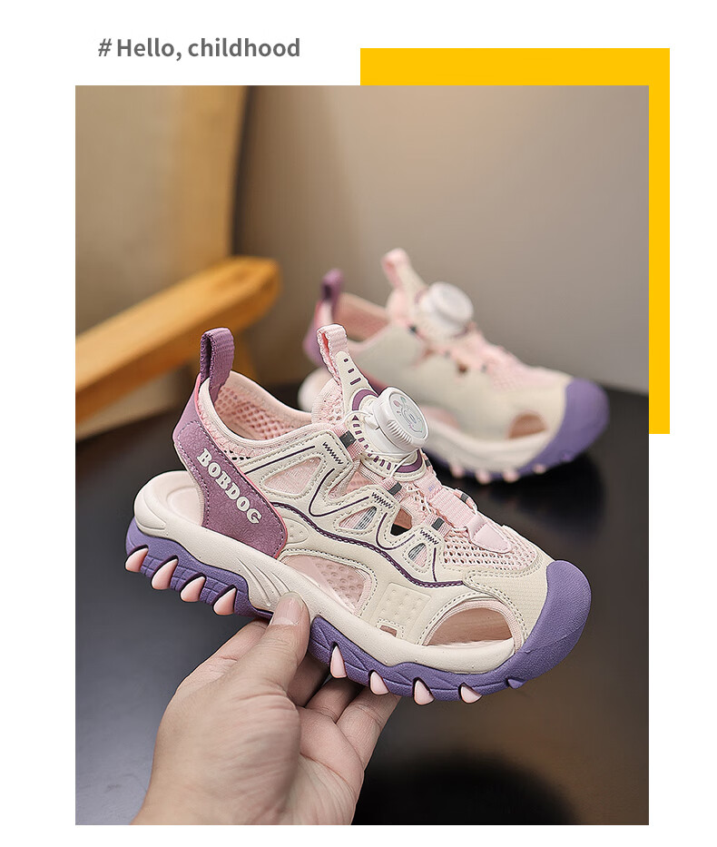 BOBDOG girls sandals 2025 new summer medium and large children's soft sole non-slip toe children's shoes girls outer wear sports shoes MQ223 pink 27 inner length 167mm