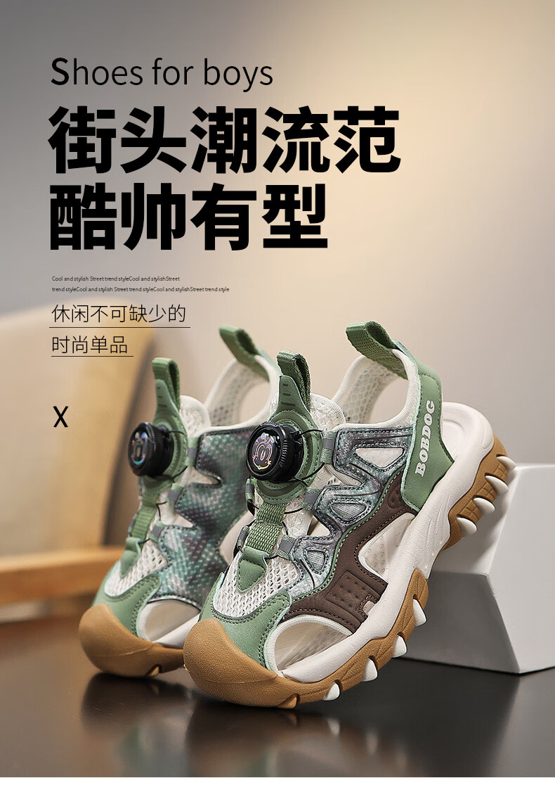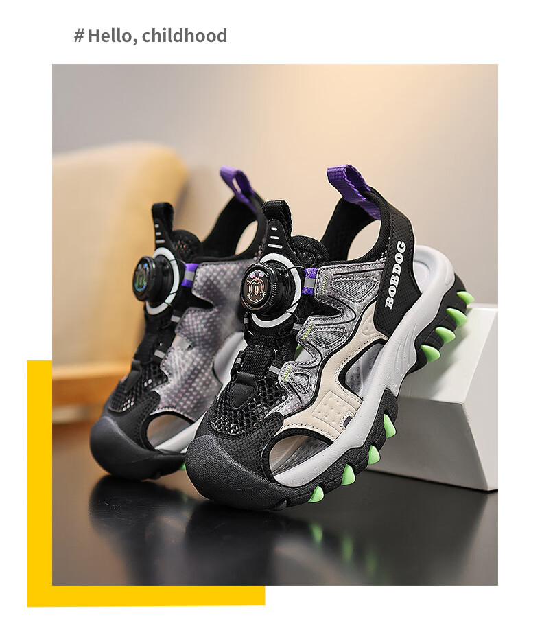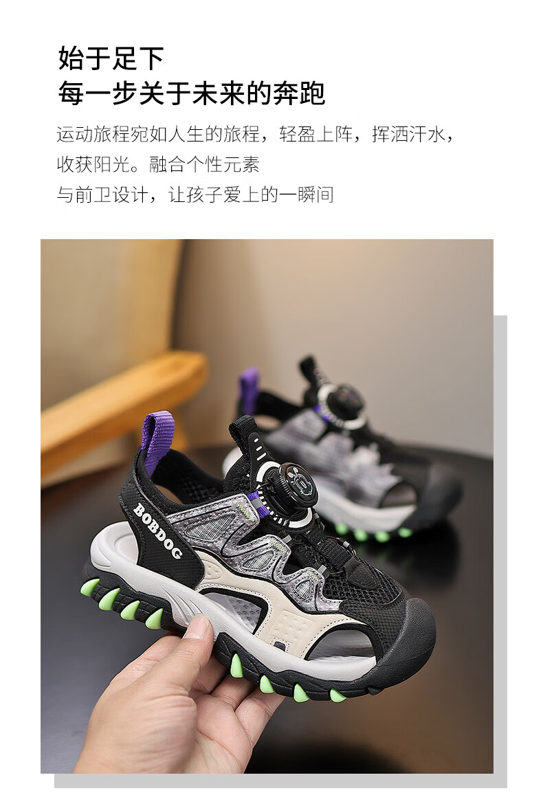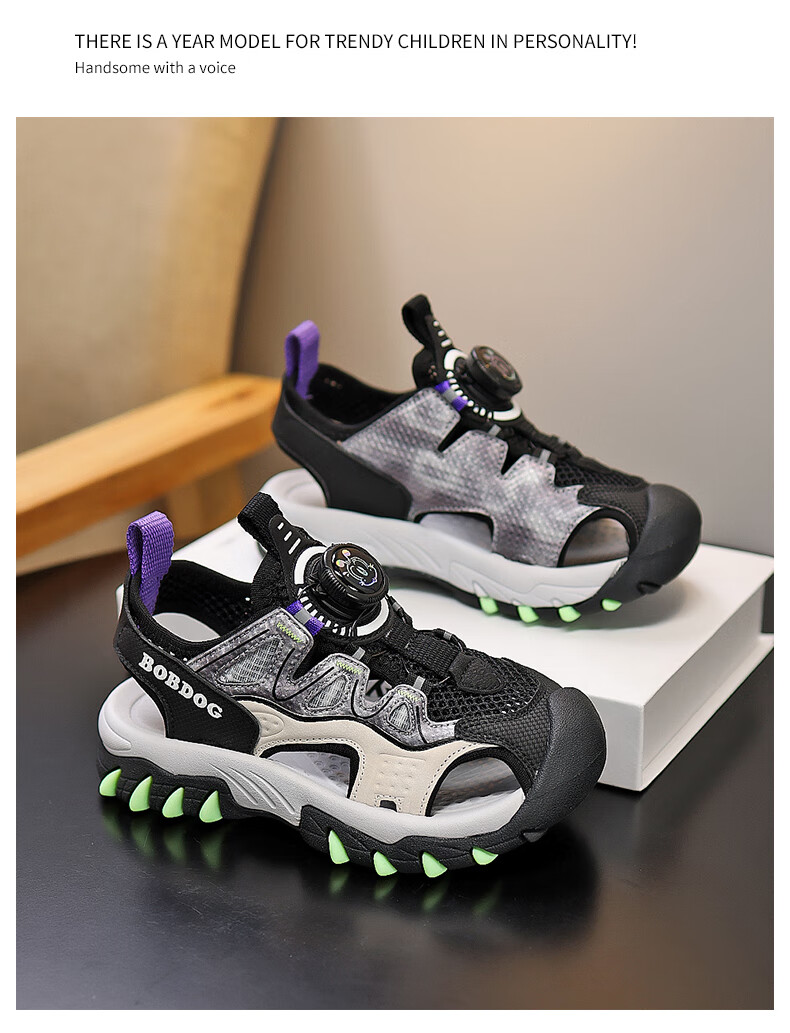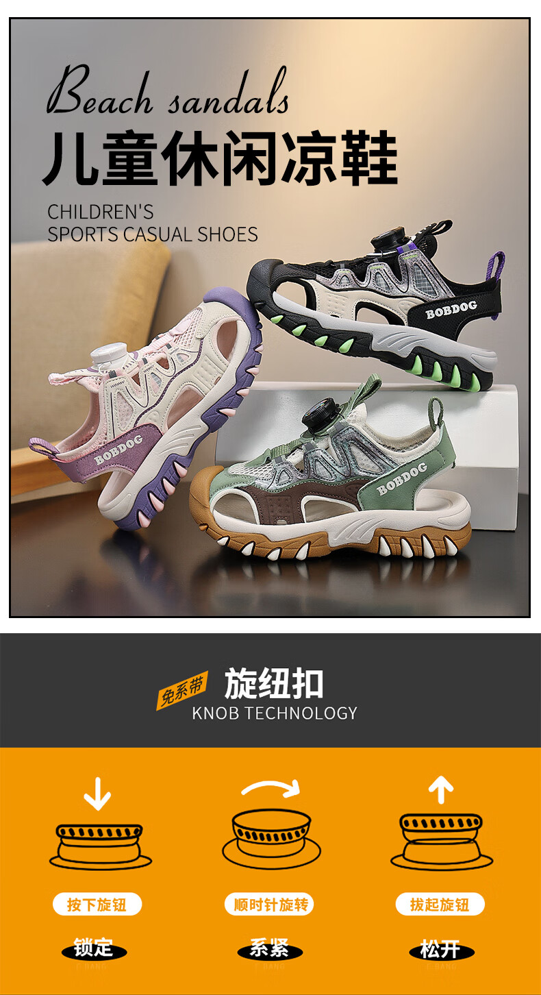 BOBDOG girls sandals 2025 new summer medium and large children's soft sole non-slip toe children's shoes girls outer wear sports shoes MQ223 pink 27 inner length 167mm