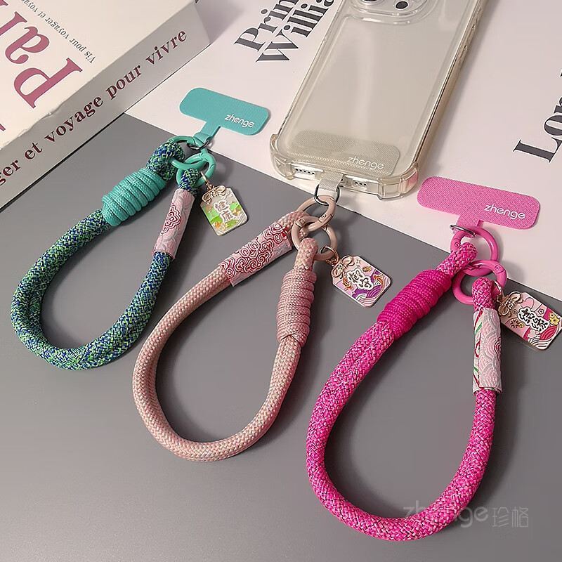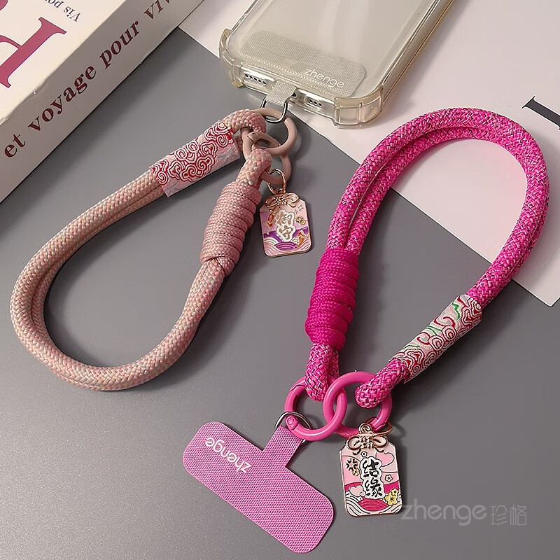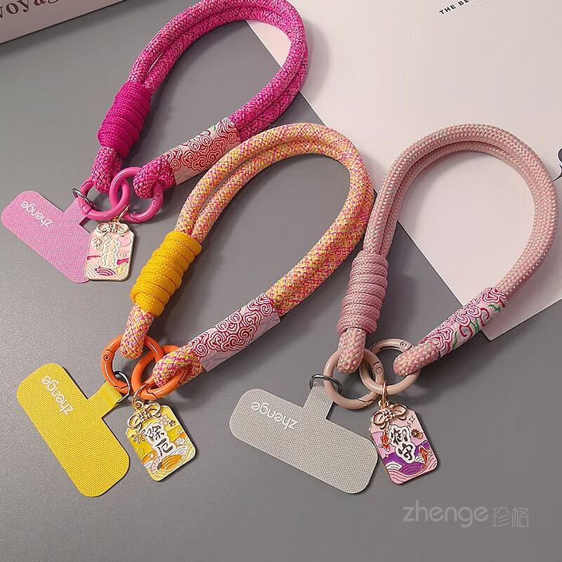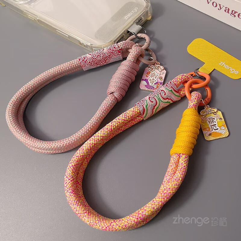 Zhengefu brand pendant Guofeng Xiangyun mobile phone lanyard wrist short ins women's outdoor anti-lost hand rope travel mountain climbing and shopping anti-lost mobile phone case pendant small sling new pastel Xiangyun two-strand simple thick hand rope + gray long clip + Yushoufu brand