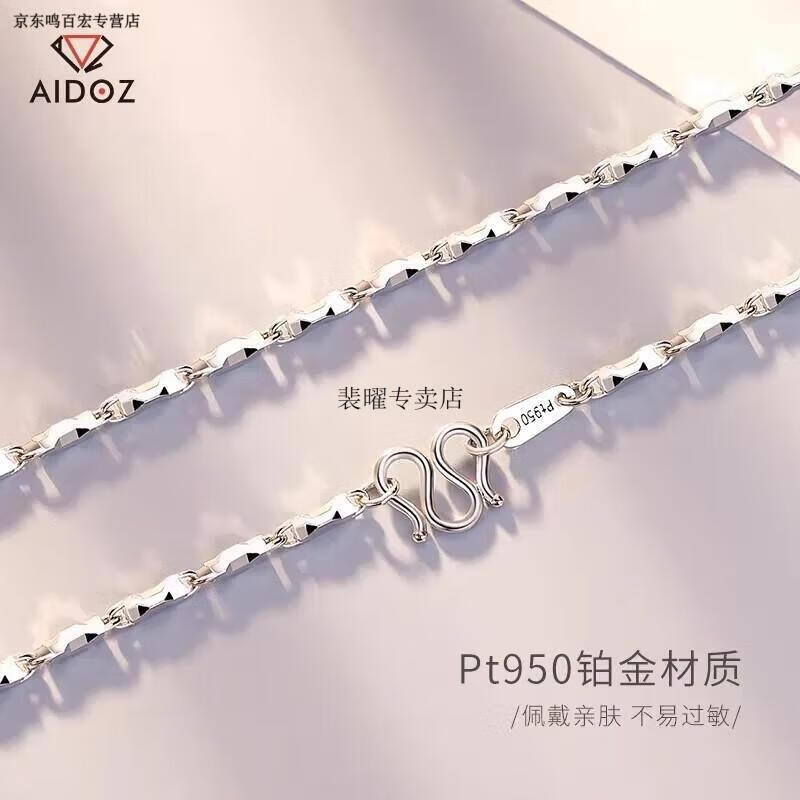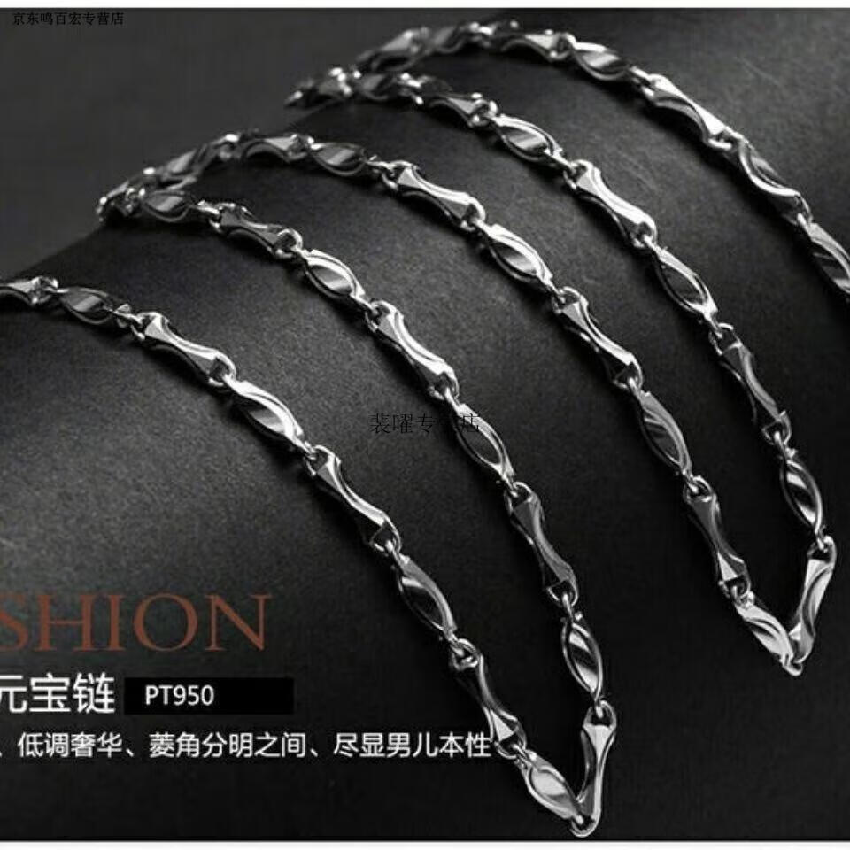 He Jiagong Lao Phoenix pt950 platinum 999 sterling silver necklace men's and women's ingot chain 18 necklace moissanite diamond clavicle necklace men's platinum ingot chain men's and women's (default length is about 55cm 22.8 grams limited to 10% off)