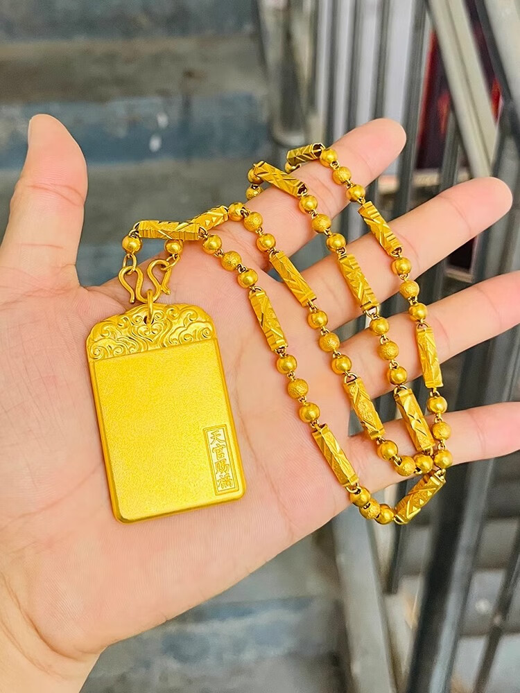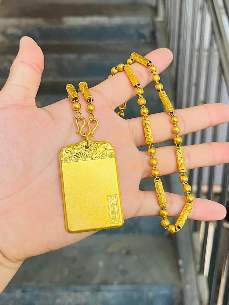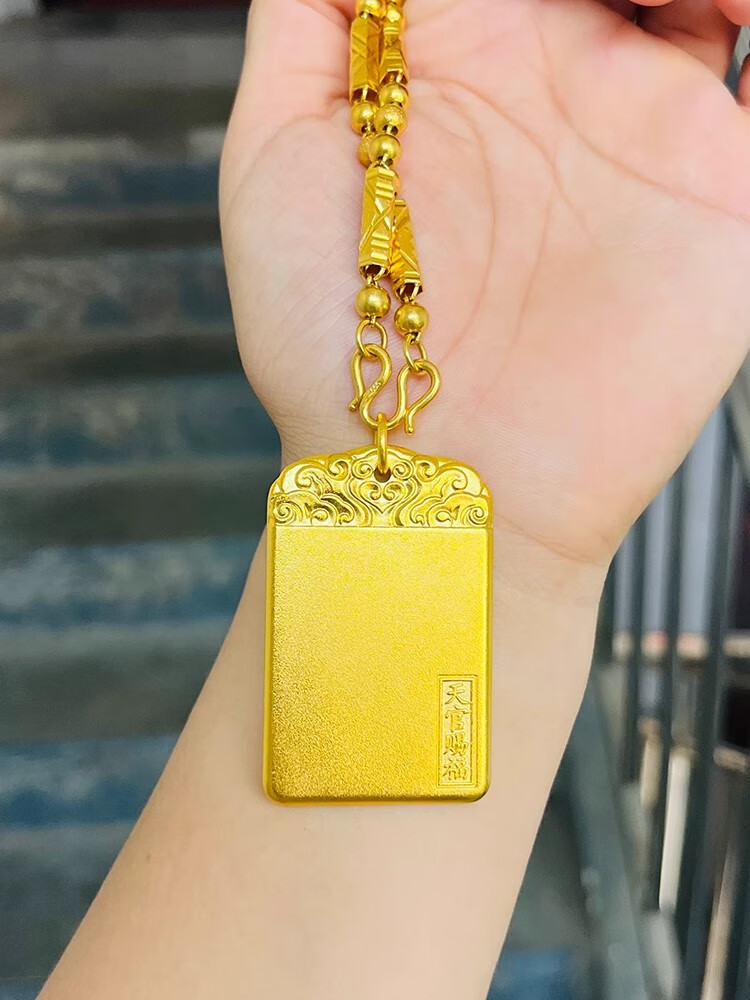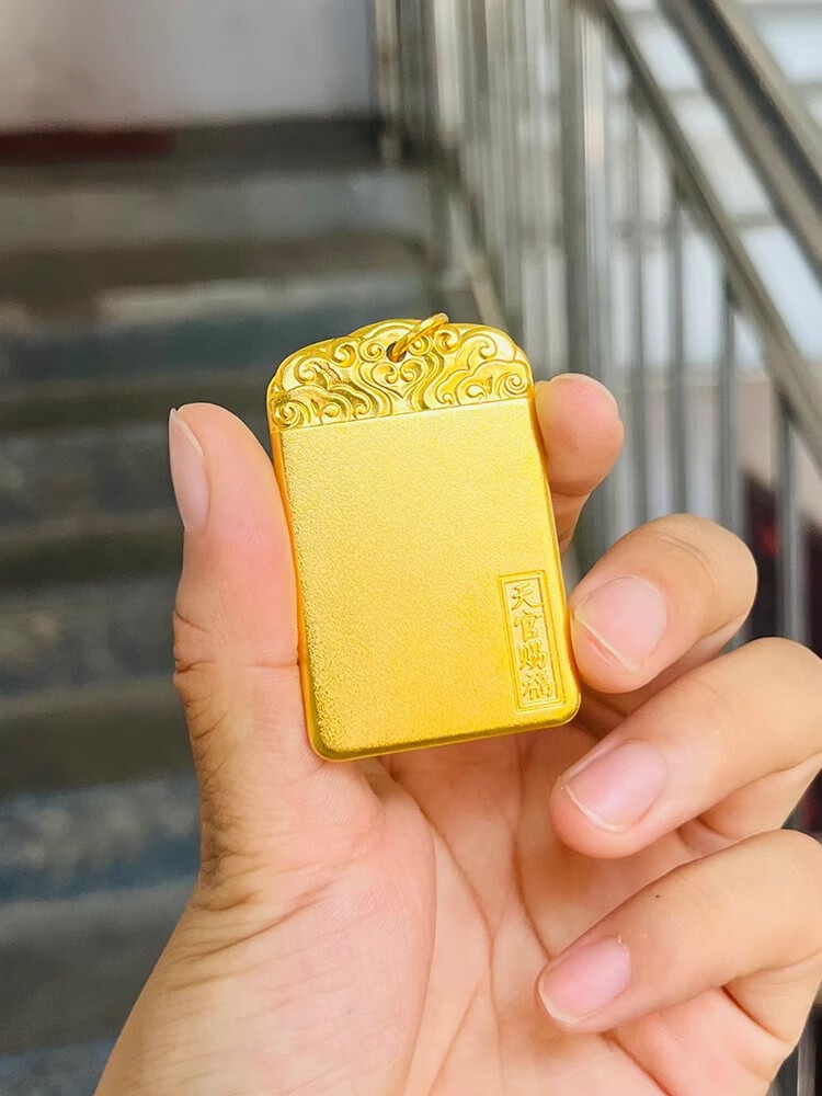Xingkalong 999 Pure Gold Silver Pendant Men's Heavenly Official's Blessing Gold Tag Necklace Solid Pendant for Husband as a Gift for Dad Gold-Coated Silver Heavenly Official's Blessing Pendant Single Pendant Gold-covered 2.5g Total Weight Approximately 38g Free Black Rope