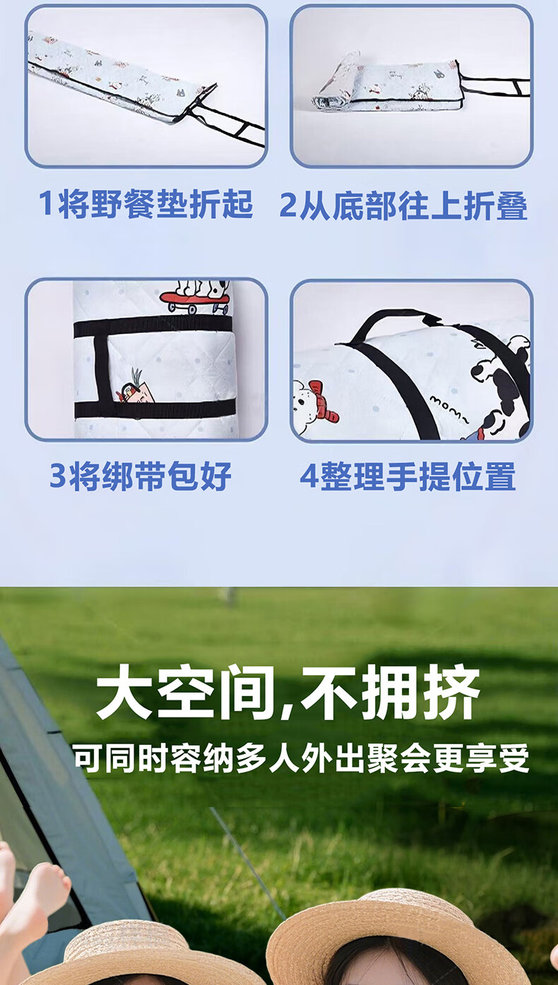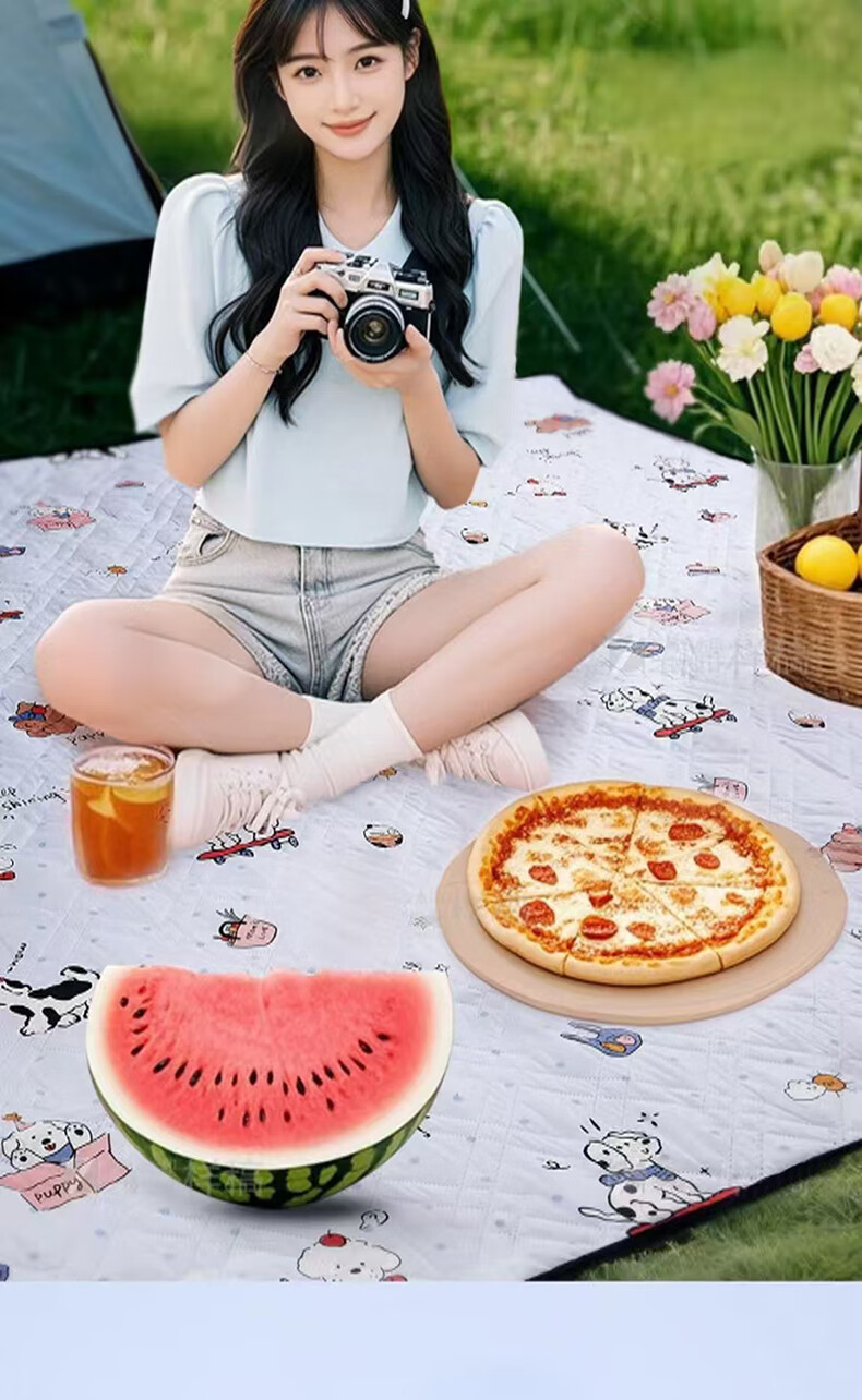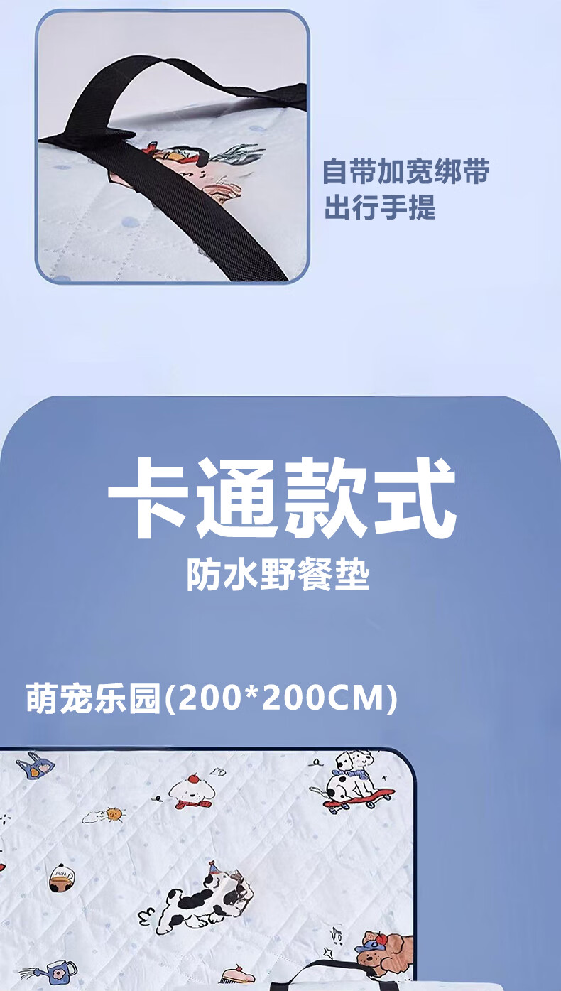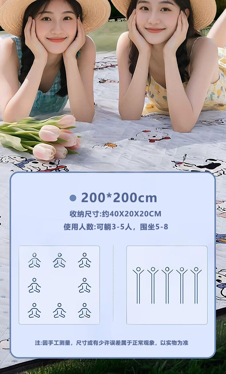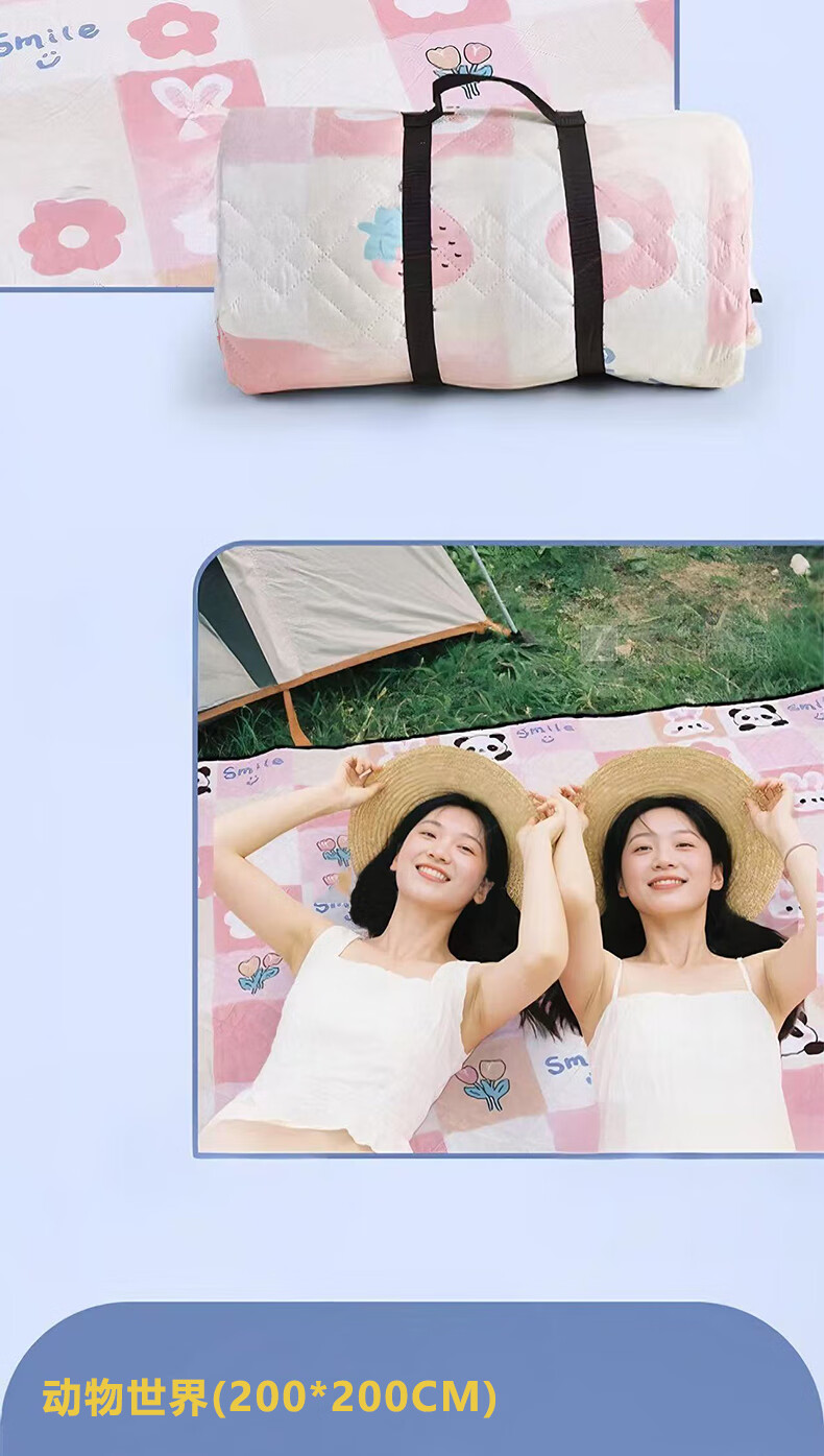 Savage picnic mat outdoor thickened extra large portable camping mat spring outing picnic lawn mat waterproof and moisture-proof mat crawling mat 220g cotton Cute Pet Paradise 200*200 waterproof aluminum film PVC material