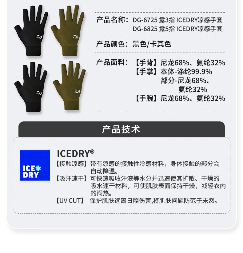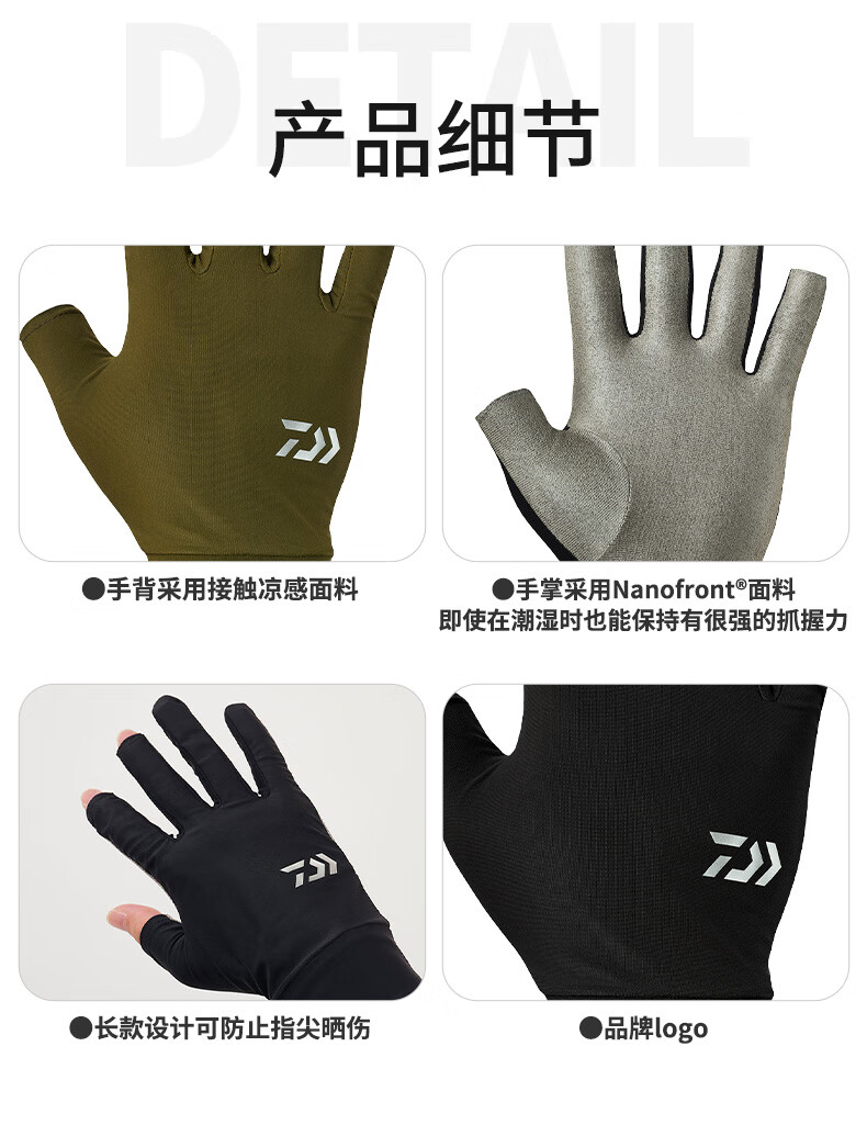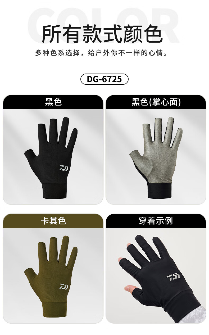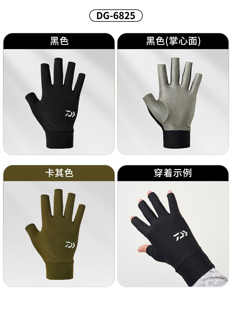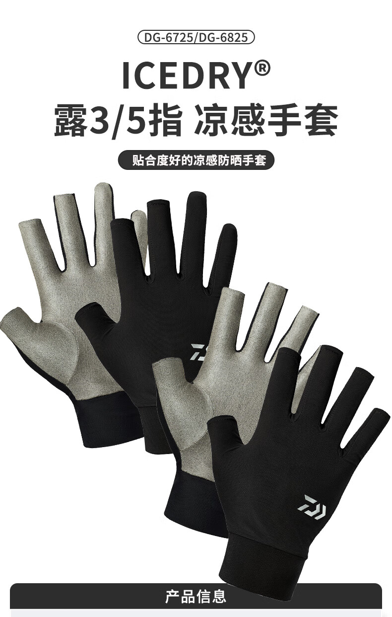 DAIWA 25 spring and summer DG-6725/6825 Fingerless cool fishing gloves quick-drying fingerless gloves DG-6725 3 fingers exposed black L