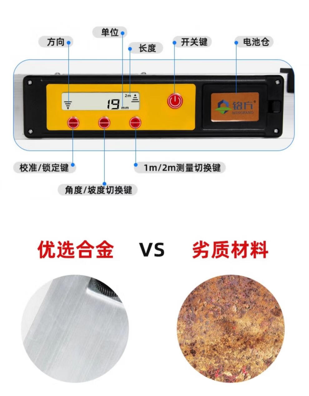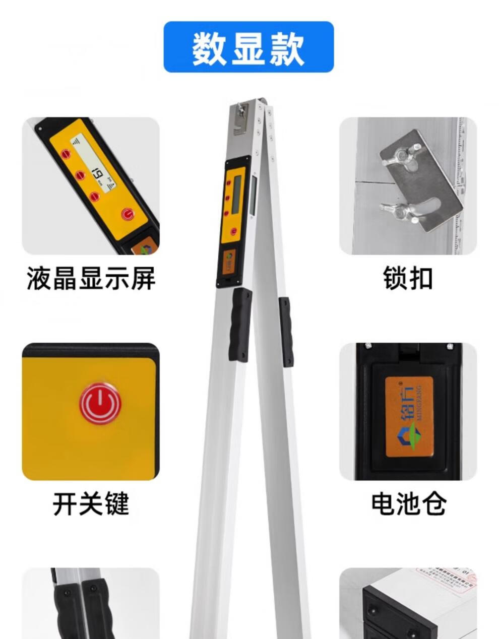 OUOETY ruler 2 meters folding electronic level ruler verticality measuring instrument engineering inspection ruler flatness leveling ruler + feeler ruler single ruler digital display 2 meter ruler