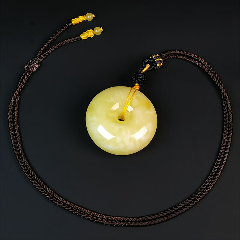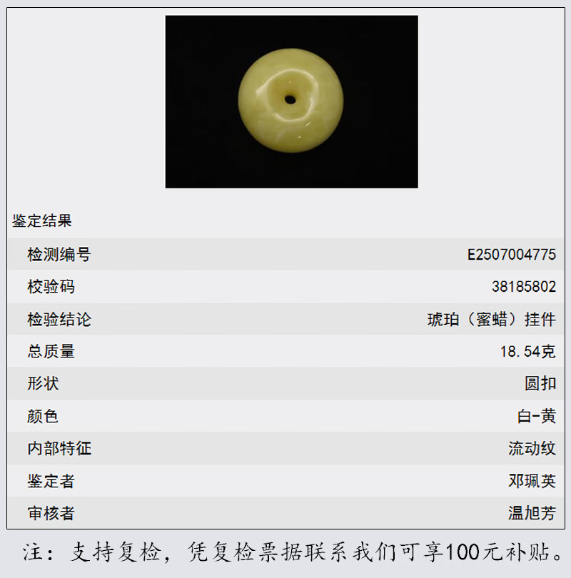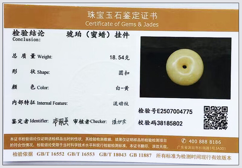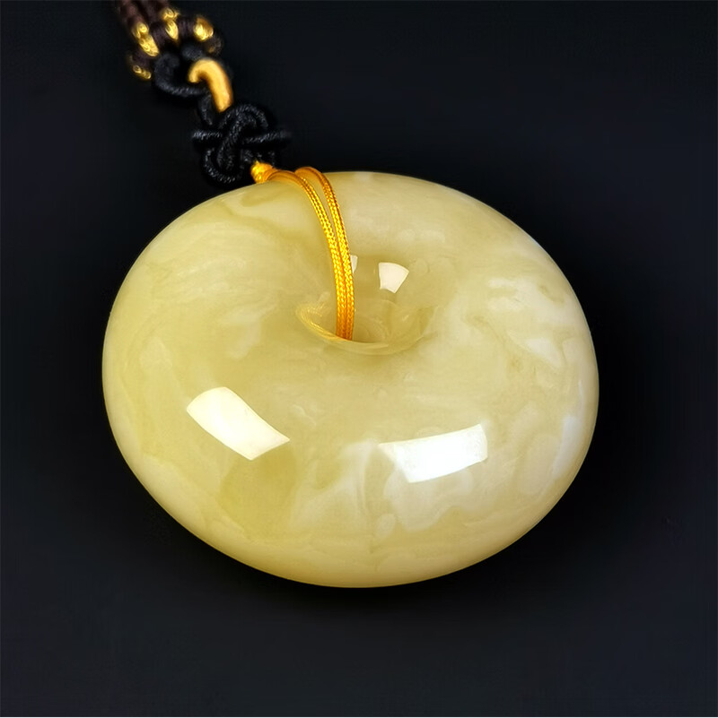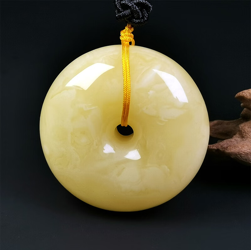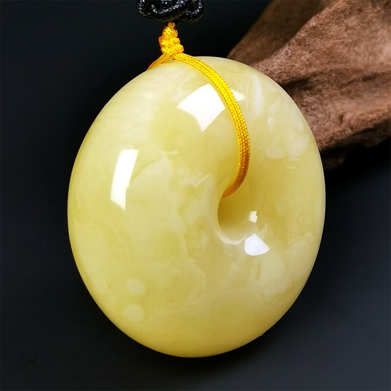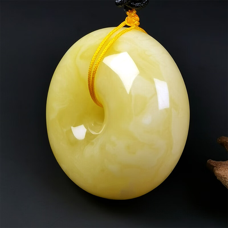 Hupai One thing, one picture, one certificate, natural beeswax pendant, safety buckle pendant necklace, white wax and white flower wax, no cracks, pendant 18.54g 39*18mm