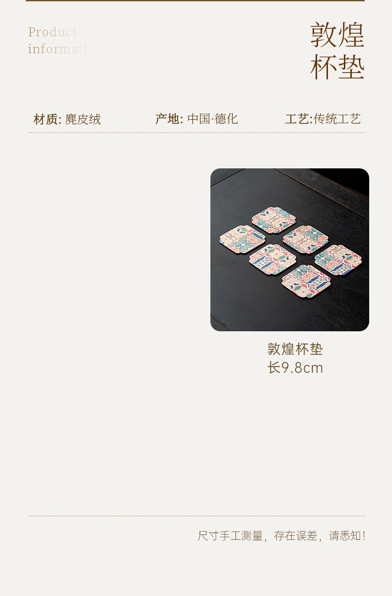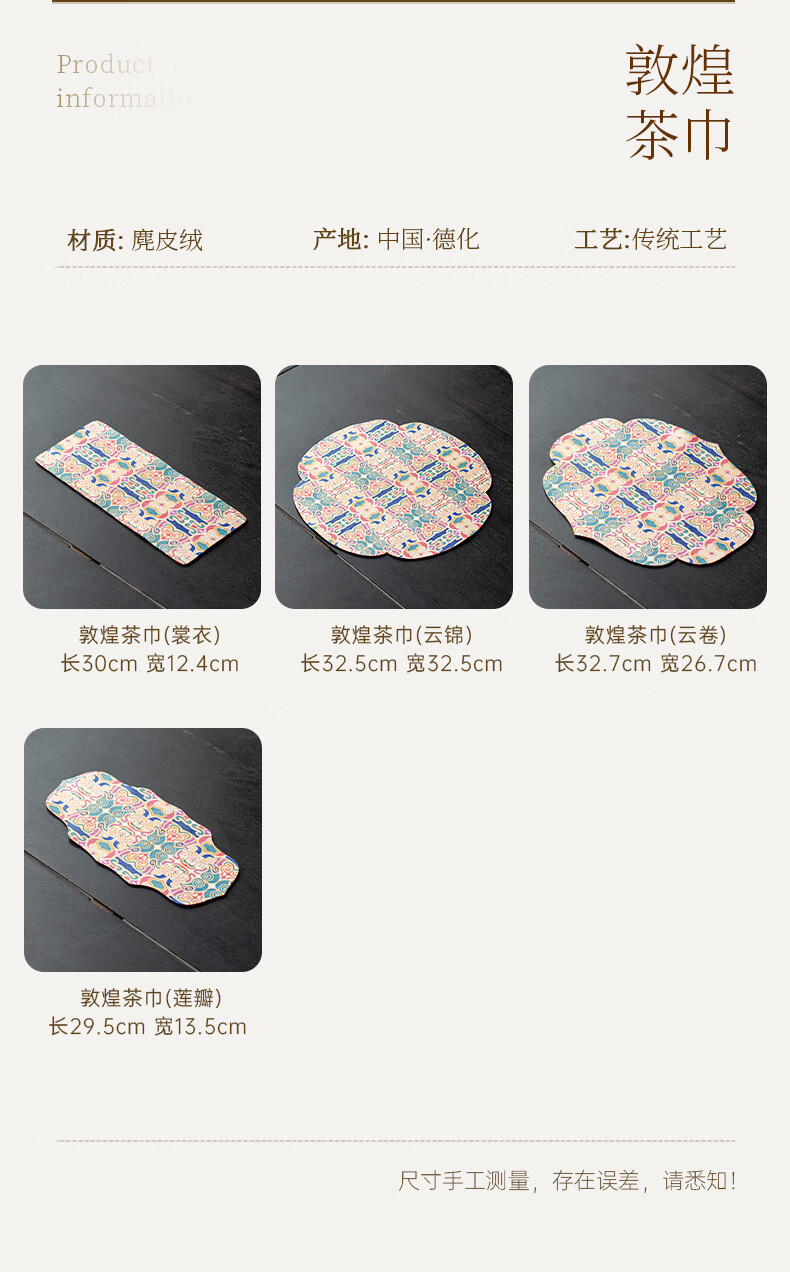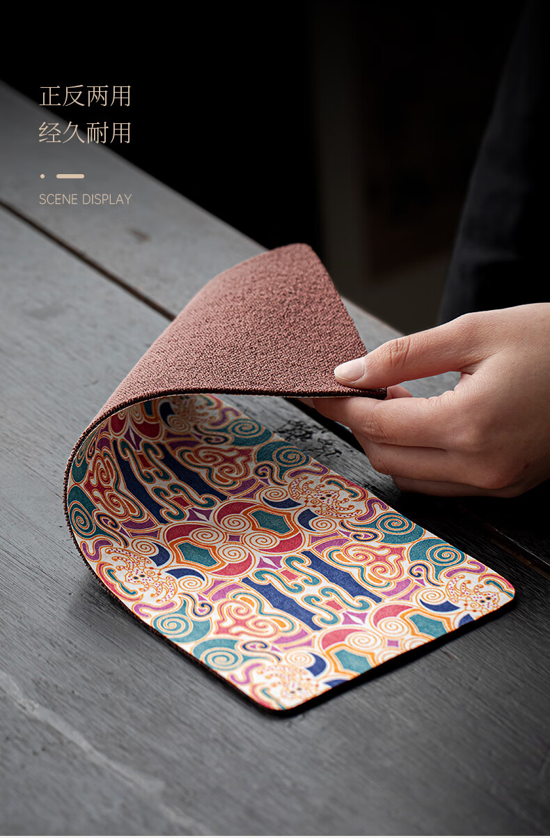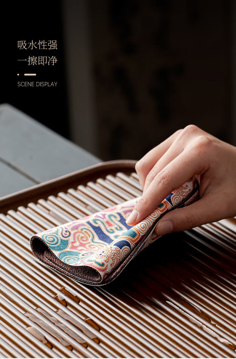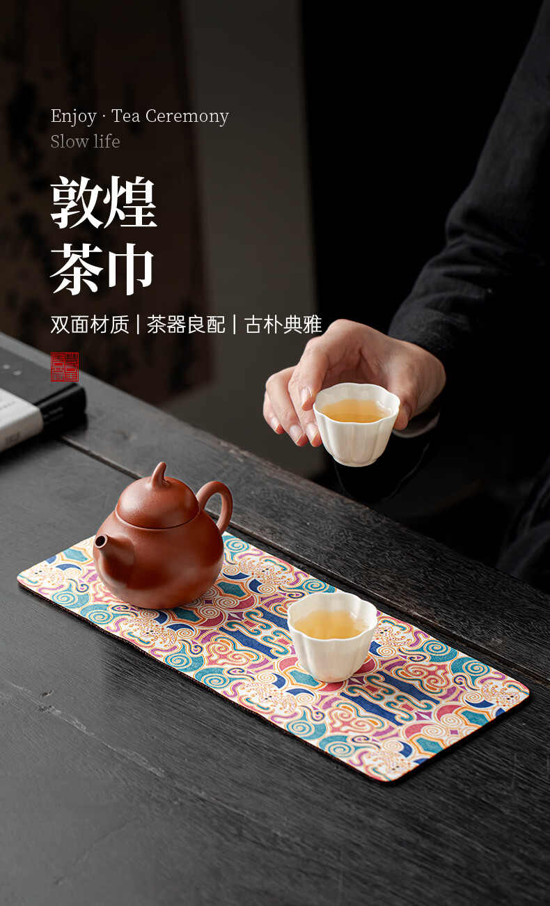 Tang Feng Dunhuang Cultural and Creative Tea Towel Coaster Home High-end Tea Table Special Absorbent Towel National Fashion Rag Double-sided Tea Cloth Pad Dunhuang Coaster 6 Pack