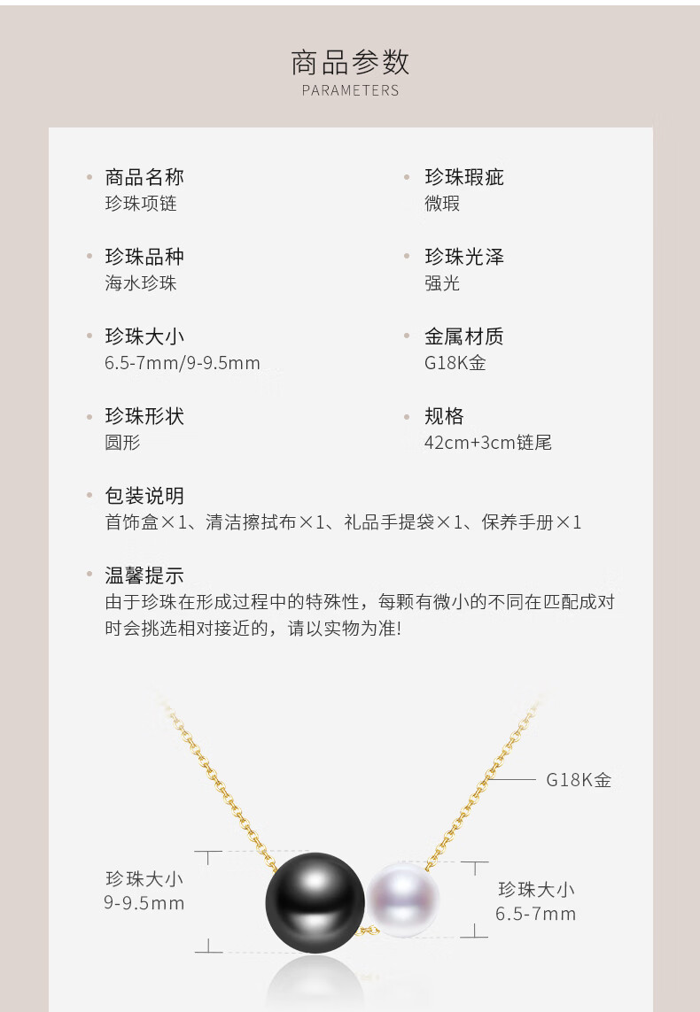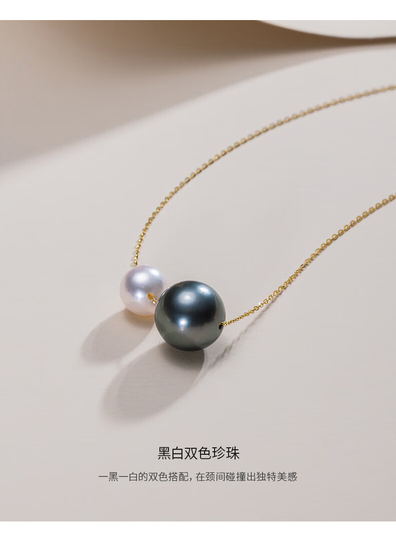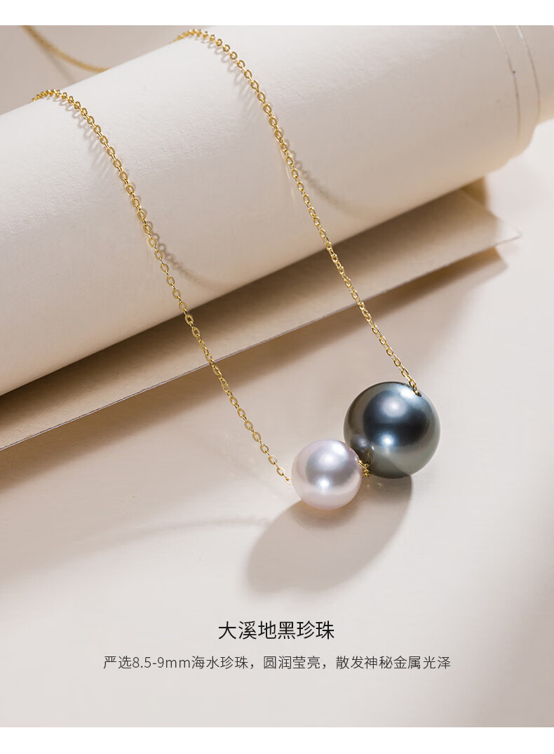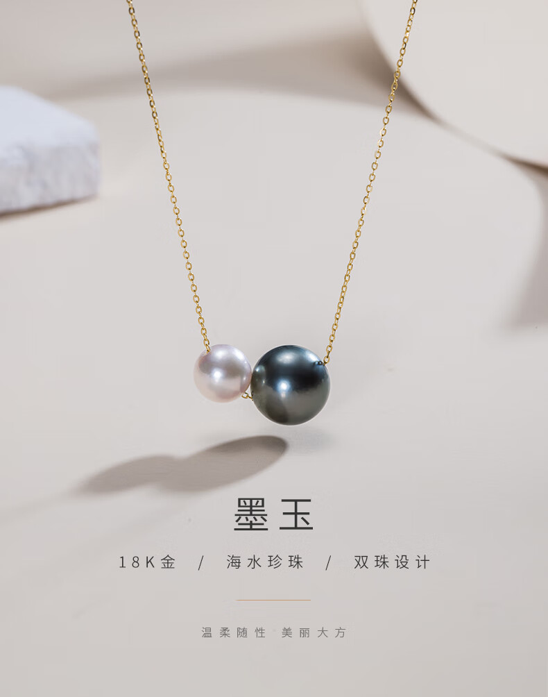 Jingrun new seawater pearl pendant 18K black jade necklace 695mm round bead gift 6.5-9.5mm 42+3cm