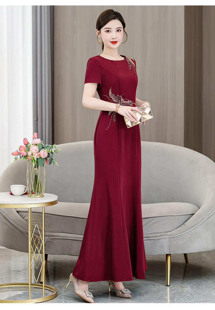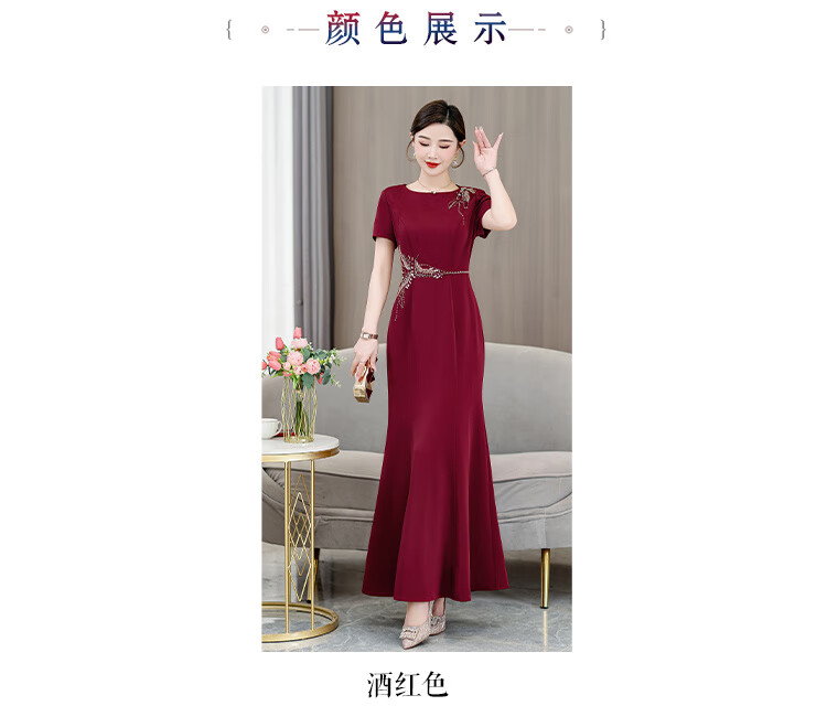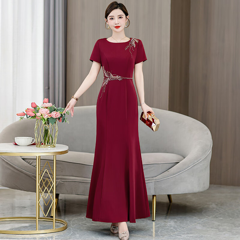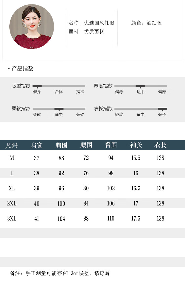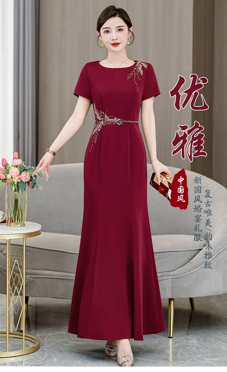 Pierre Cardin high-end Xi mother-in-law cheongsam wedding banquet dress acetate young mom wedding dress fishtail red this year's popular light luxury brand XL recommended 105-115 Jin Jin equals 0.5 kg