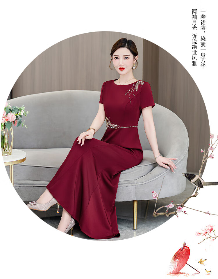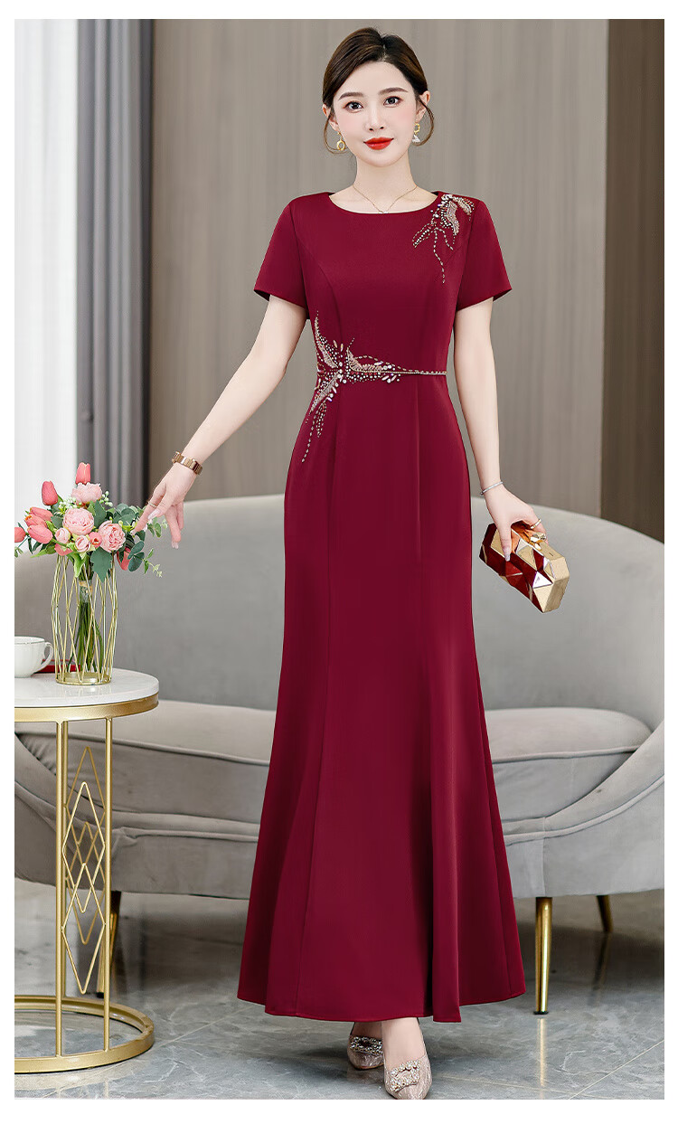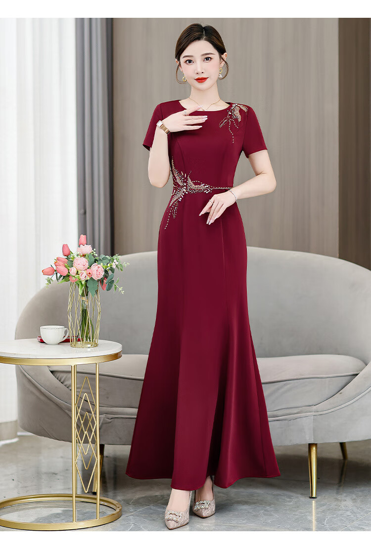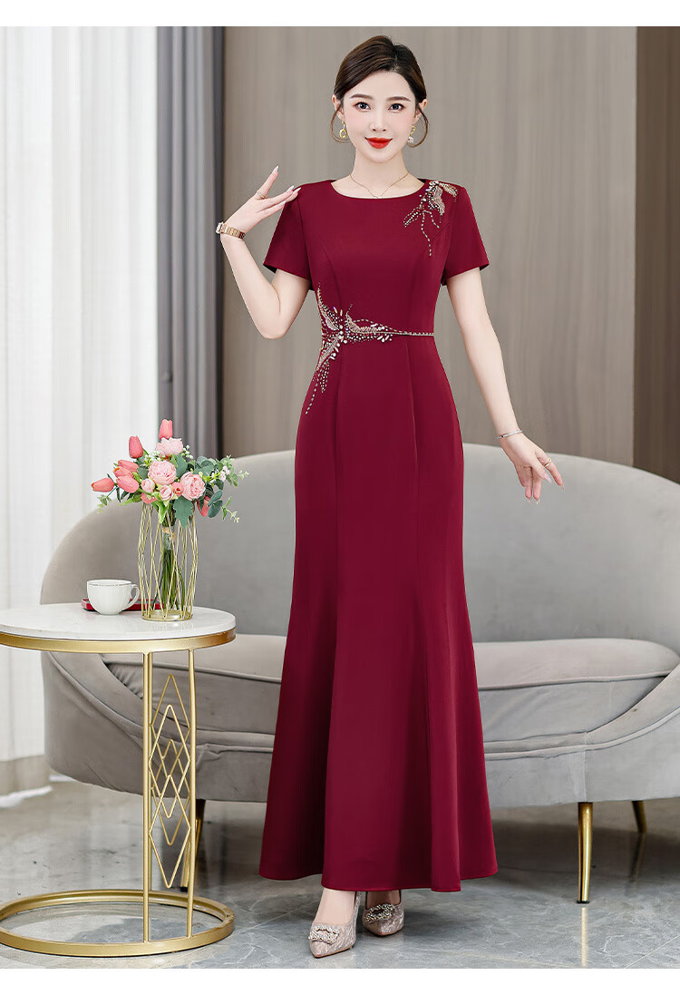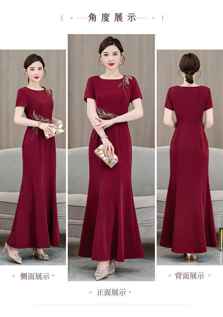 Pierre Cardin high-end Xi mother-in-law cheongsam wedding banquet dress acetate young mom wedding dress fishtail red this year's popular light luxury brand XL recommended 105-115 Jin Jin equals 0.5 kg