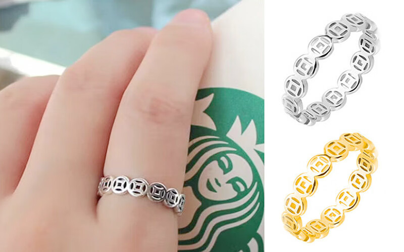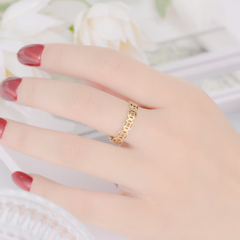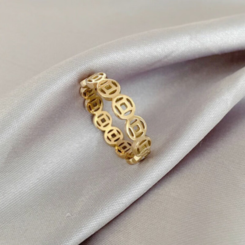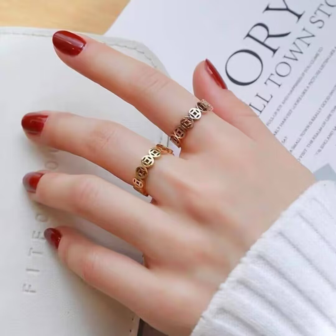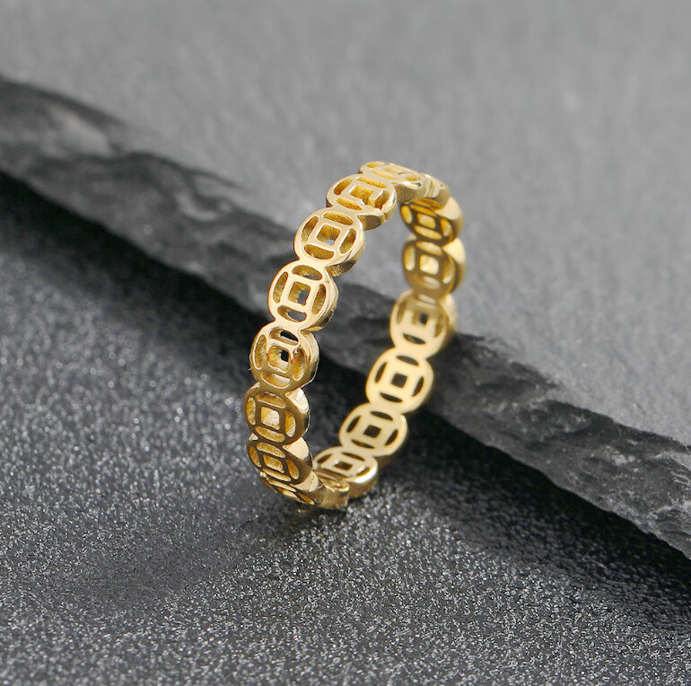 Rongxia money comes from all directions, titanium steel non-fading ring, gold pigment ring, prosperous and partial wealth transfer for men and women, gold No. 11