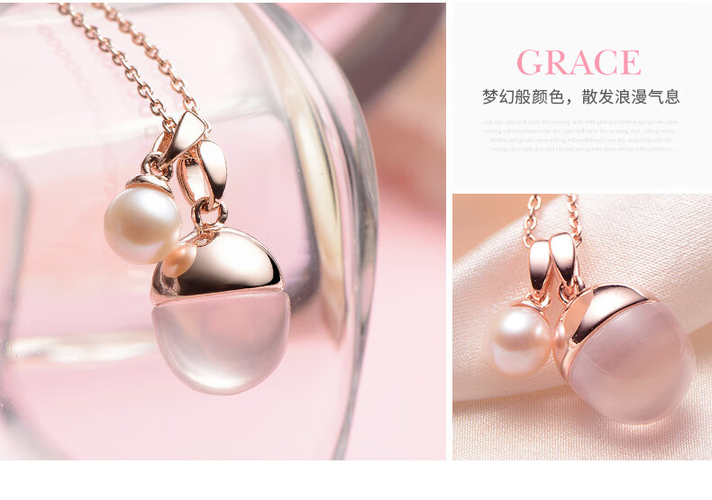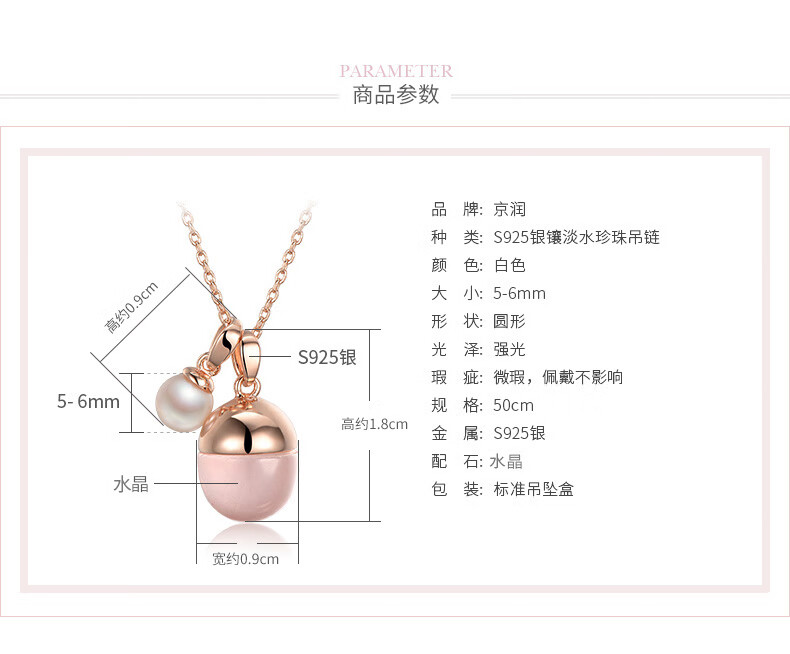 Jingrun Moonlight Lover Pearl Pendant S925 Silver Set with 56mm Freshwater Beads NecklaceD 5-6mm 50cm (length adjustable)