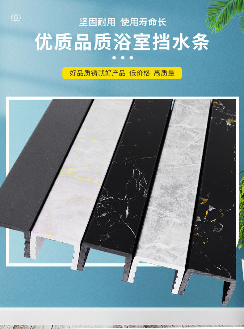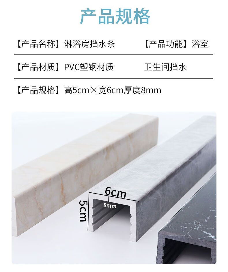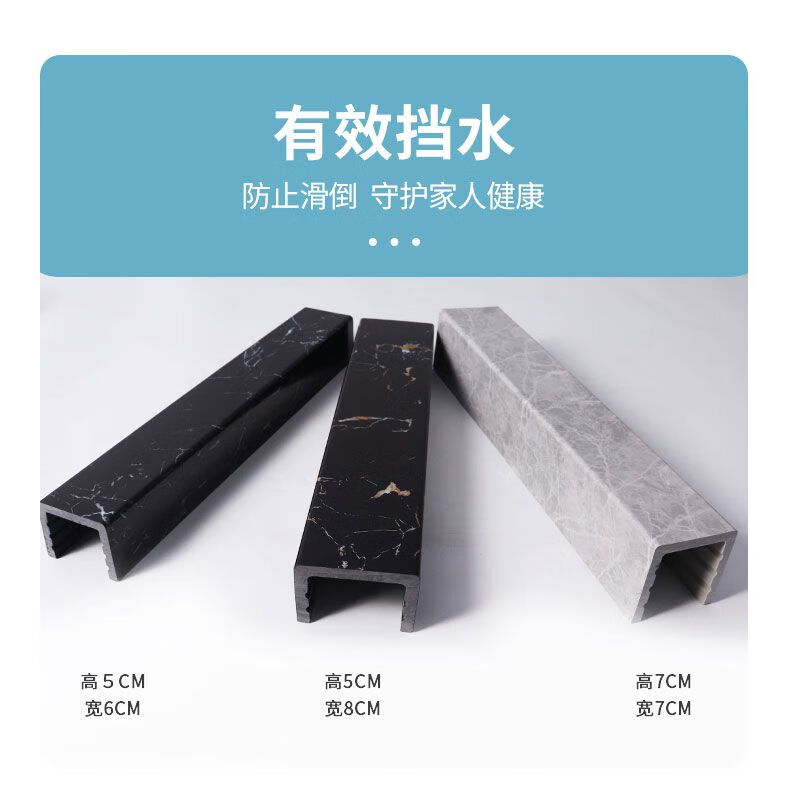 GJXBP water retaining strip bathroom imitation marble shower room bathroom floor partition dry and wet separation stone base PVC anti pure black 5 high 6 wide 1.5 meters