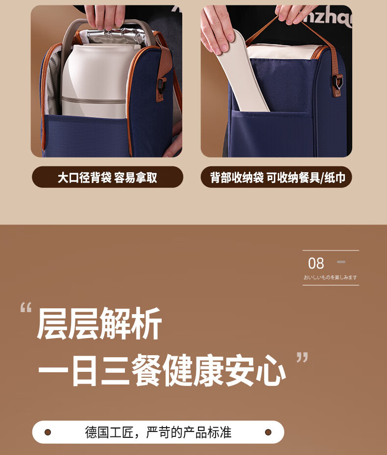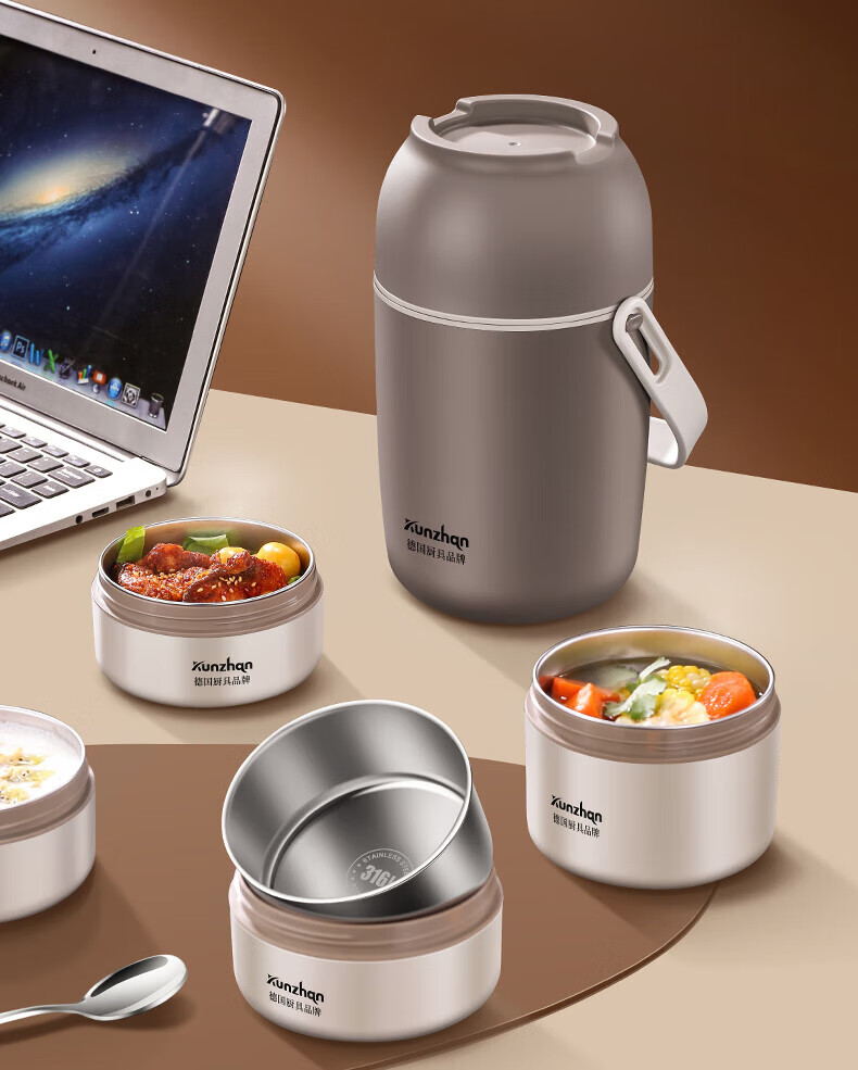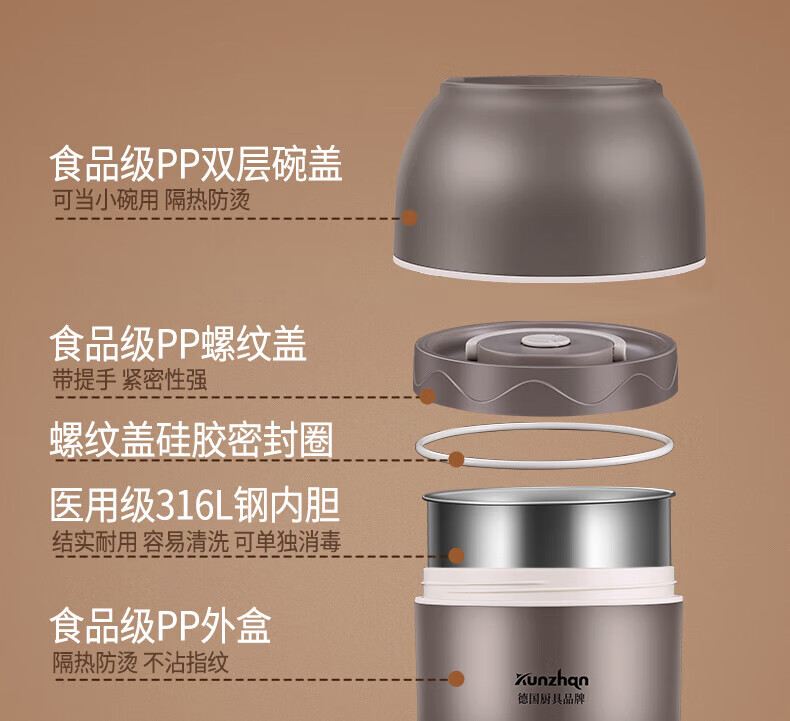 IosnJapan imported quality 316 stainless steel insulated lunch box for office workers, extra long insulated lunch box barrel, three layers 304 1304 stainless steel - cocoa brown two layers, free warranty