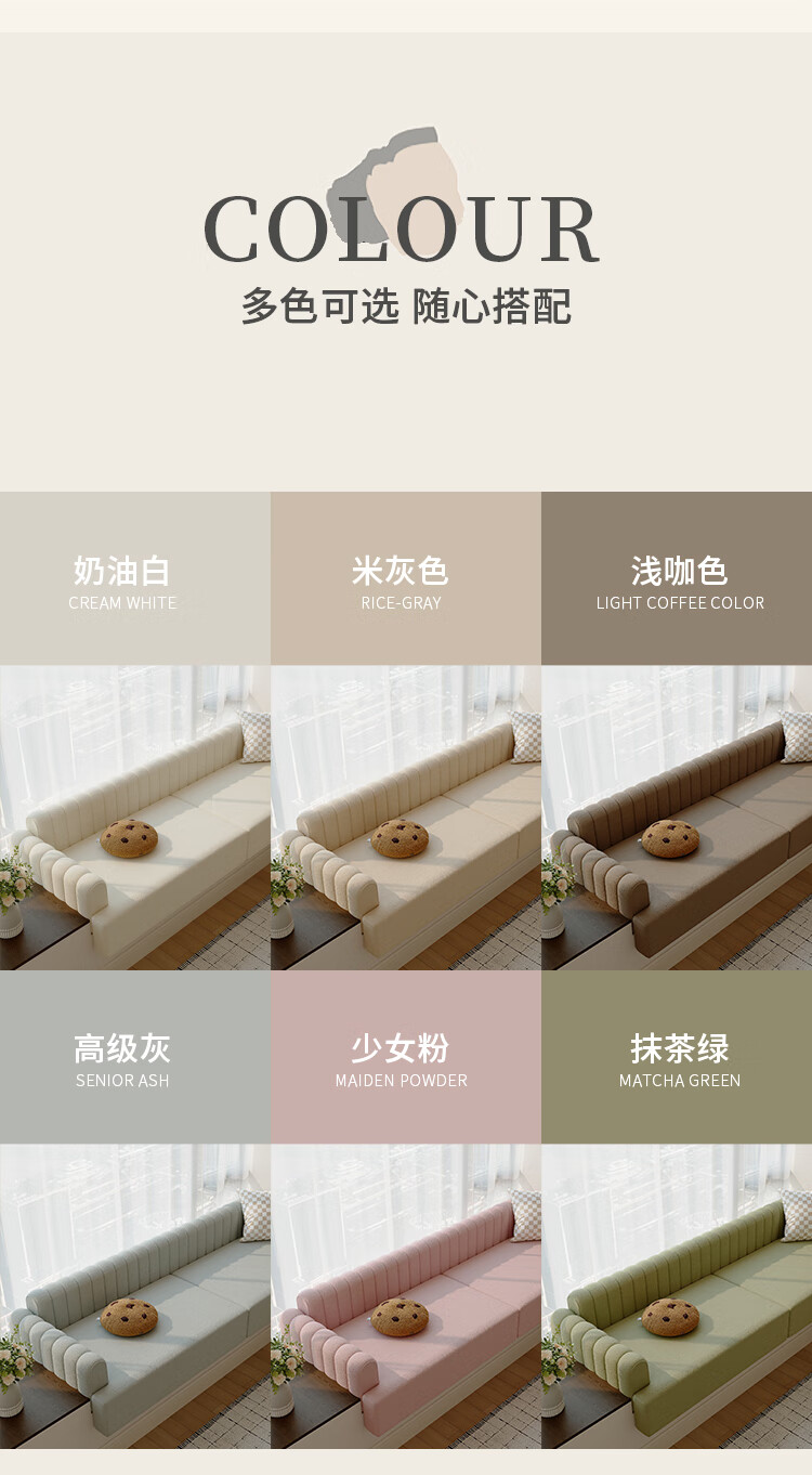 Yihe Cotton Solid Wood Frame Bay Window Sofa Customized Bay Window Cushion Window Sill Cushion Teddy Velvet Leather Bay Window Sofa Cushion Customized Contact Customer Service for Custom Sizes and Colors No Delivery in Silent Orders