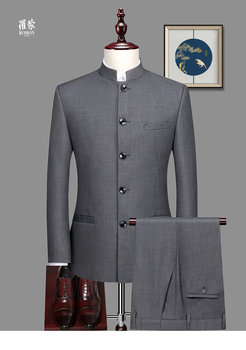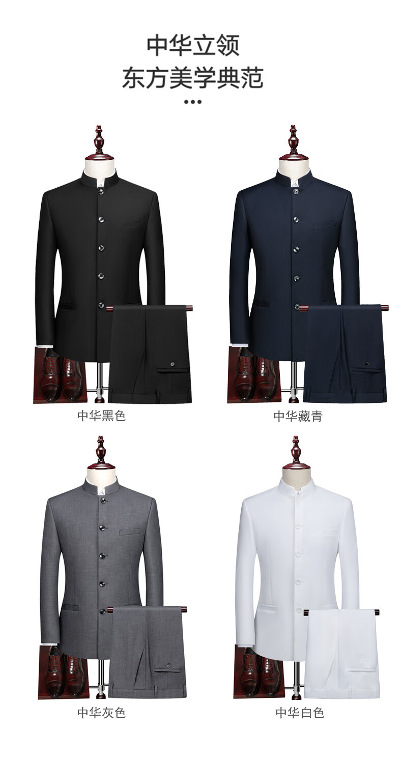 Playboy (PLAYBOY) high-end tunic suit men's formal Chinese stand collar suit men's Chinese wedding dress Chinese style suit Chinese stand collar white single top L 175 weight 125-135 Jin Jin equals 0.5 kg