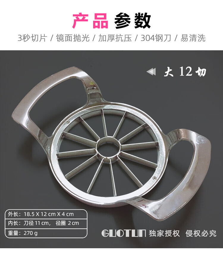 Raft core cutting apple splitter extra large divine slice fruit splitting multifunctional stainless steel core and splitting knife large powder cutter (11cm knife diameter) high hard plastic recommended