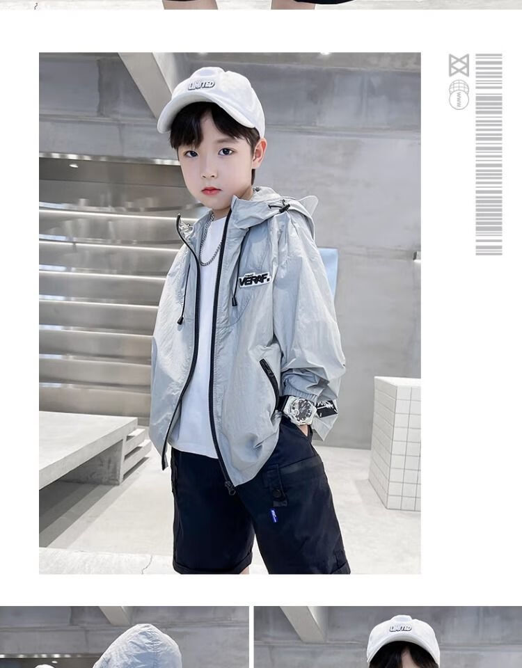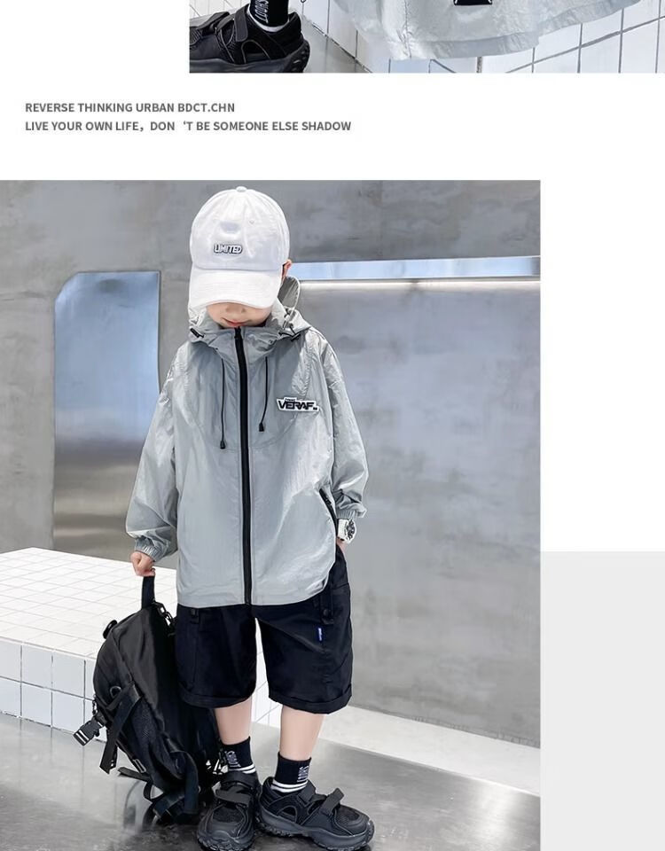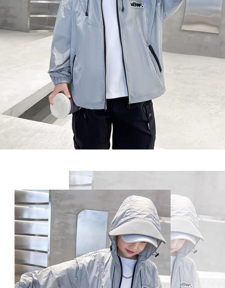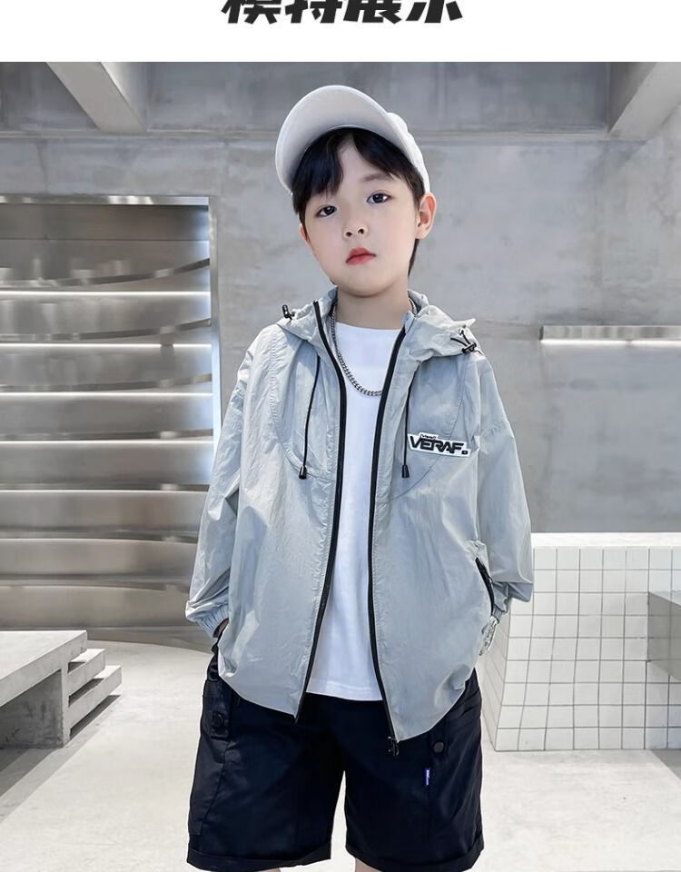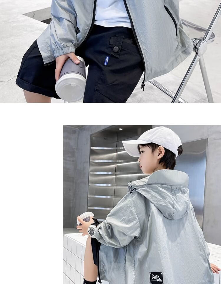 Disney Boys Summer Sun Protection Clothing 2025 New Medium and Large Children's Summer Sun Protection Clothing Jacket Breathable Thin Top Trendy Gray 170