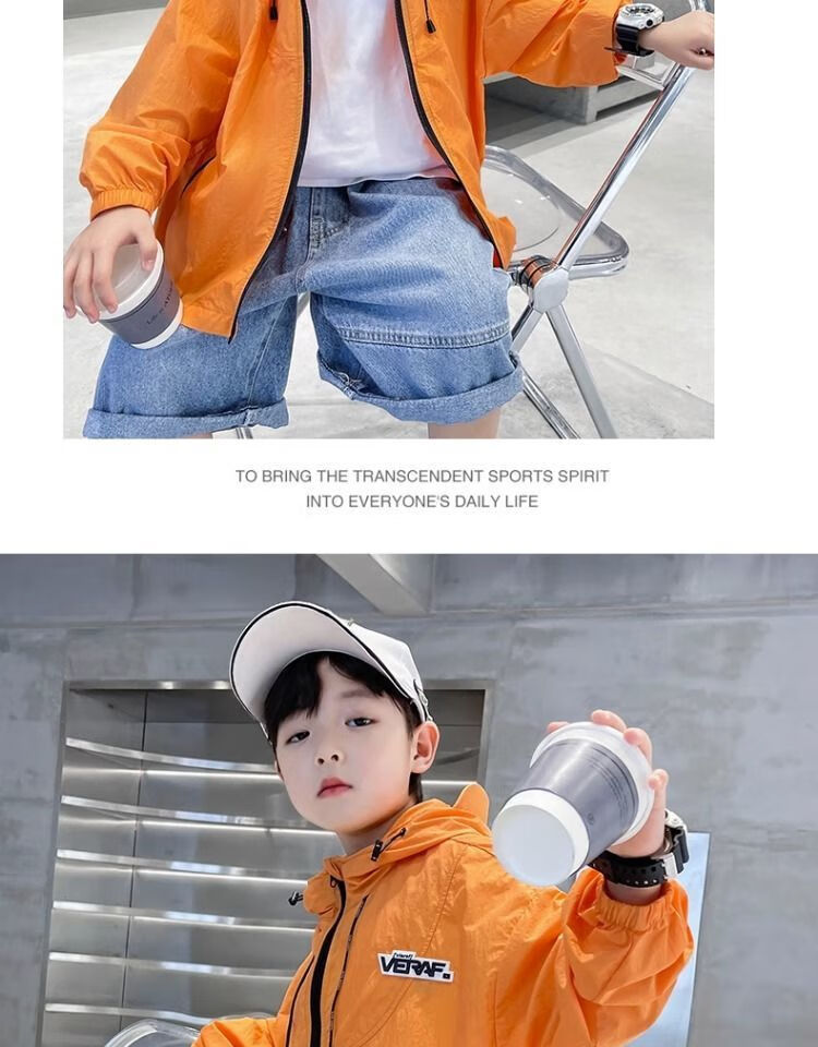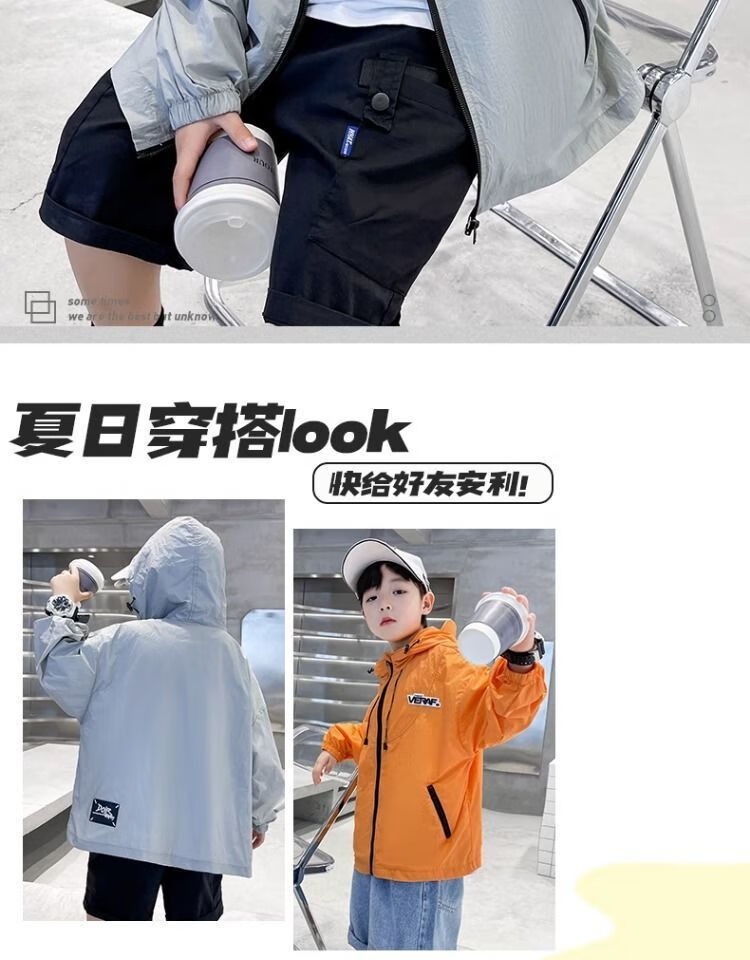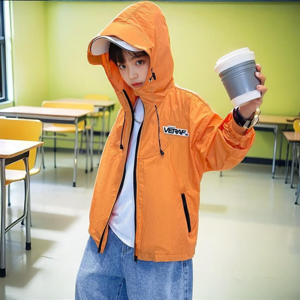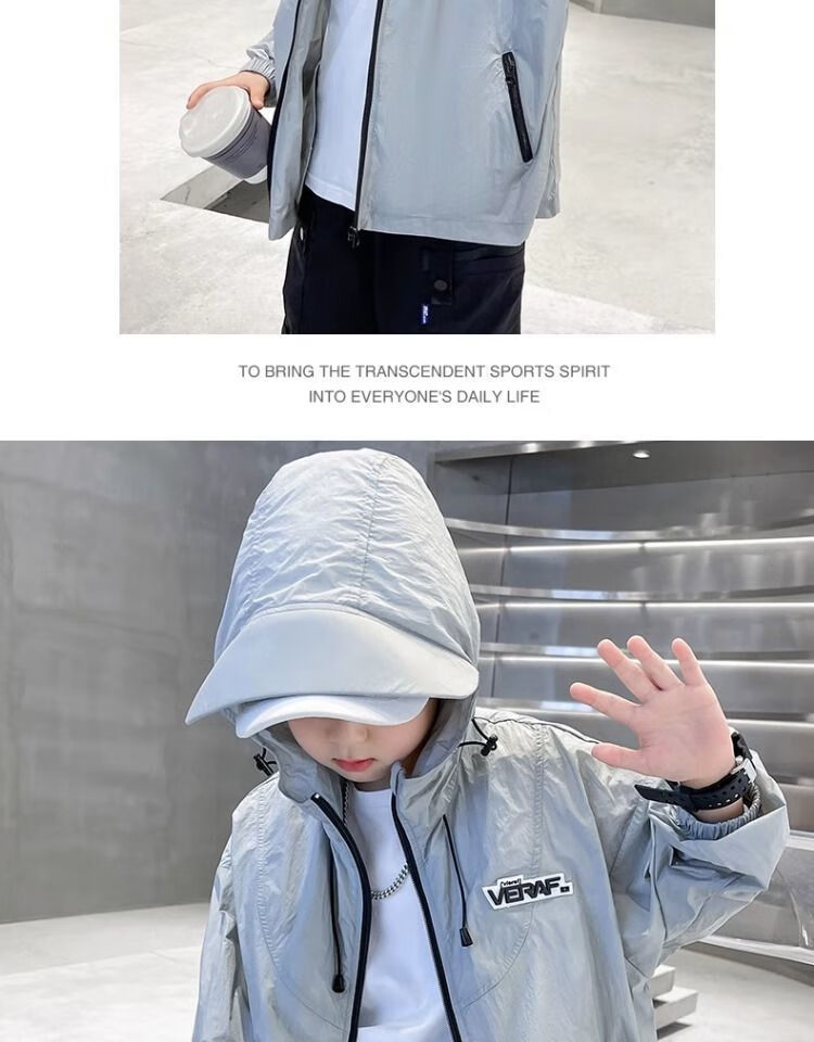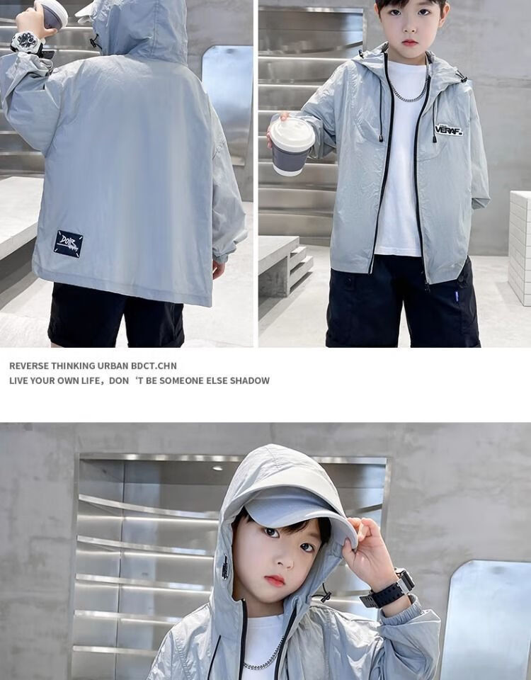 Disney Boys Summer Sun Protection Clothing 2025 New Medium and Large Children's Summer Sun Protection Clothing Jacket Breathable Thin Top Trendy Gray 170