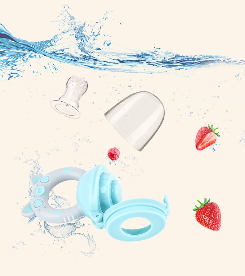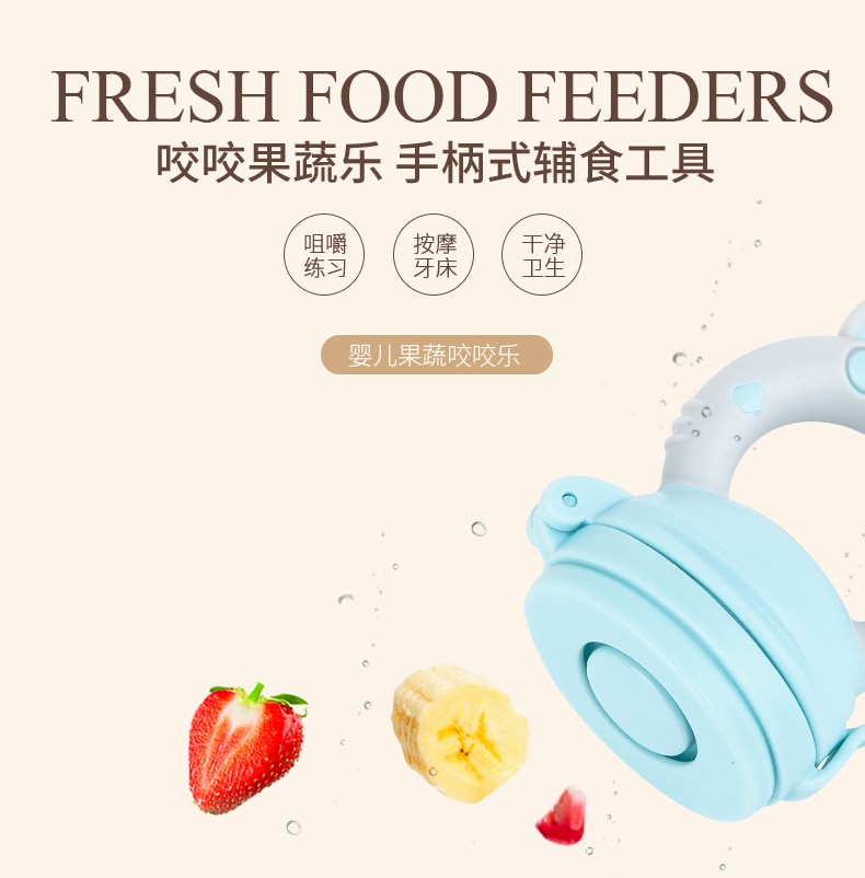 Yoshida Hisamori with 3 mouthpieces, baby teether, fruit and vegetable chew, fruit-eating, teething, baby food supplement, baby teether stick, L bear chew, plus pink double-headed mud scraper, 1 pack