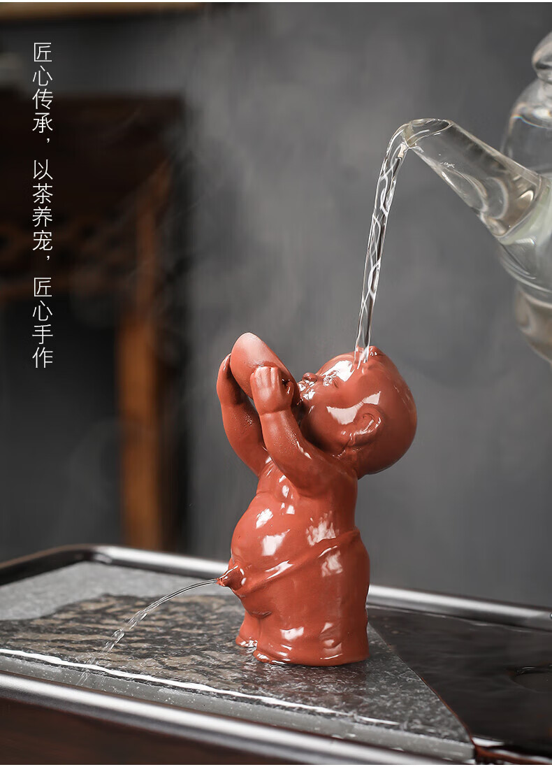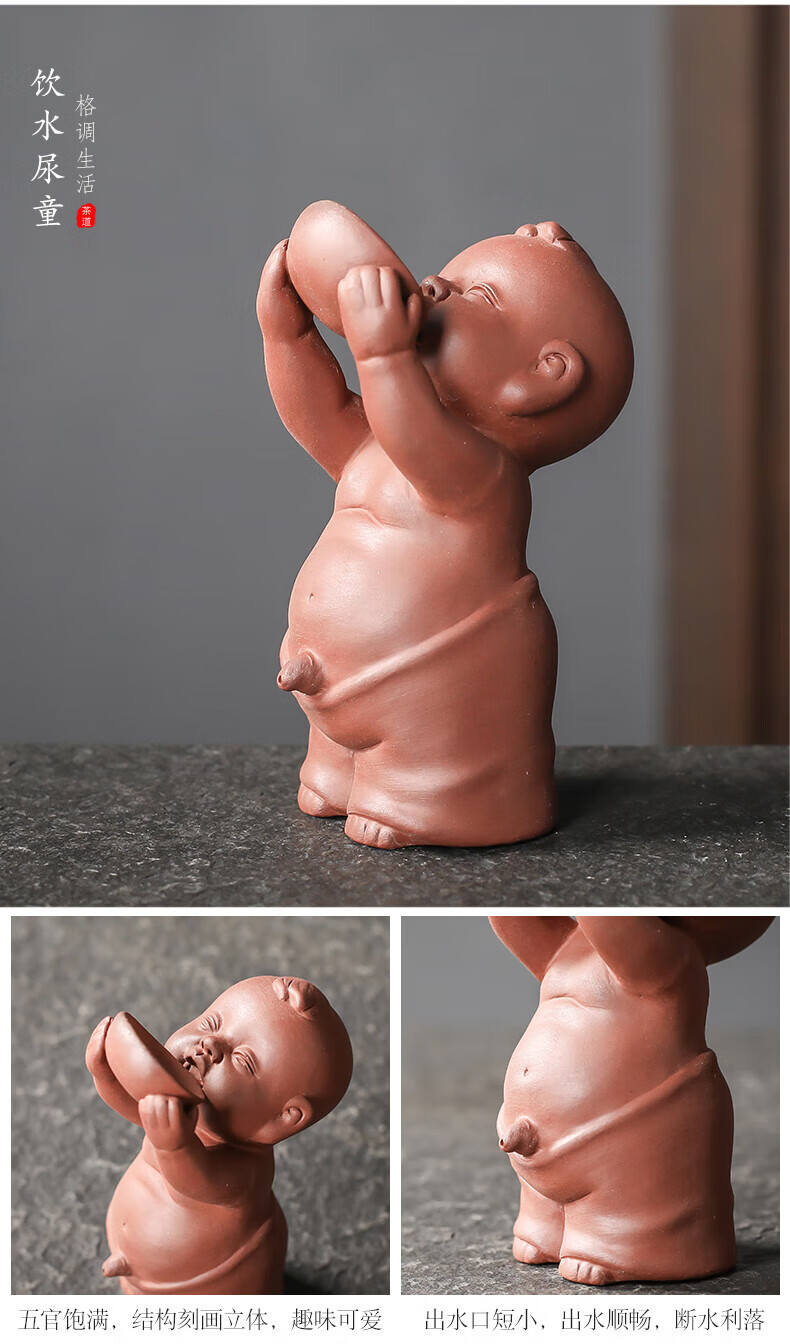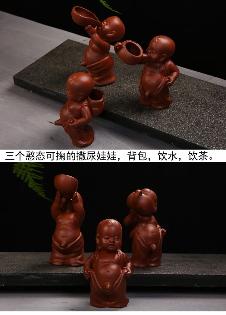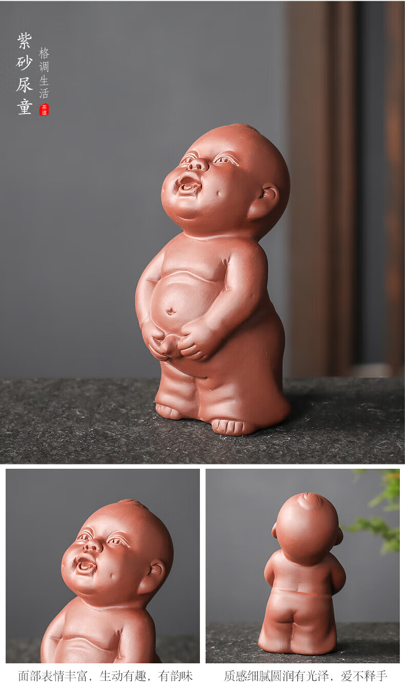 Ensa purple clay tea urinating boy tea tray accessories ornaments handmade can raise squirting children tea children fun small peeing boy looking up to the sky