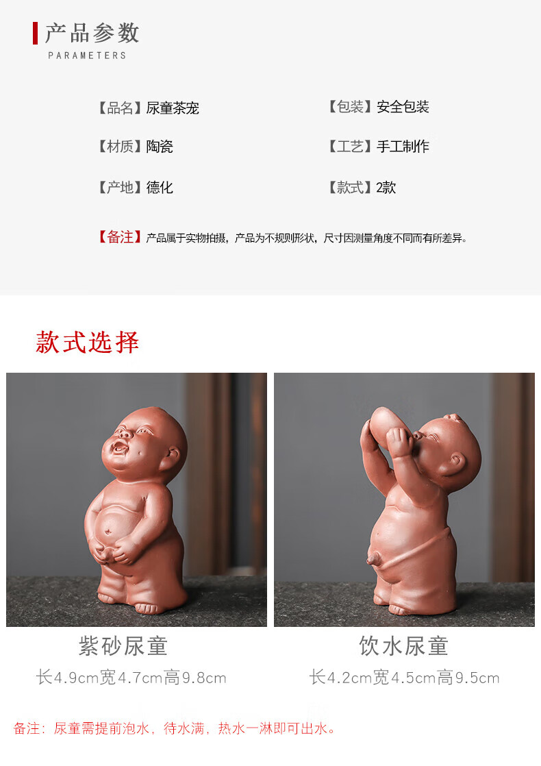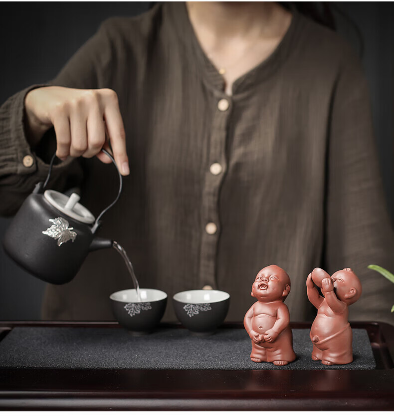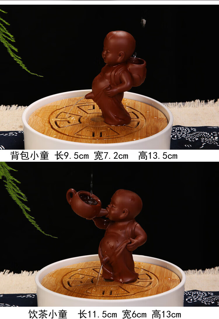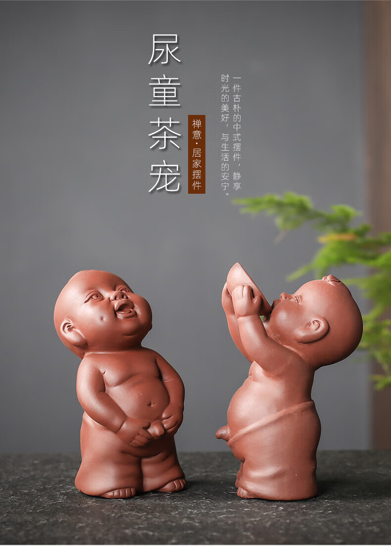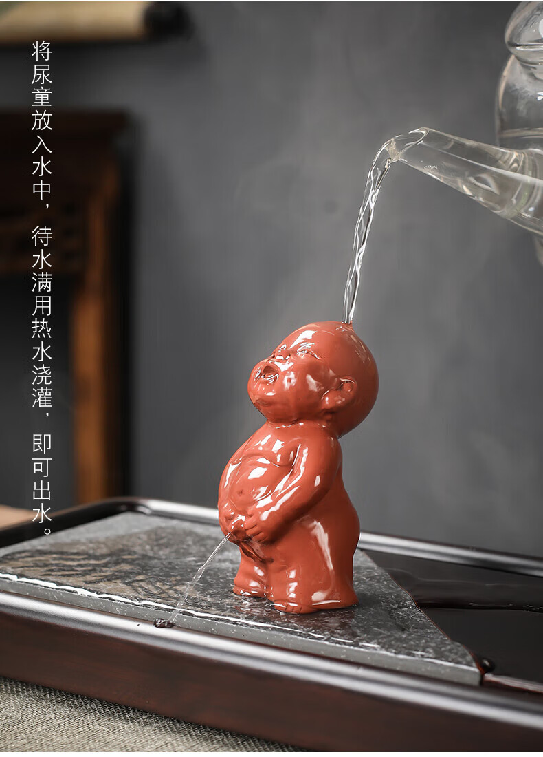 Ensa purple clay tea urinating boy tea tray accessories ornaments handmade can raise squirting children tea children fun small peeing boy looking up to the sky
