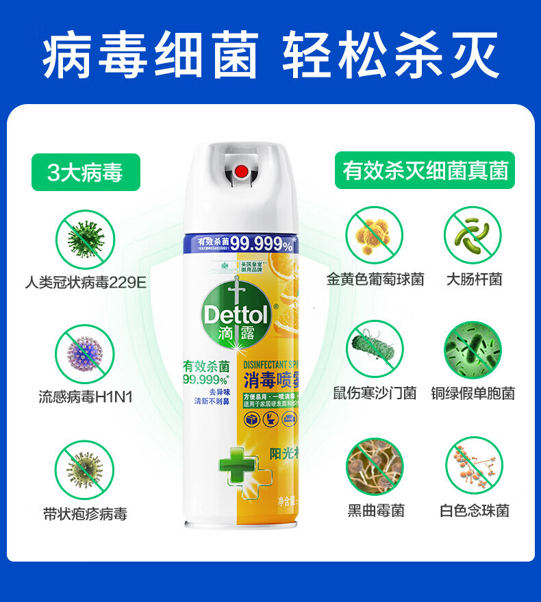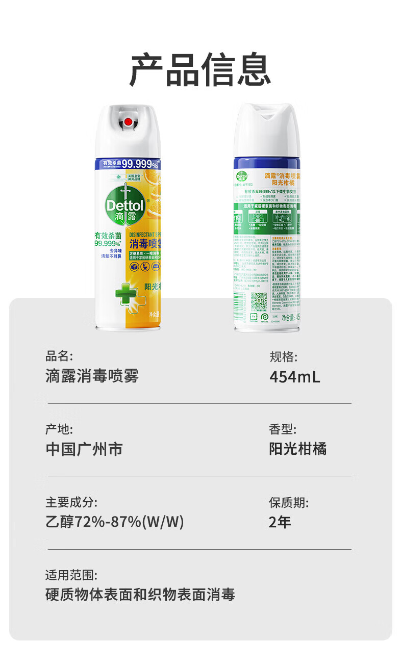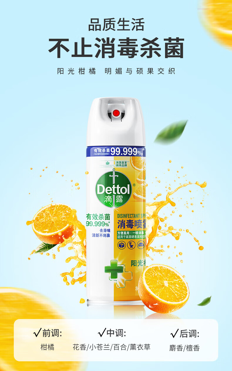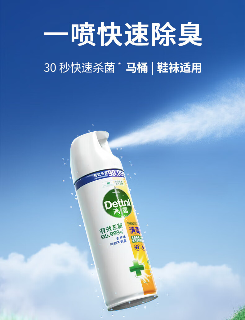 Dettol Deodorizing Disinfectant Spray 454ml Toilet Clothing Disinfection Toilet Shoes Deodorizing Sterilizing Air Freshener Sunshine Citrus 454ml + Fresh Lily of the Valley 454ml No Specifications