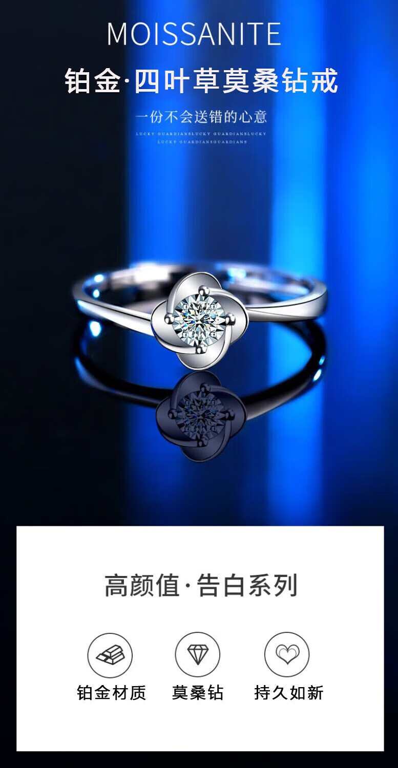 VCIXYOUPT950 platinum four-leaf clover ring women's moissanite ring fashionable and versatile commemorative birthday gift for girlfriend