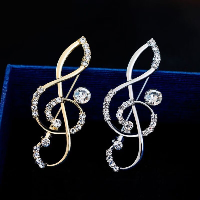 Meipai rhinestone note brooch, high-end women's exquisite niche design, luxury temperament corsage, clothes, suit pins and accessories, golden elegant temperament rhinestone note