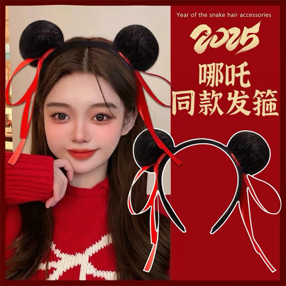 SNQP Cute Nezha Hairband Hair Ball Ball Hair Card Funny Photo Props Headwear Nezha Headband Children Nezha Hair Ball Black Hairband One Pack